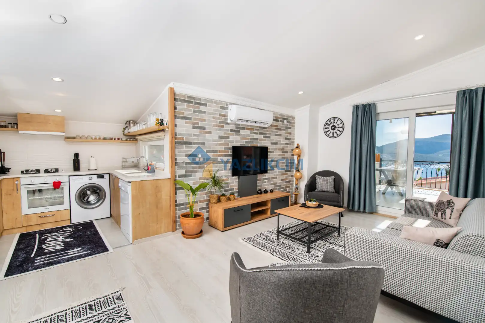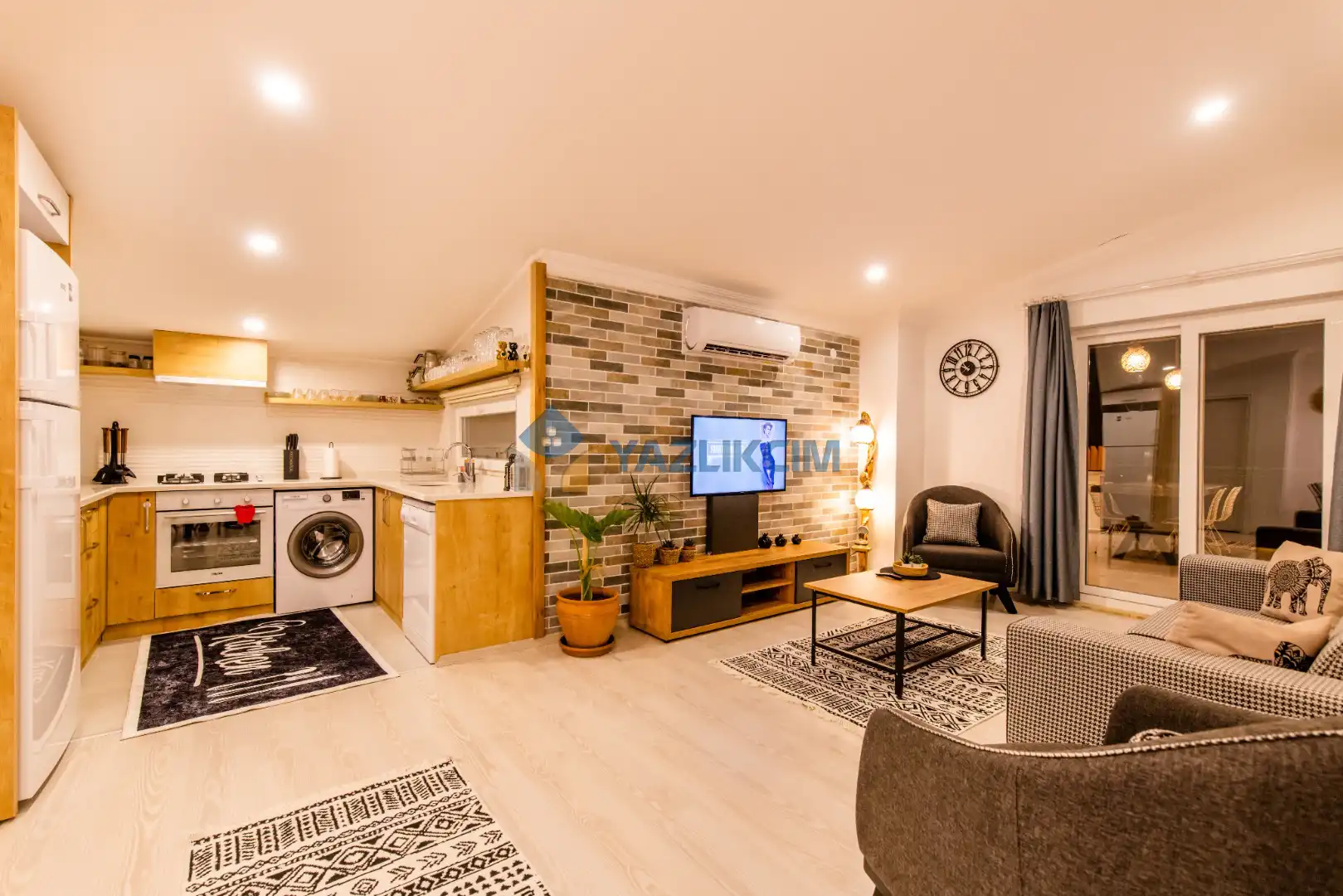 Salon Detayları : LCD TV,  klima , modern  oturma , grubu , yemek masası ve sandalyeler ,kablosuz modem bulunmaktadır.