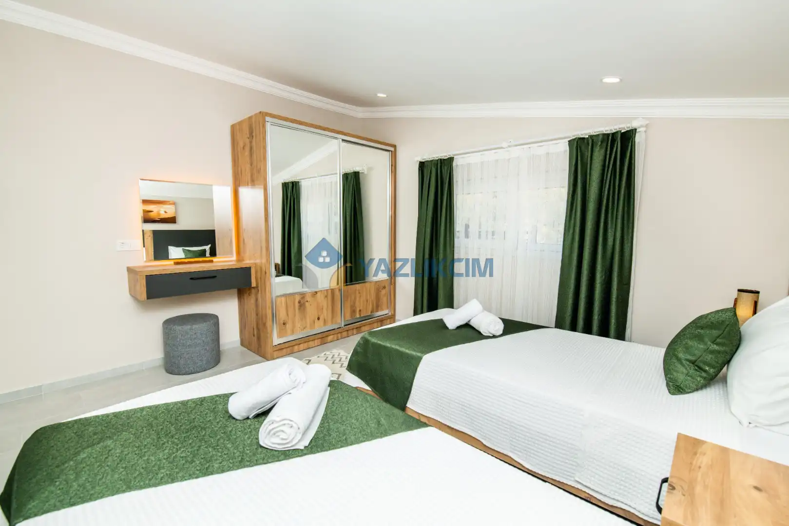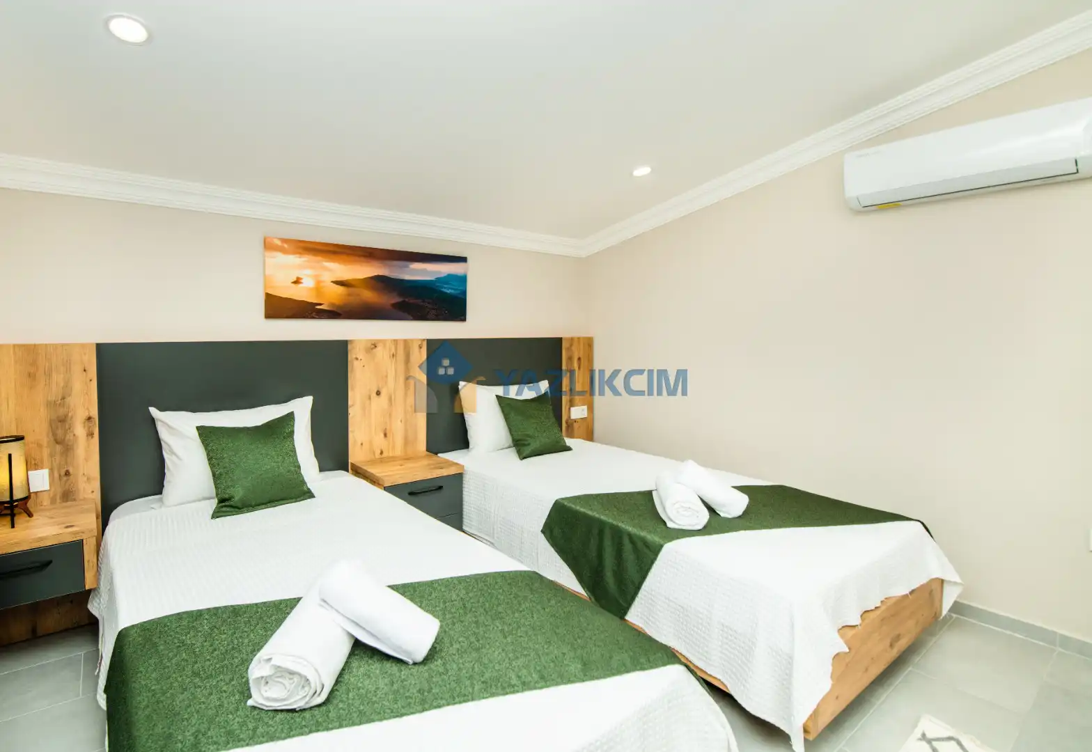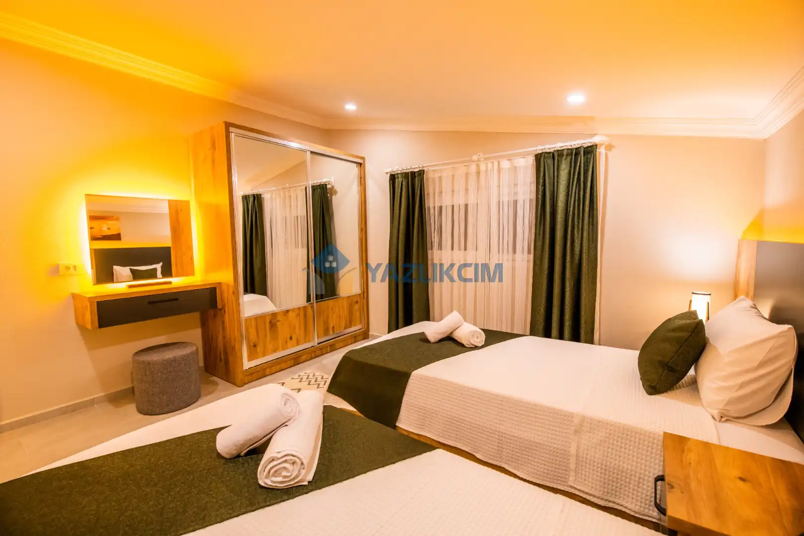 Detayları: 2 tane tek kişilik yatak , klima, komodin , elbise dolabı