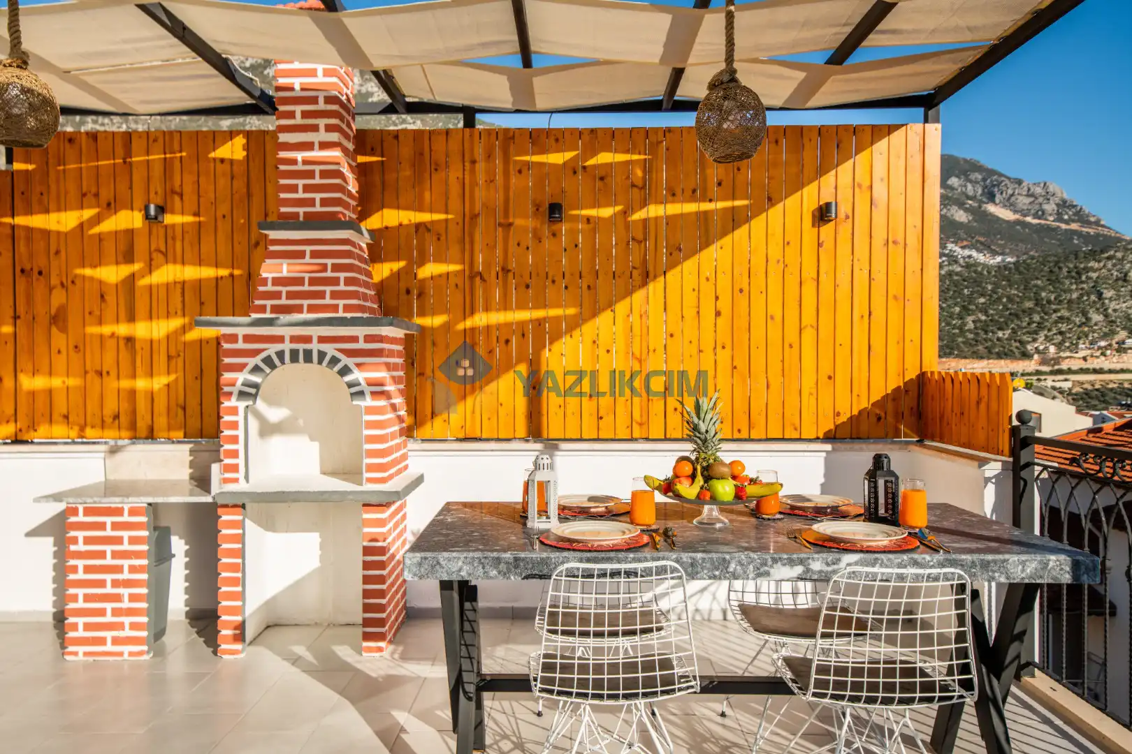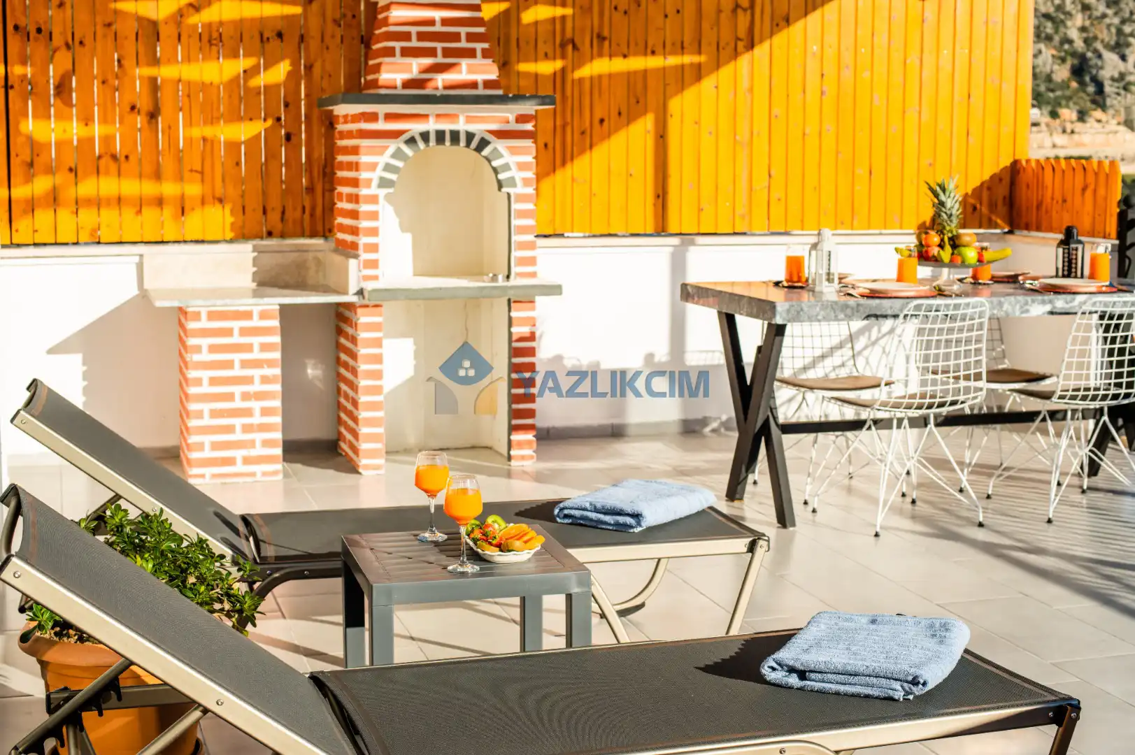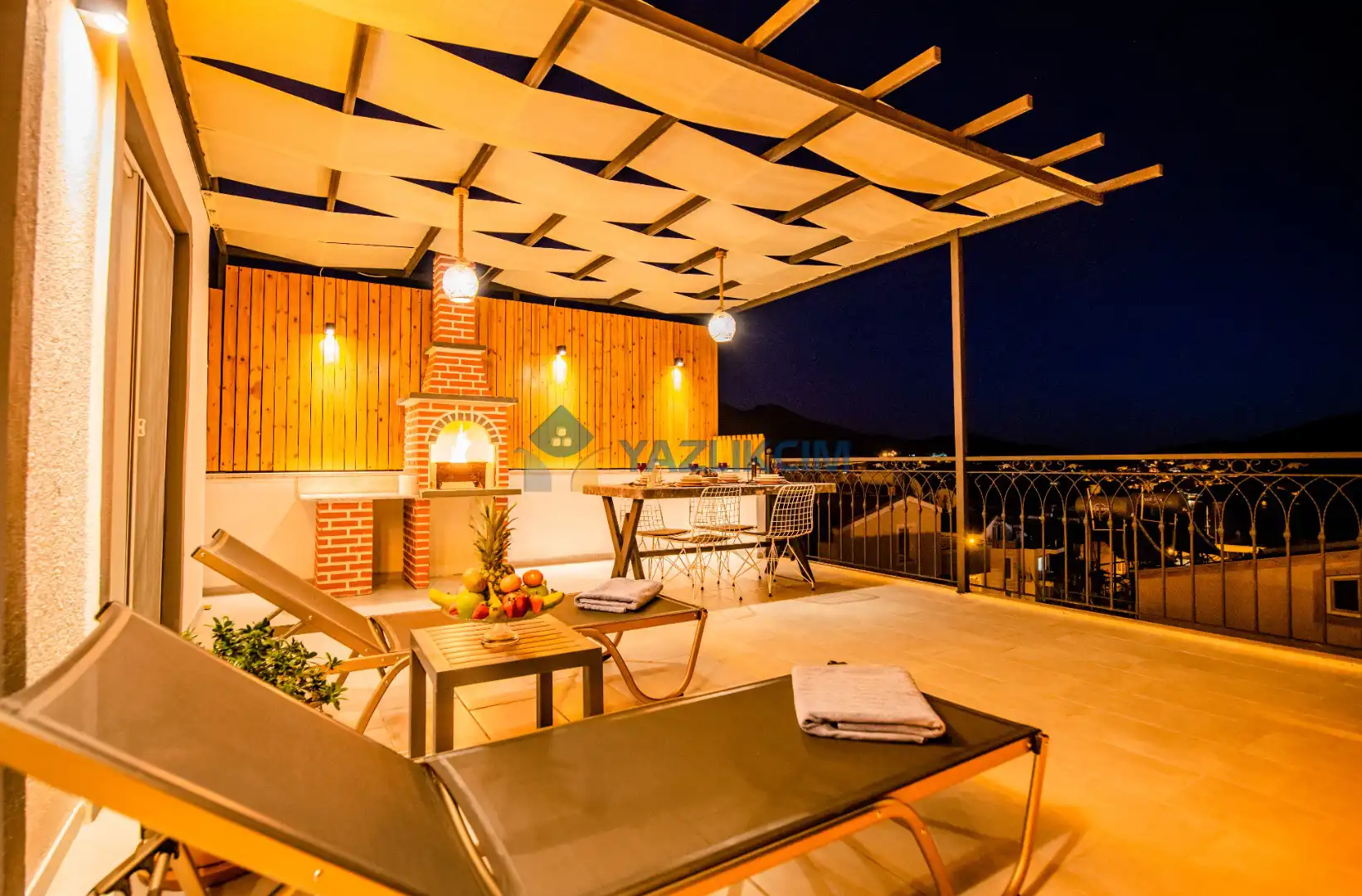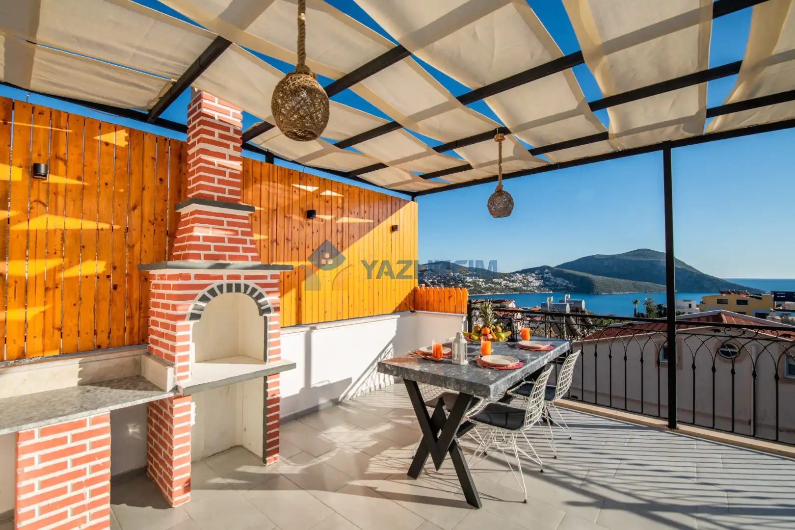 Teras Detayları : Deniz manzaralı, Şezlong , güneşlenme  şemsiyesi , Açık Hava Jakusi ,barbekü , yemek masası ve sandalyeleri       bulunmaktadır.