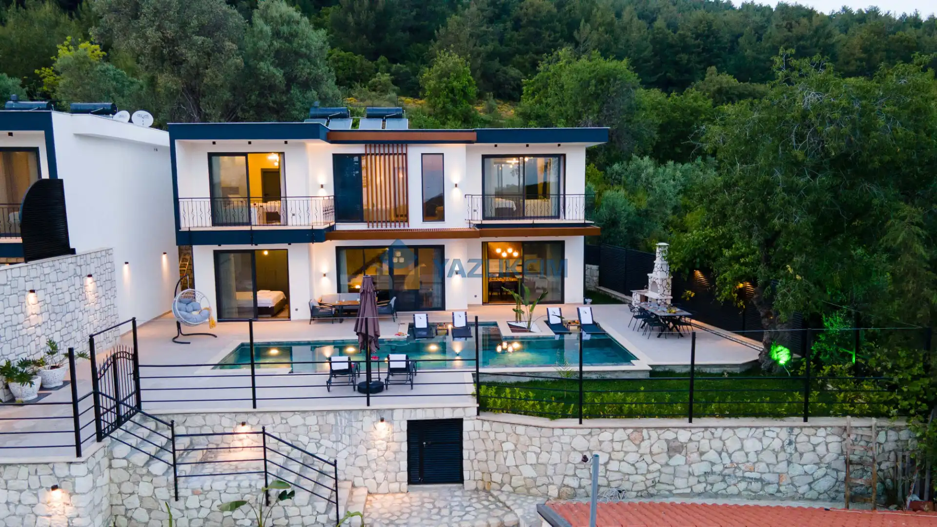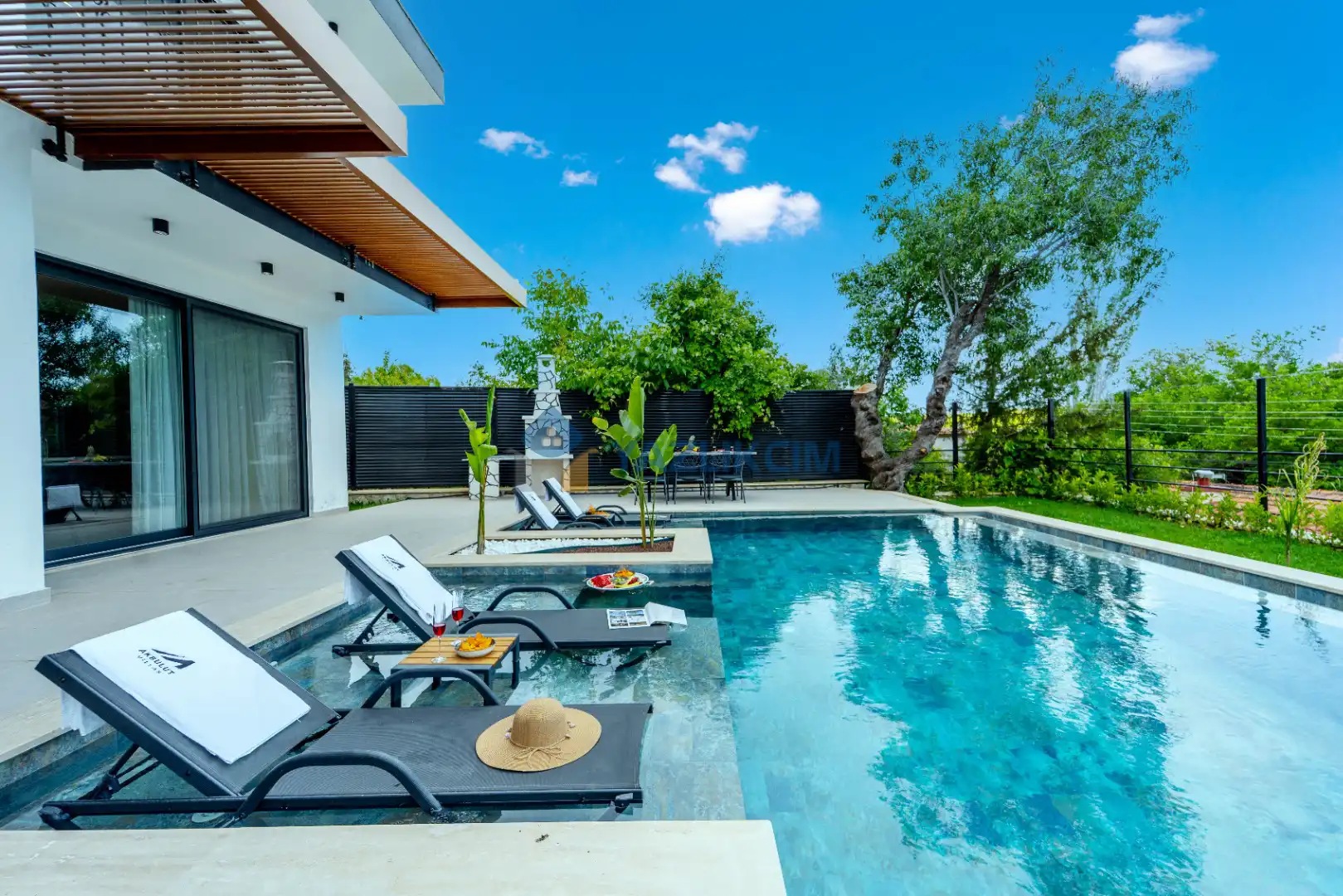 Detayları : Şezlong, güneşlenme şemsiyesi, barbekü, yemek masası ve sandalyeleri bulunmaktadır.