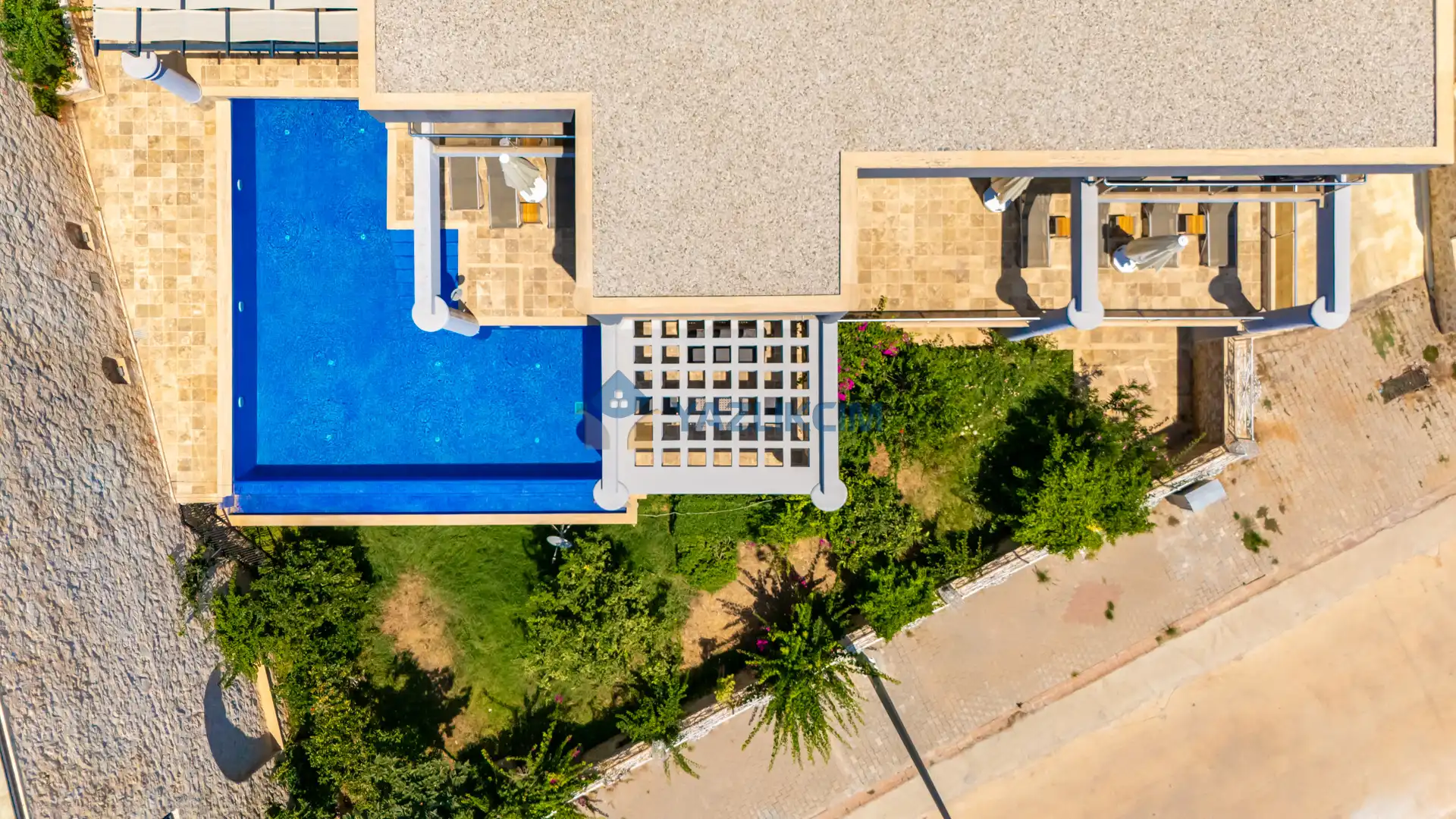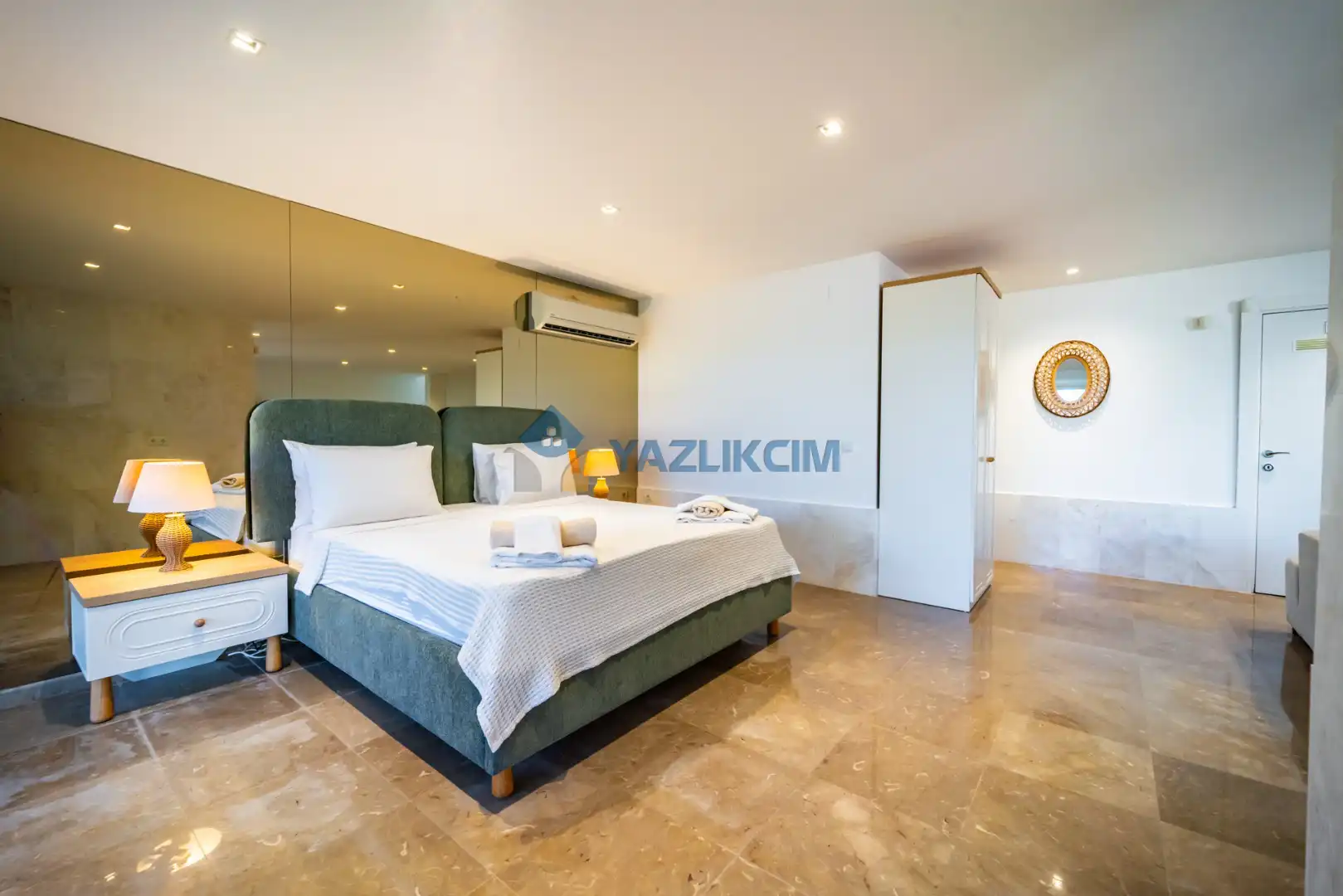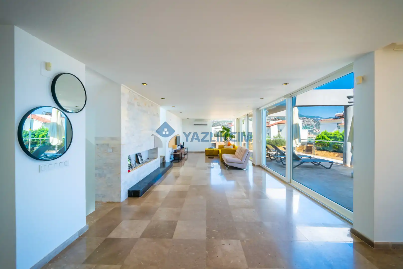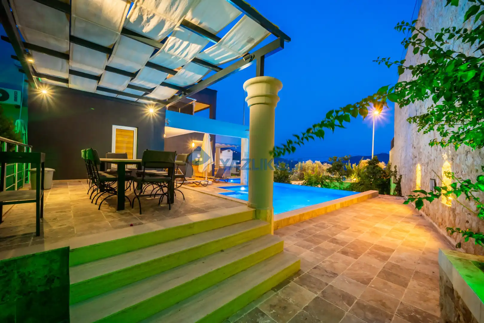 Salon Detayları: Oturma Grubu, Smart TV, Kablosuz İnternet, Klima, Yemek Masası, Havuz Terasına Çıkış Bulunmaktadır.