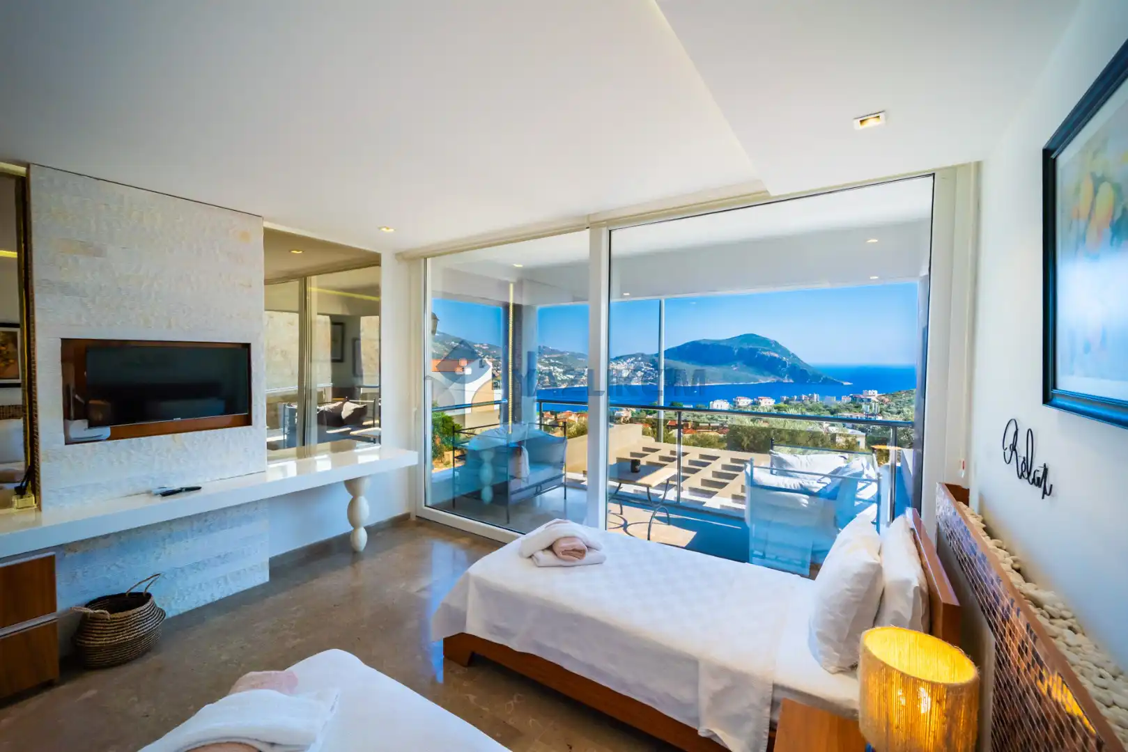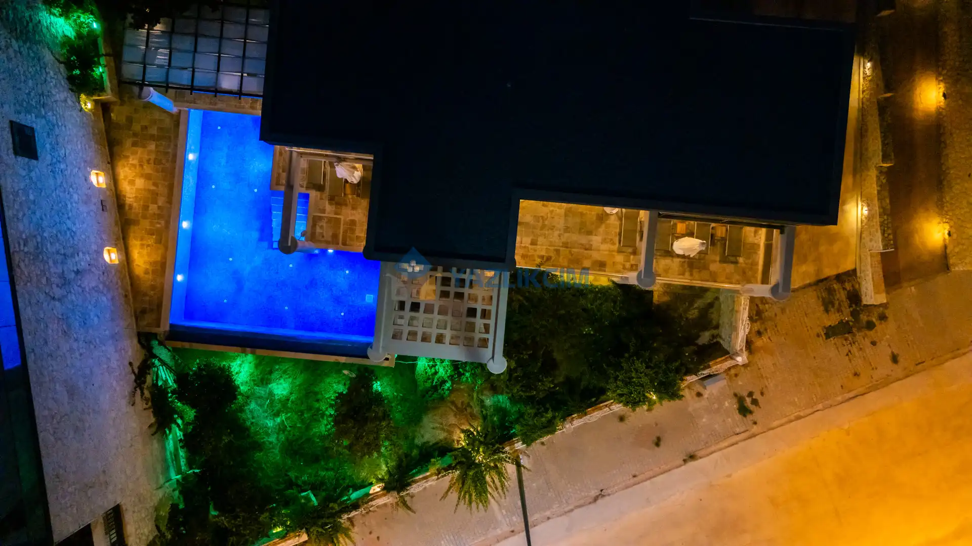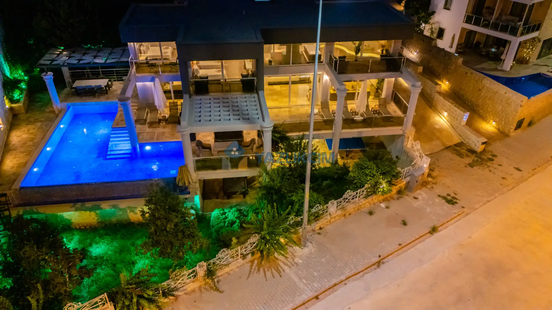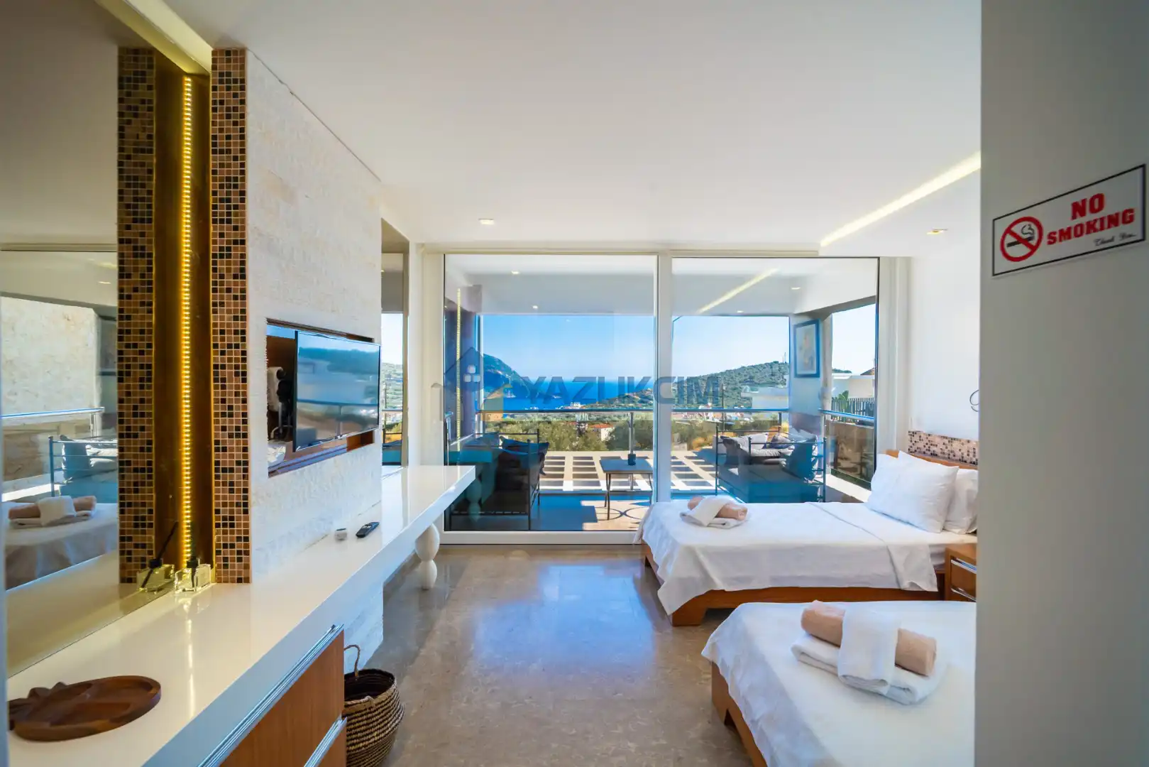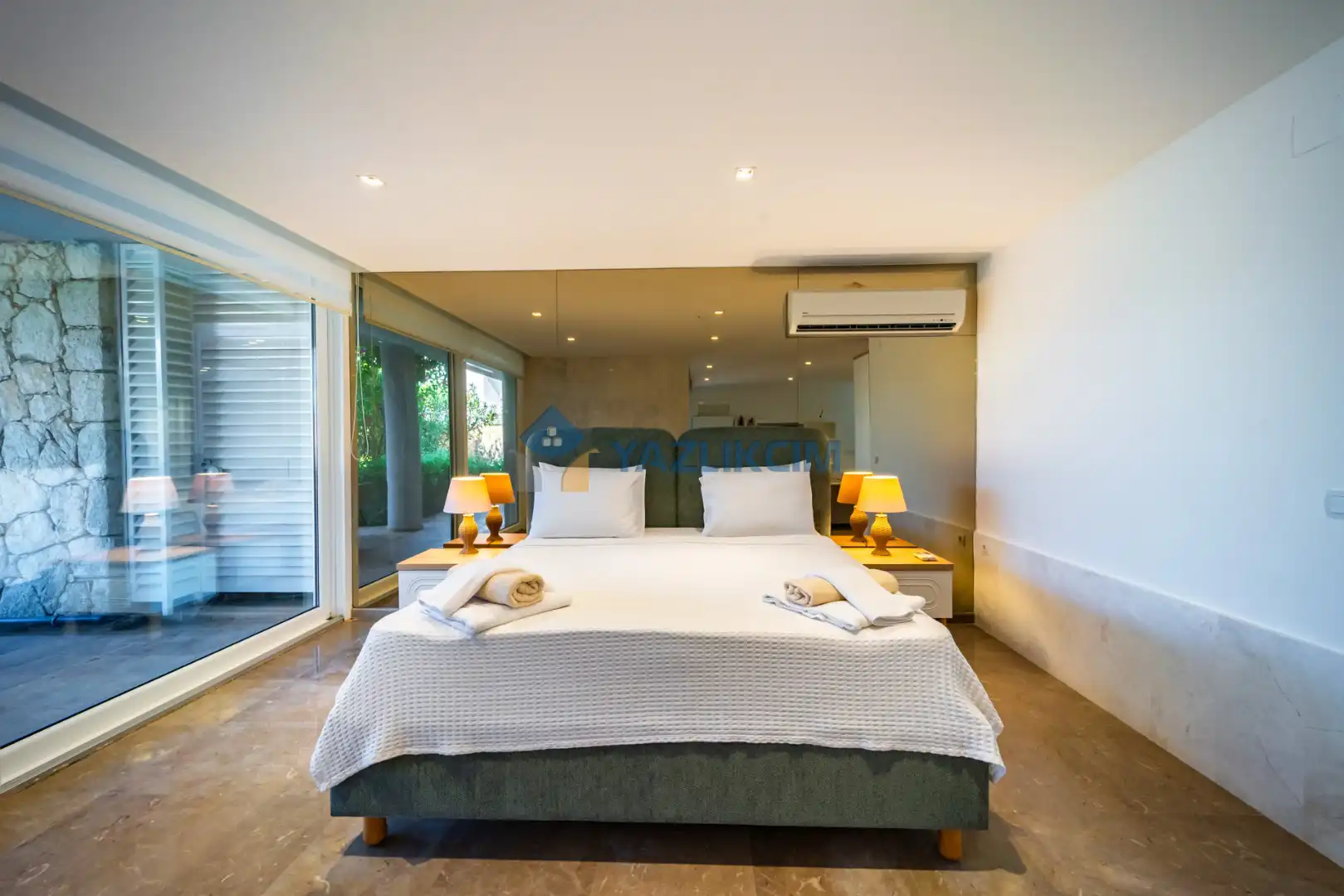 Salon Detayları: Oturma Grubu, Smart TV, Kablosuz İnternet, Klima, Yemek Masası, Havuz Terasına Çıkış Bulunmaktadır.