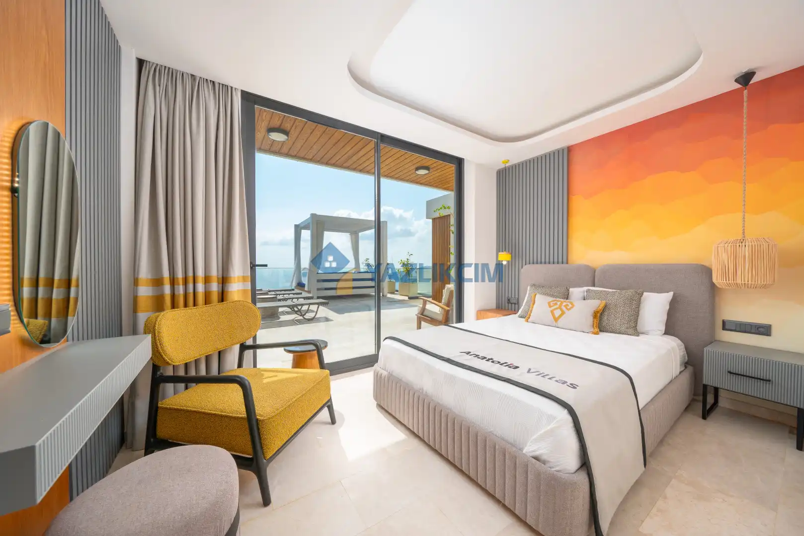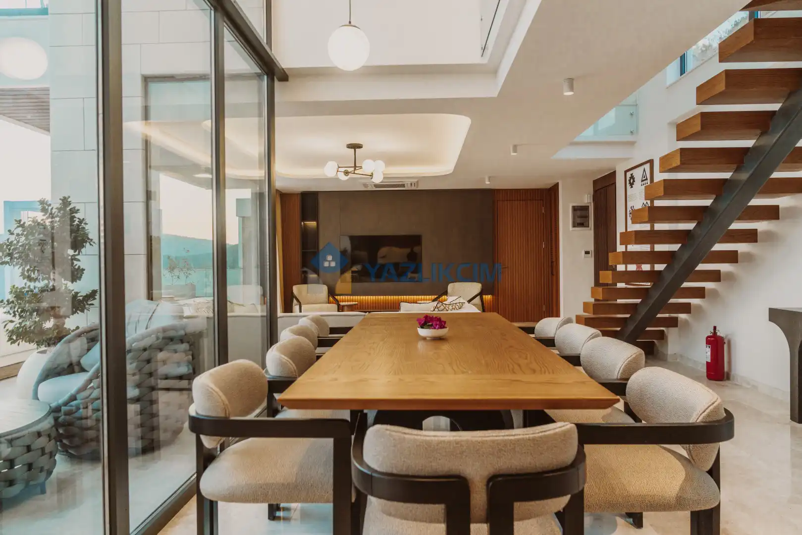Salon Detayları: Oturma Grubu, Uydu TV (LCD), Kablosuz İnternet, Klima, Yemek Masası, Havuz Terasına Çıkış