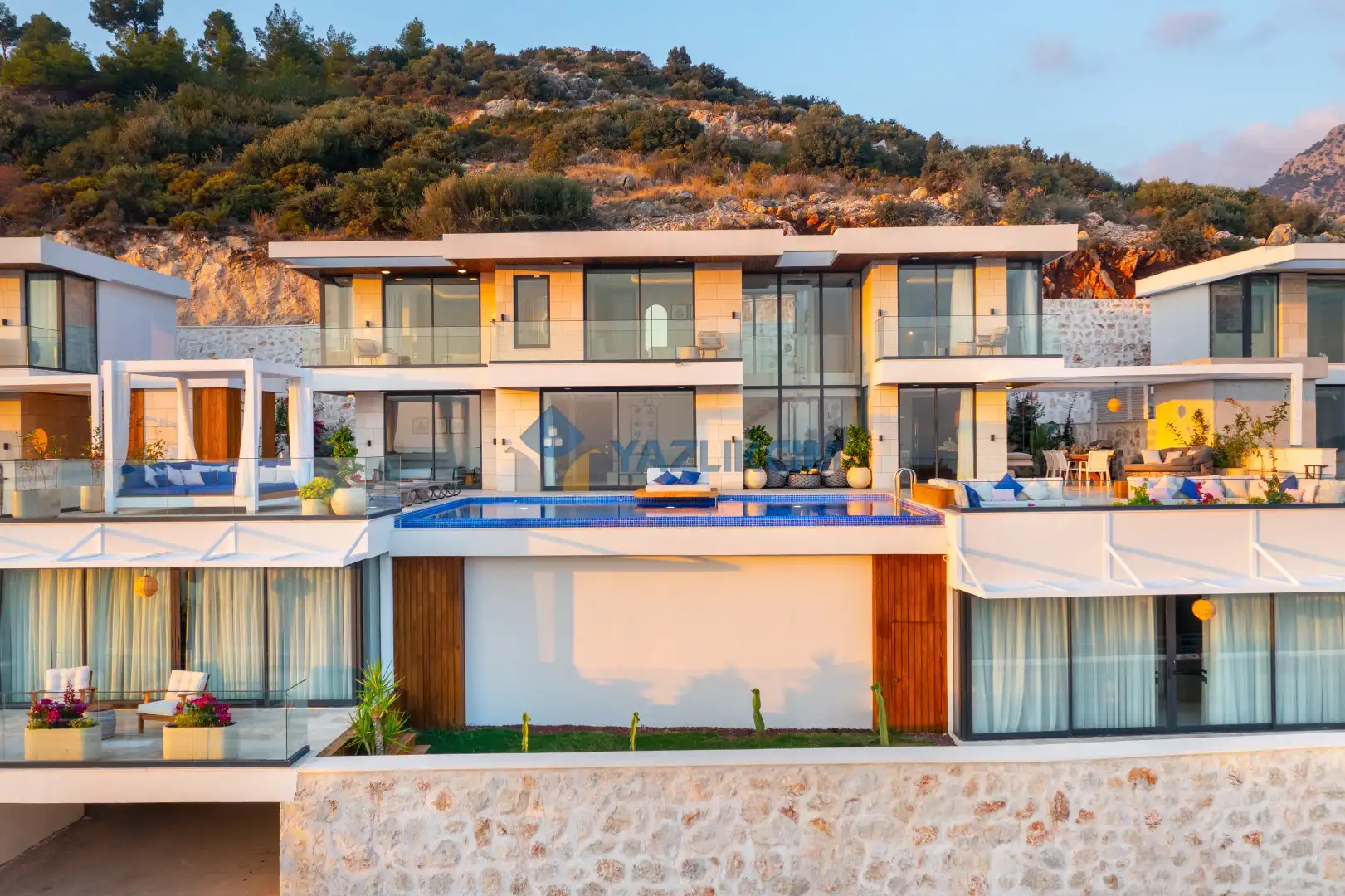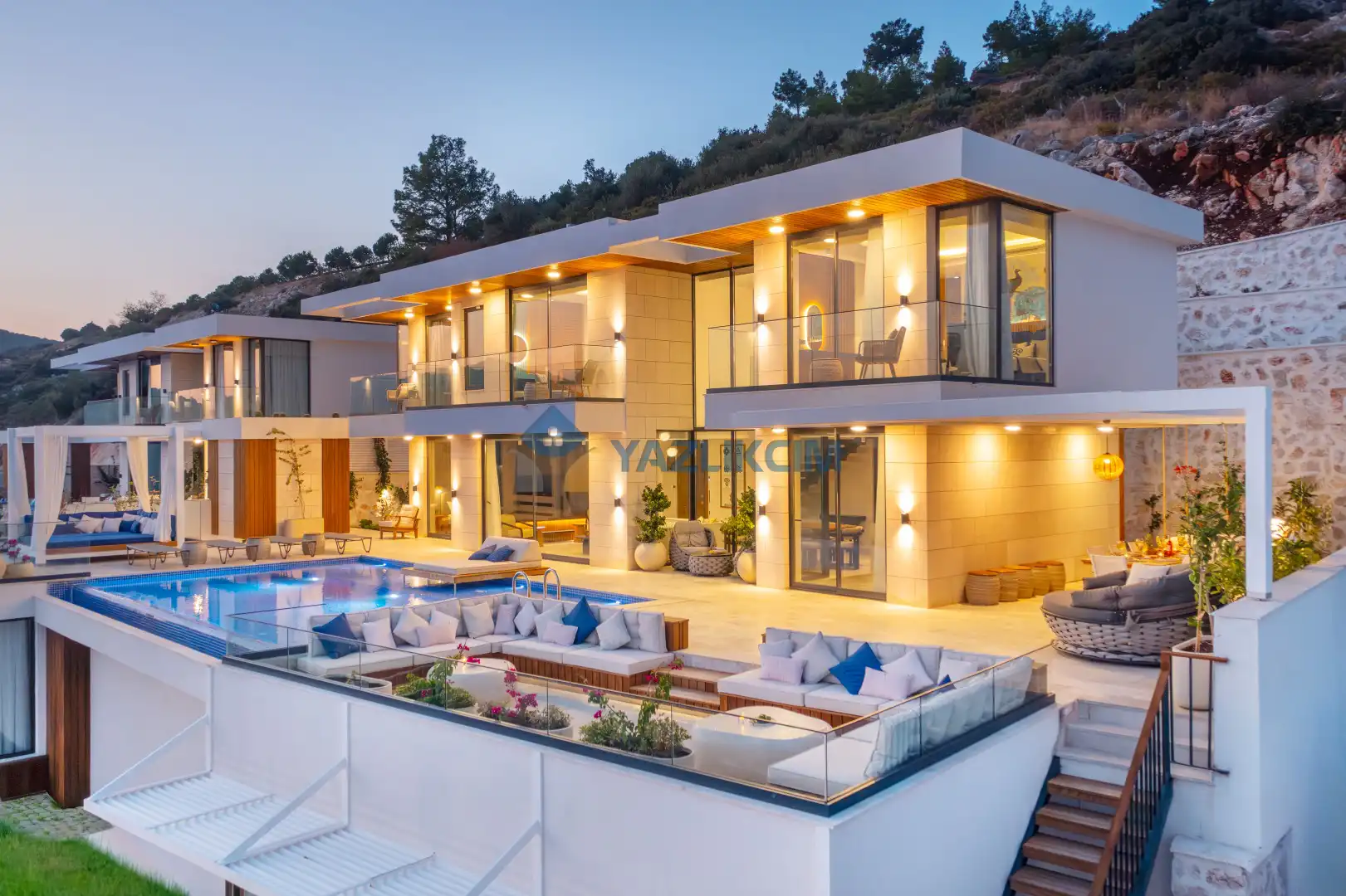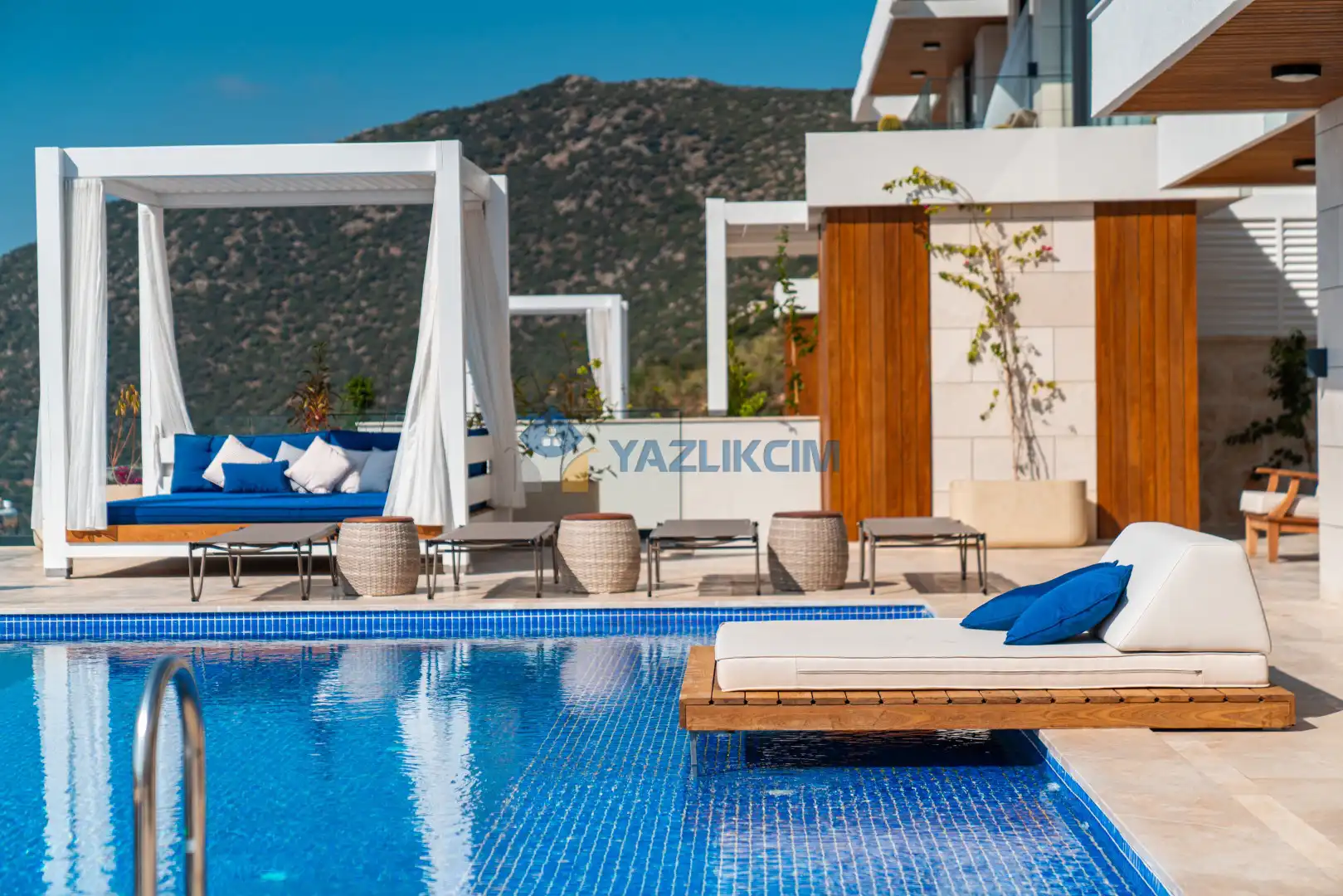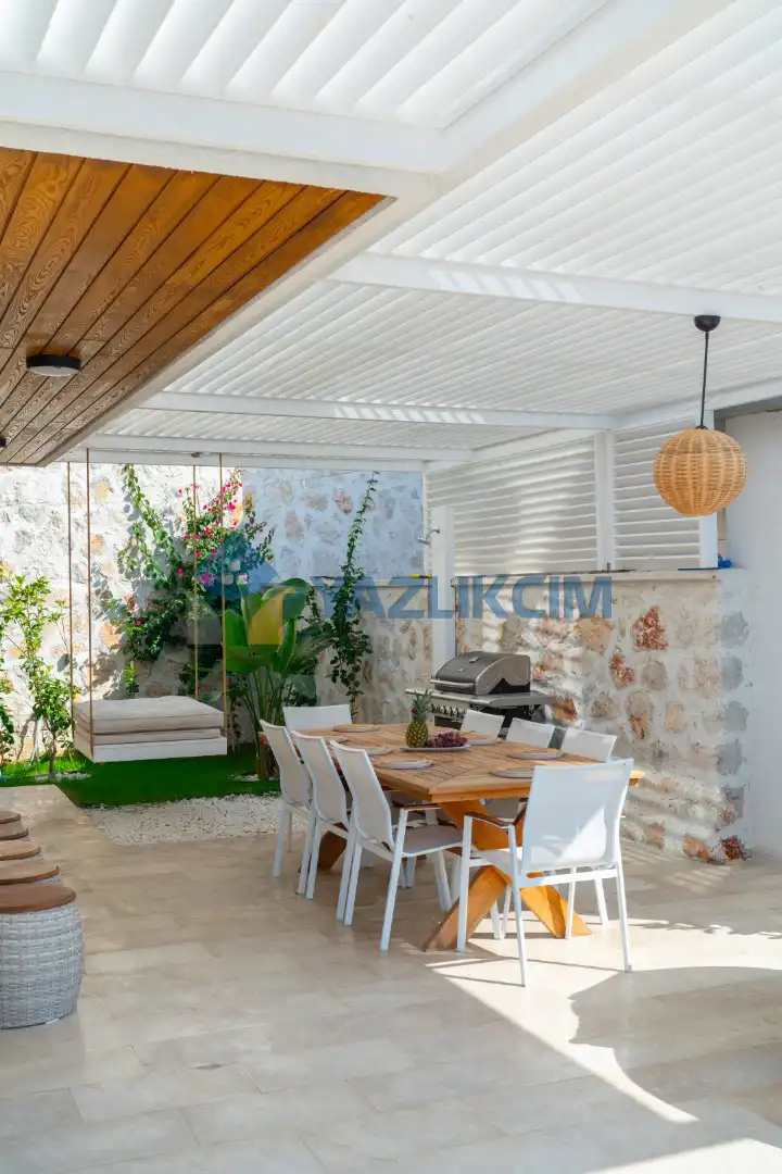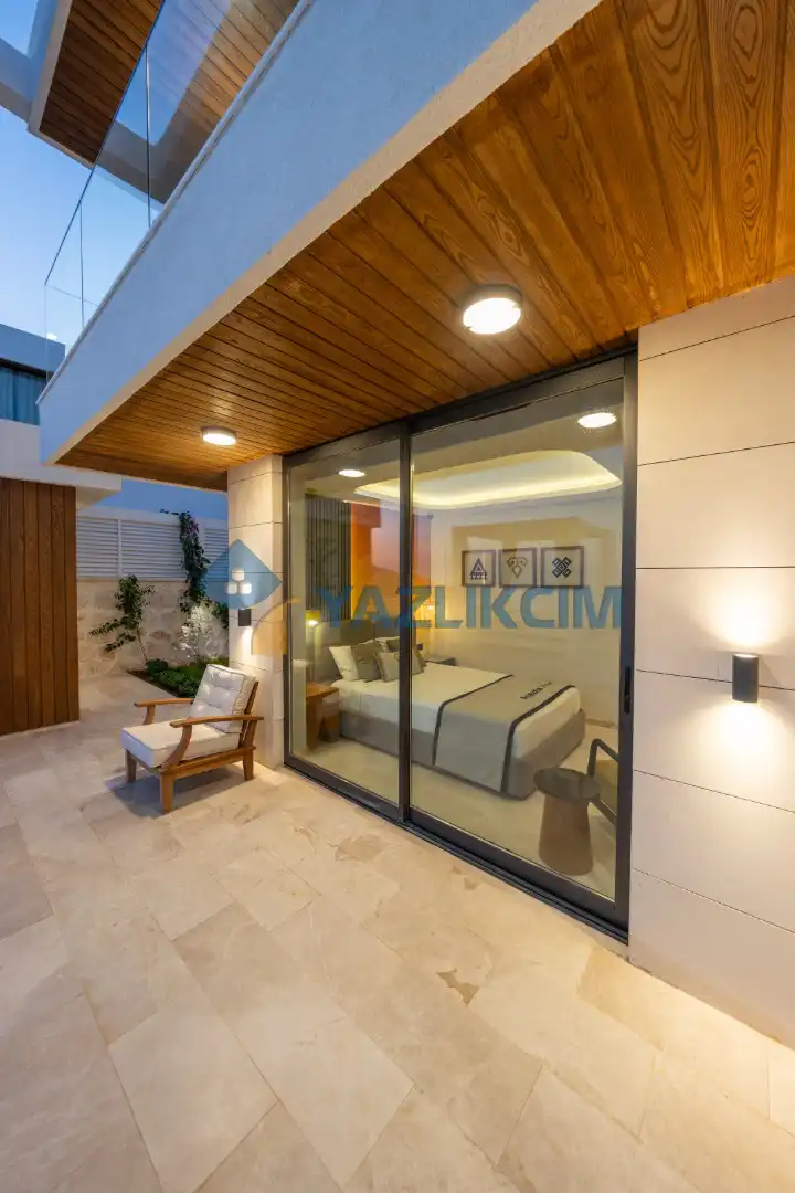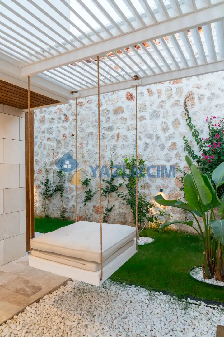 Detayları : Özel Bahçe, Özel Yüzme Havuzu, Güneşlenme Alanı, Salıncak, Oturma Alanı, Şezlong, Şemsiye, Yemek Masası, Barbekü