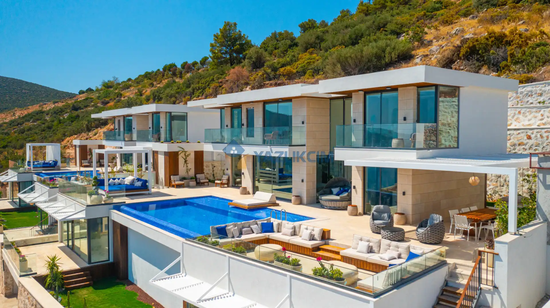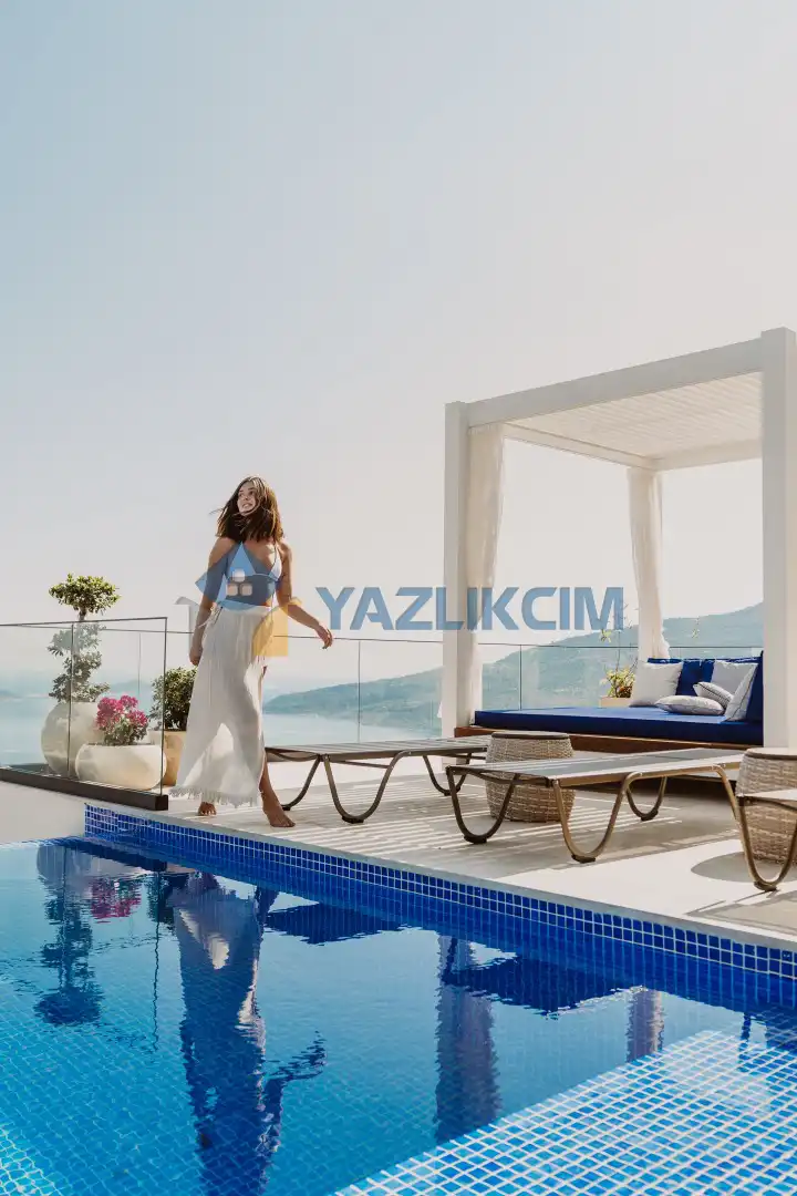 Detayları : Özel Bahçe, Özel Yüzme Havuzu, Güneşlenme Alanı, Salıncak, Oturma Alanı, Şezlong, Şemsiye, Yemek Masası, Barbekü