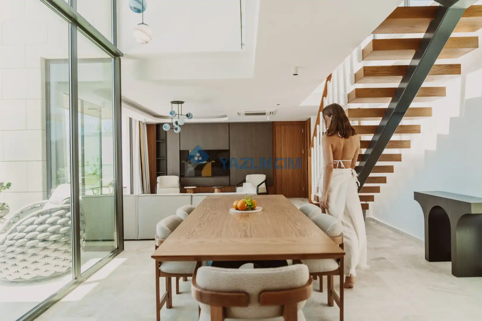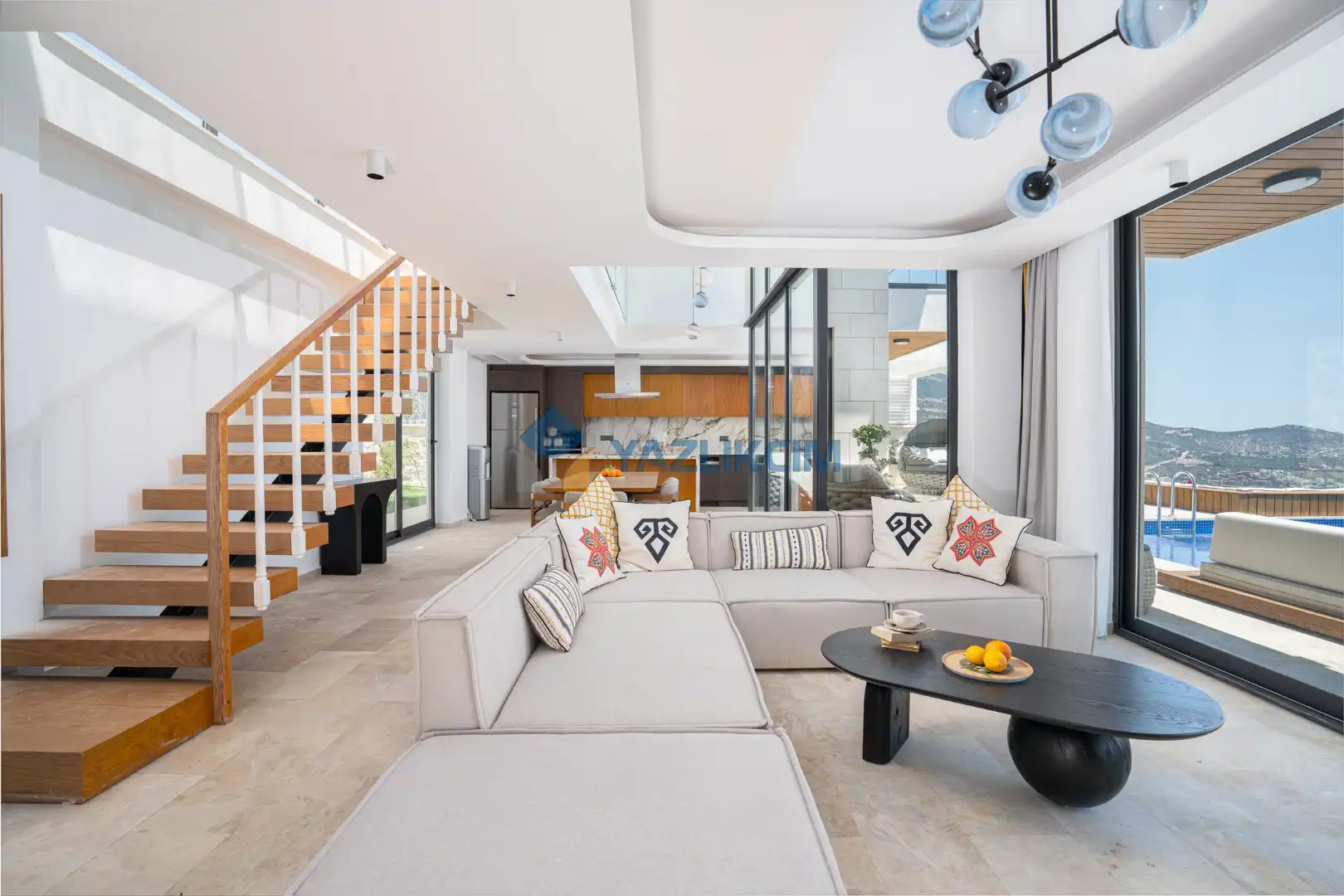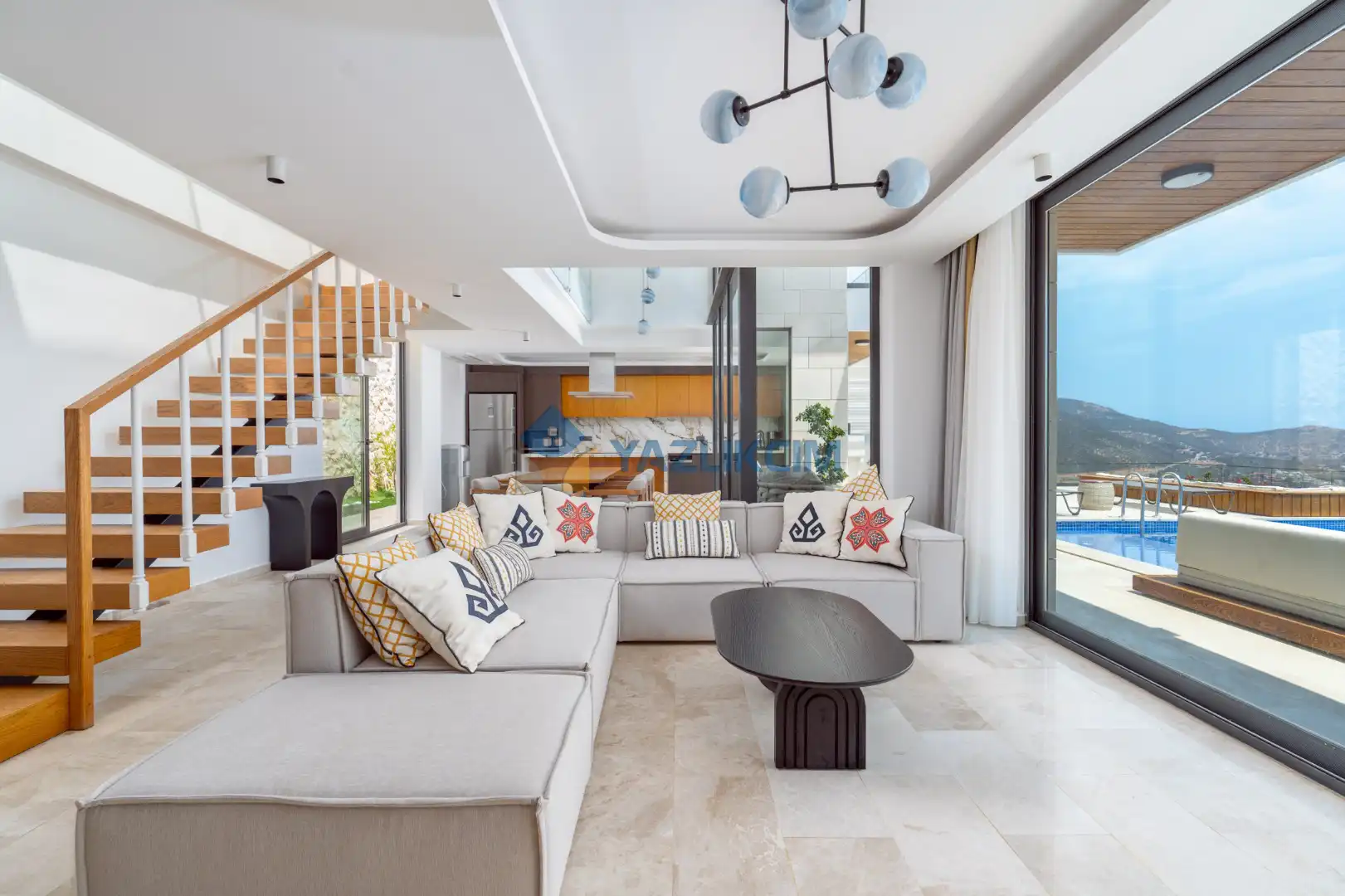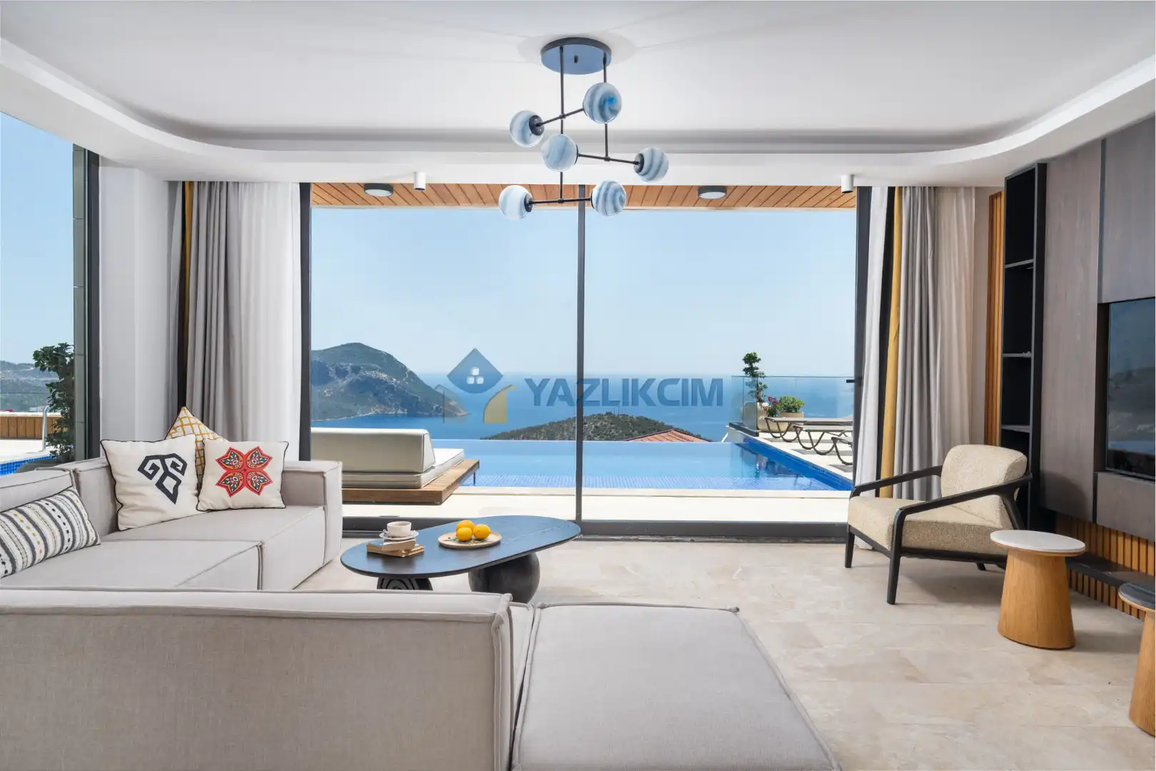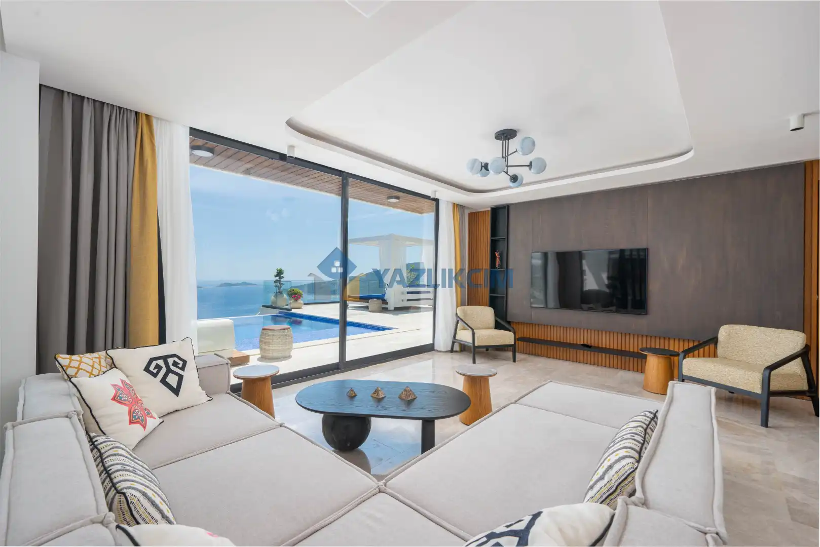 Salon Detayları: Oturma Grubu, Uydu TV (LCD), Kablosuz İnternet, Klima, Yemek Masası, Havuz Terasına Çıkış