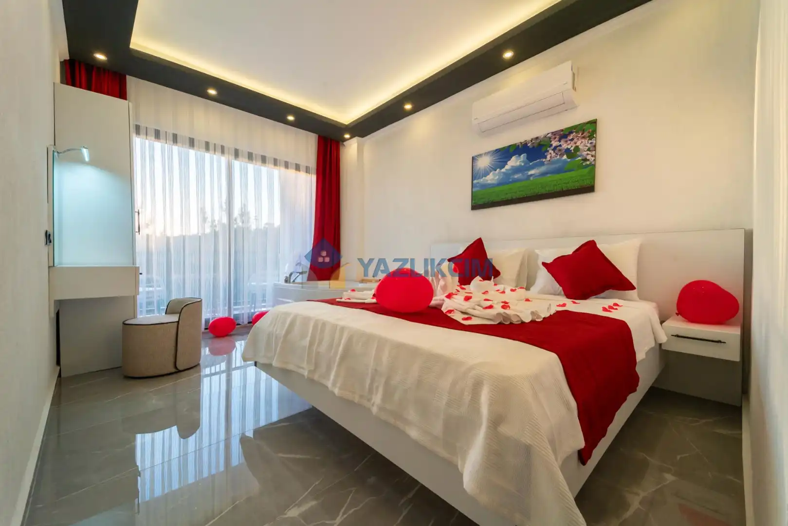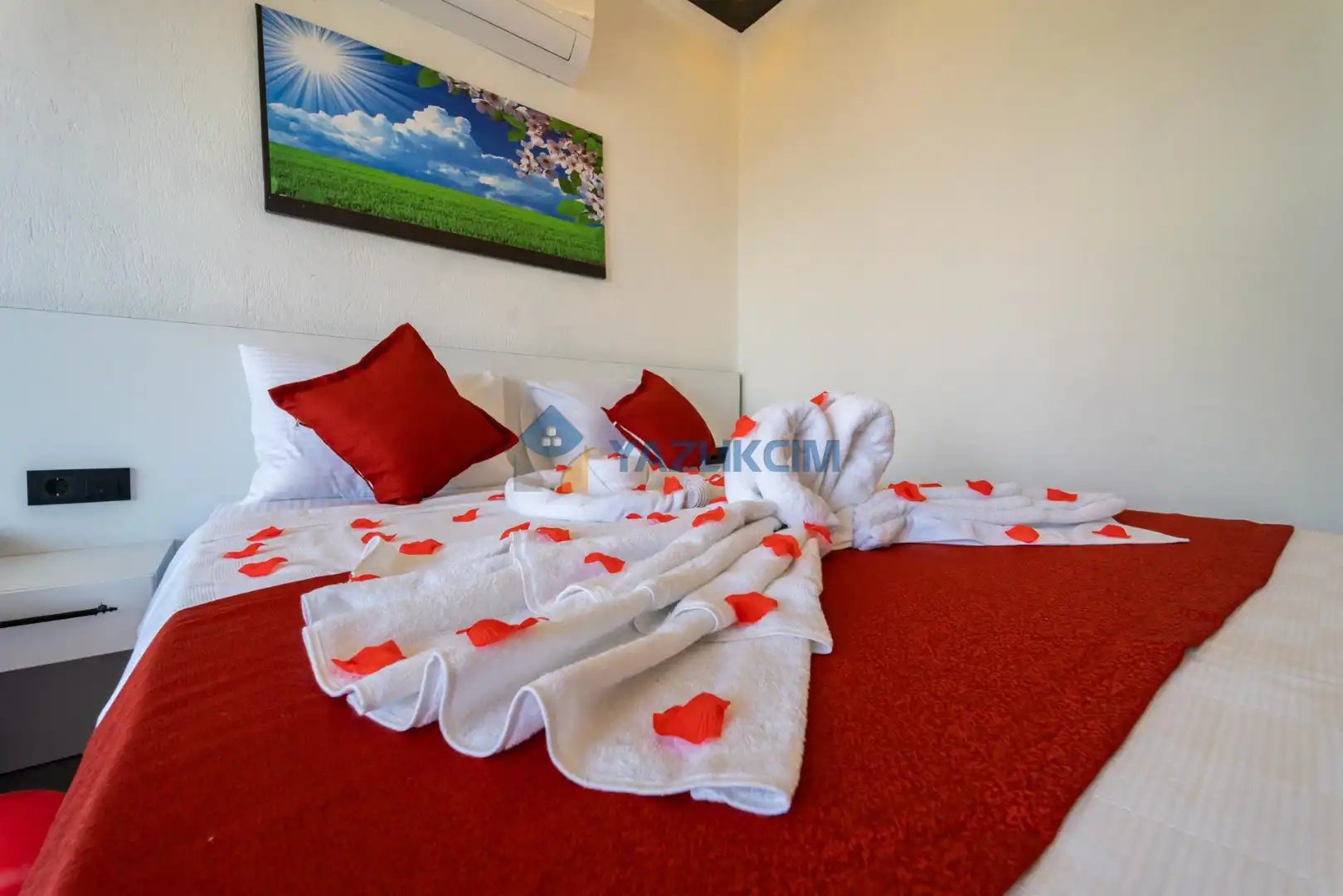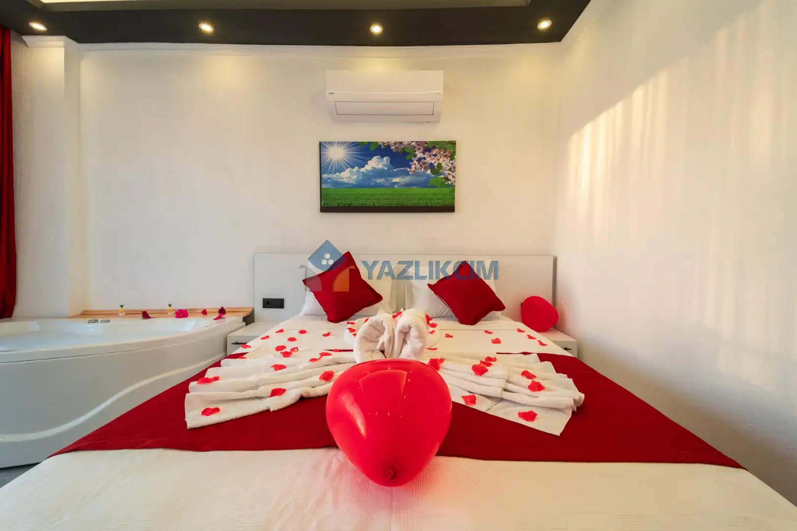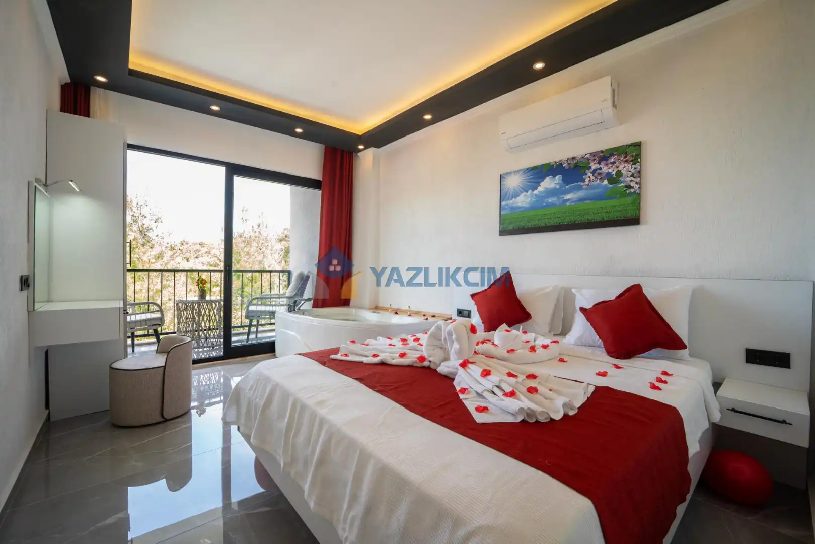 Detayları : Çift kişilik yatak, jakuzi, klima, komidin, elbise dolabı, makyaj masası, banyo ve lavabo bulunmaktadır.