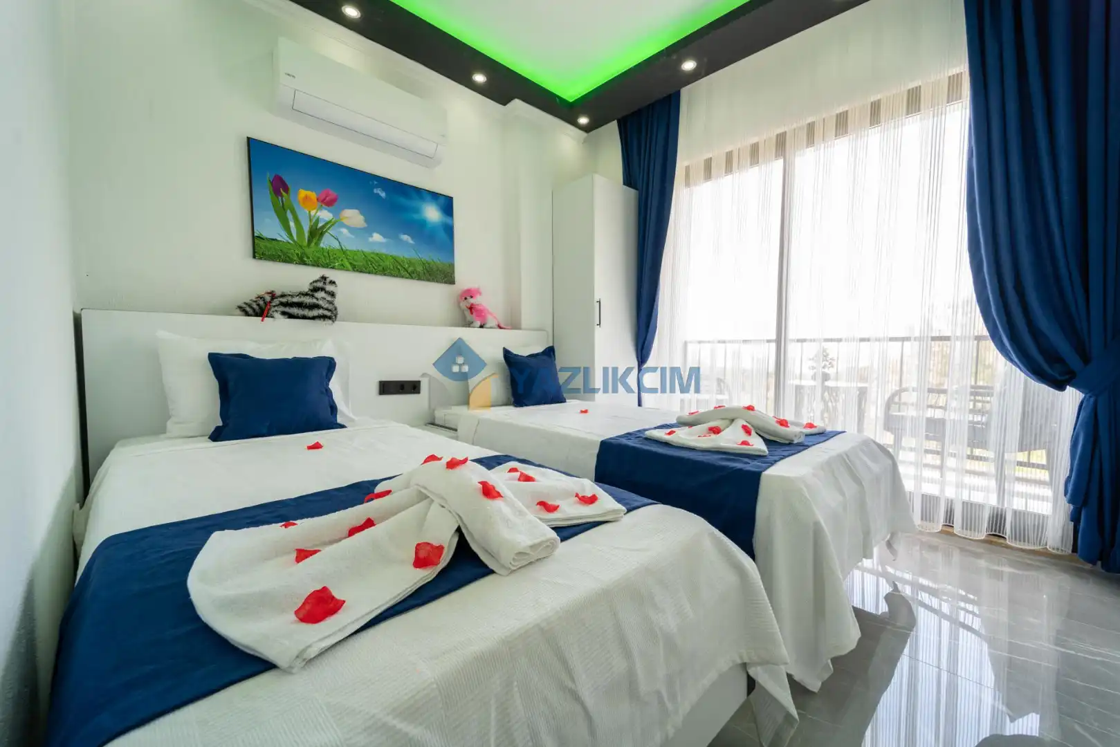 Detayları : 2 tane tek kişilik yatak , klima, komidin, elbise dolabı, makyaj masası, banyo ve lavabo bulunmaktadır.