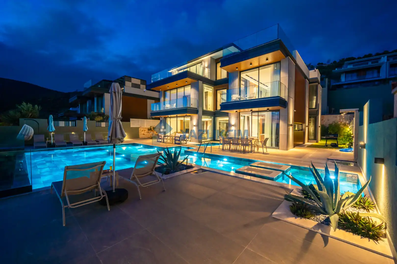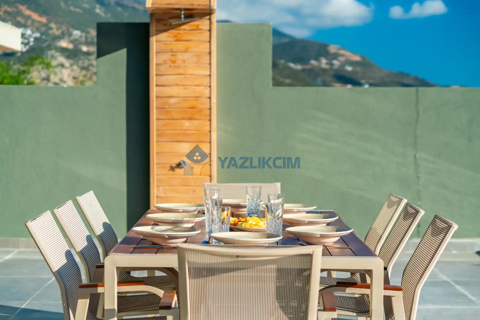 Detayları : Şezlonglar, şemsiye, yemek masası ve barbekü bulunmaktadır.