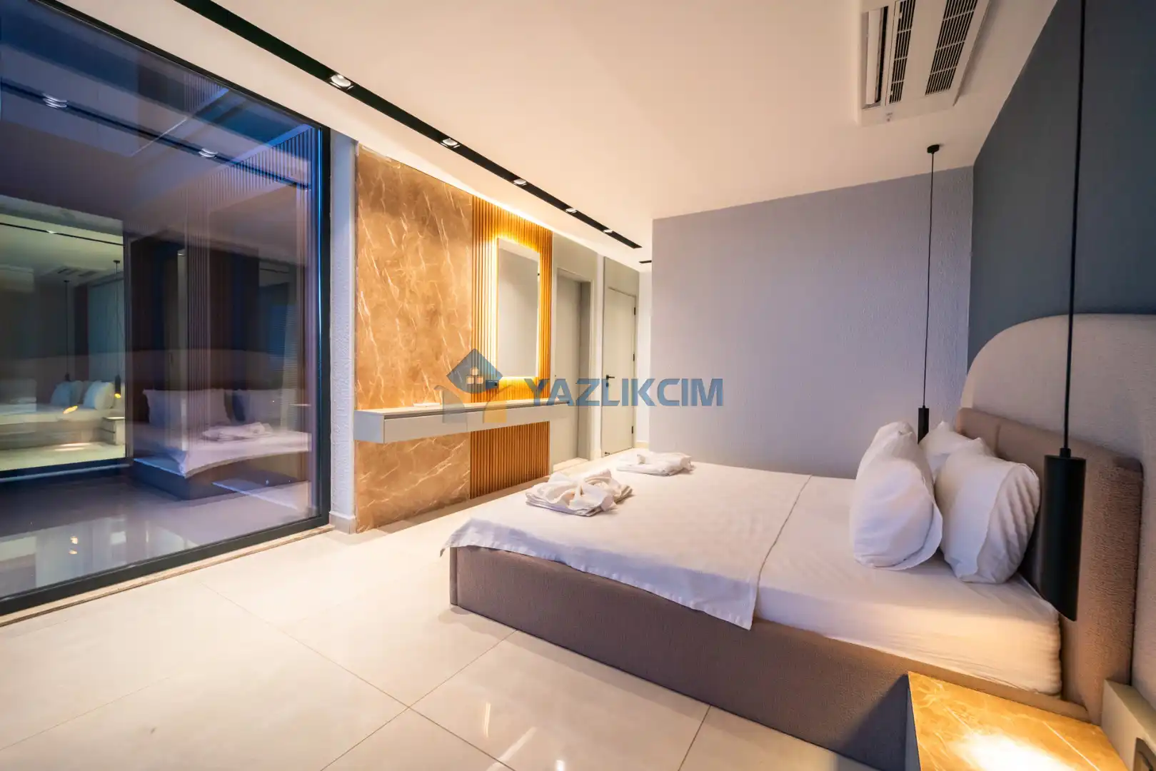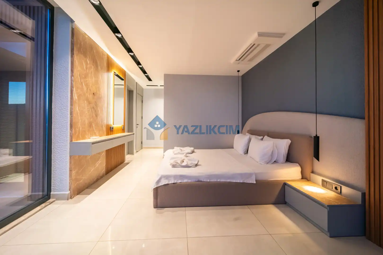 Detayları :çift kişilik yatak, elbise dolabı, klima, Ebeveyn banyosu bulunmaktadır.