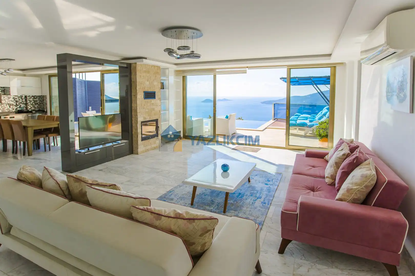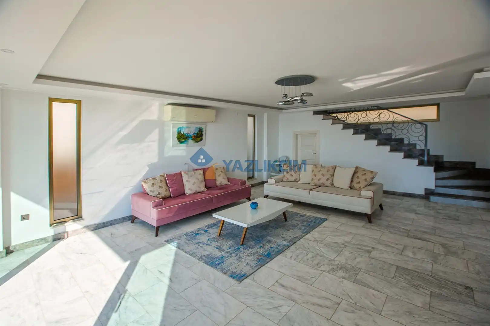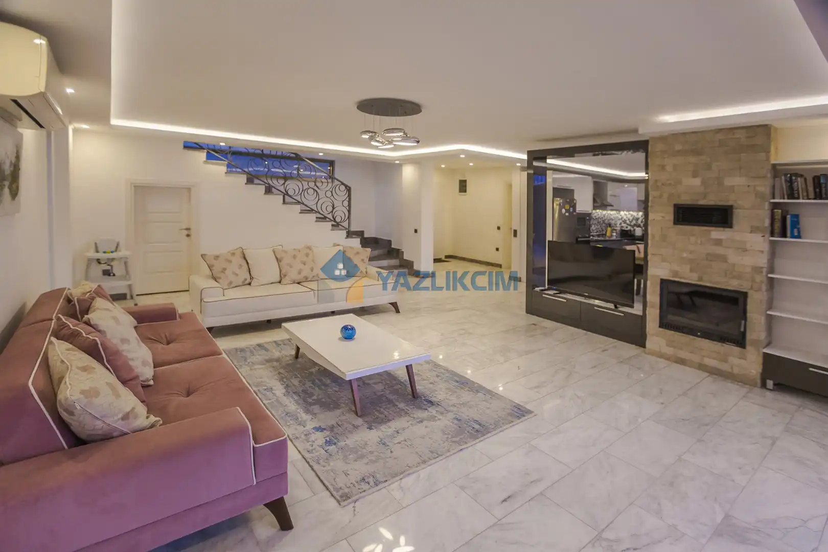 Salon Detayları: LCD TV, modern oturma grubu, yemek masası ve sandalyeler, kablosuz modem bulunmaktadır.