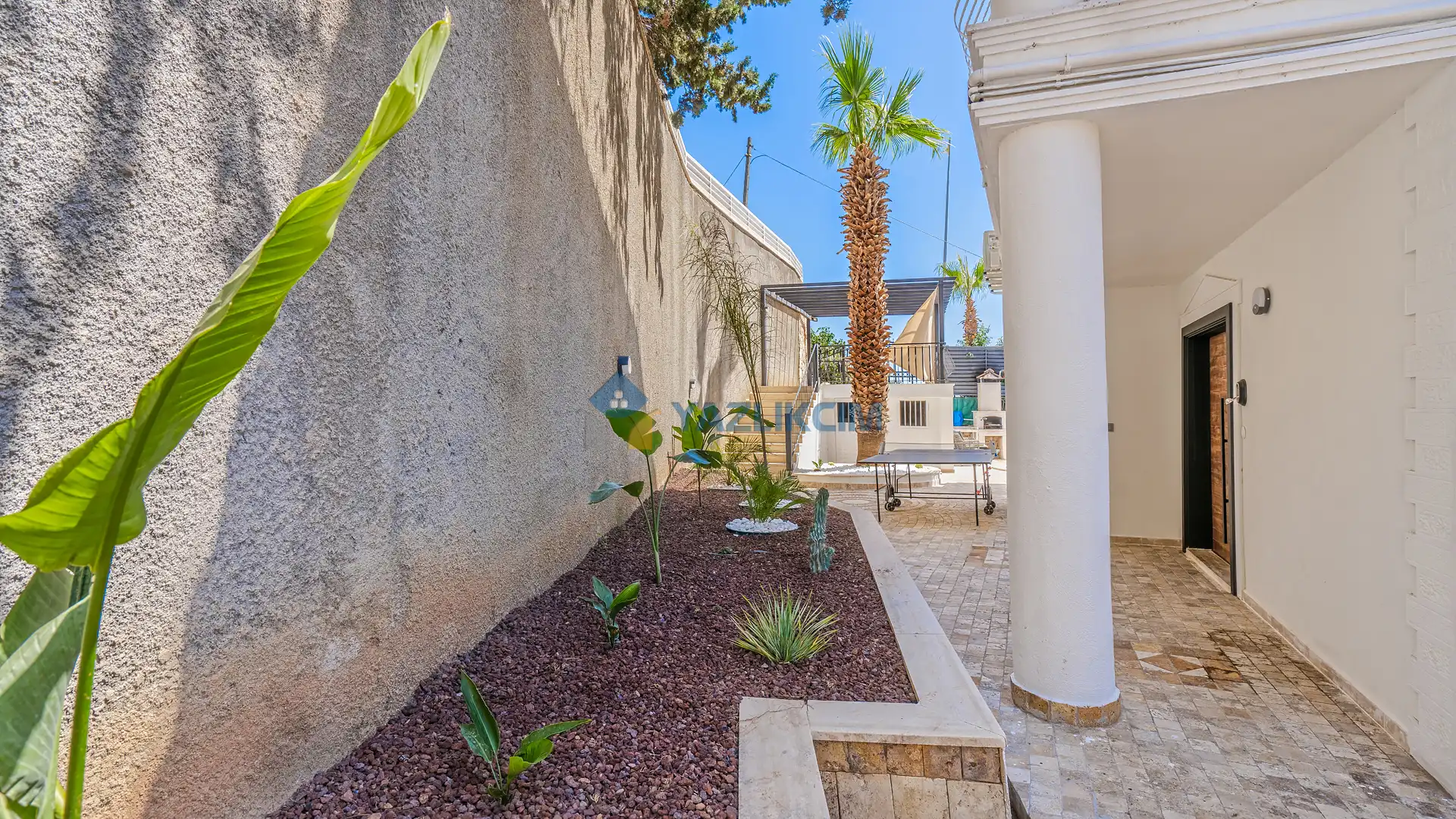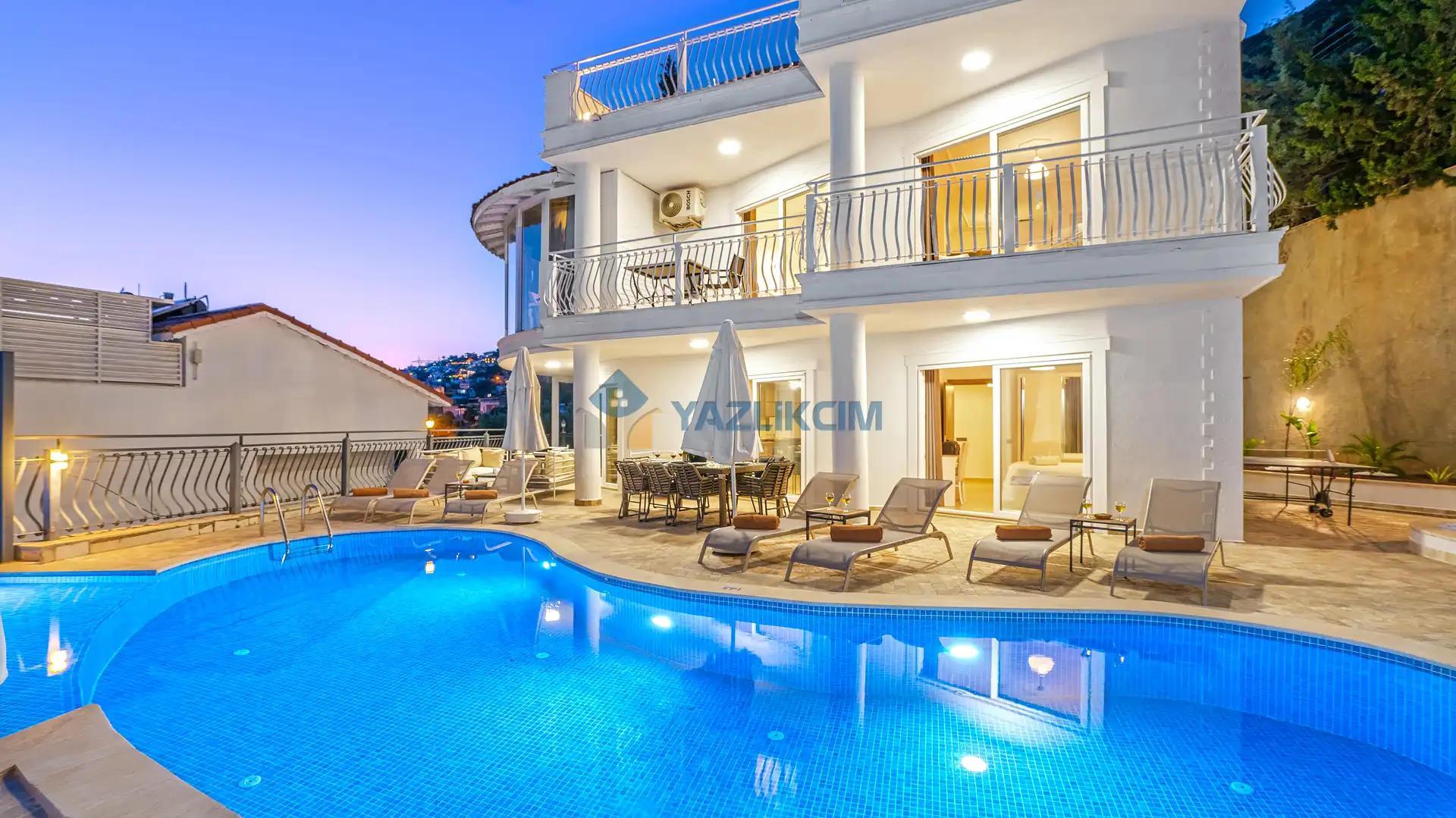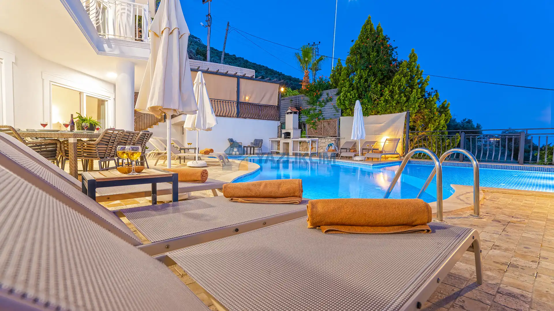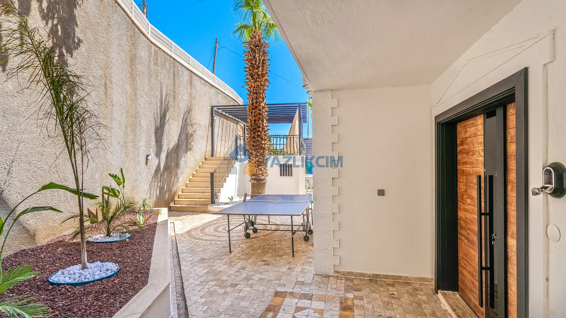 Detayları : Yemek masası ve sandalyeler, barbekü, masa tenisi, şezlong ve güneş şemsiyesi bulunmaktadır.