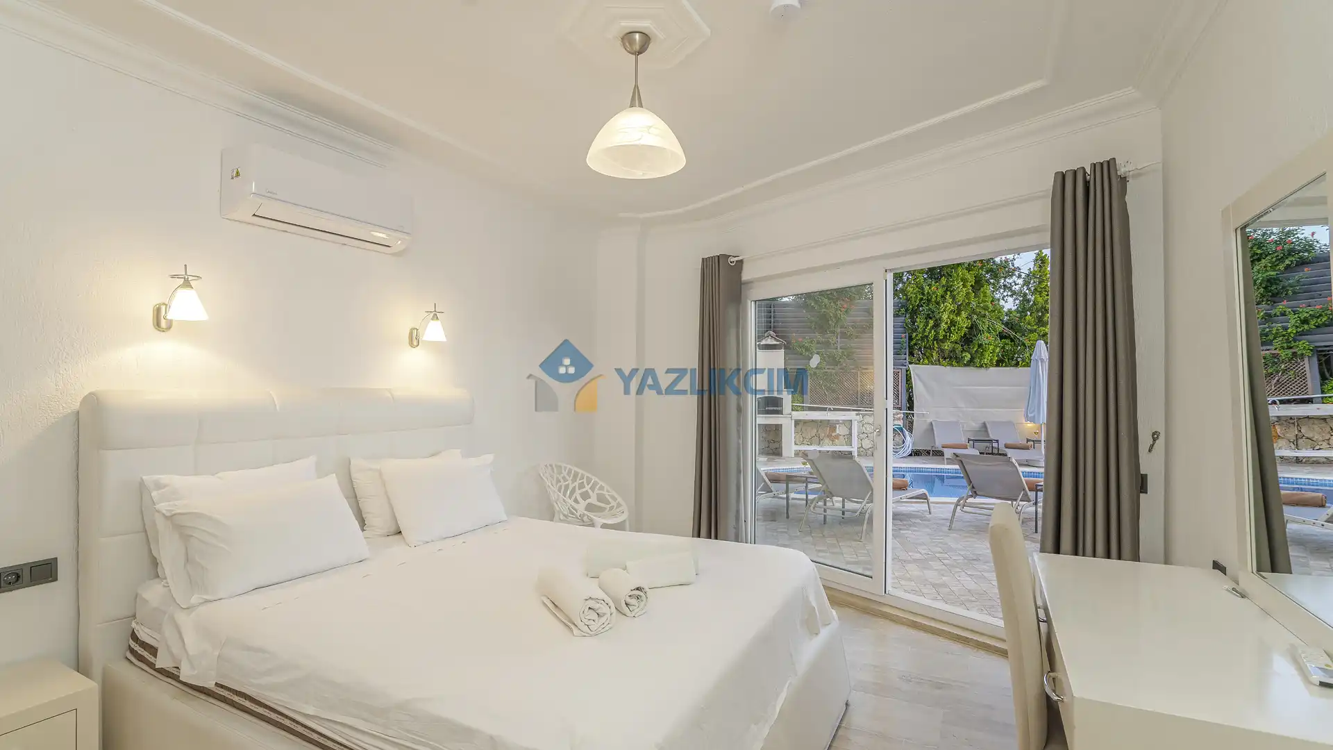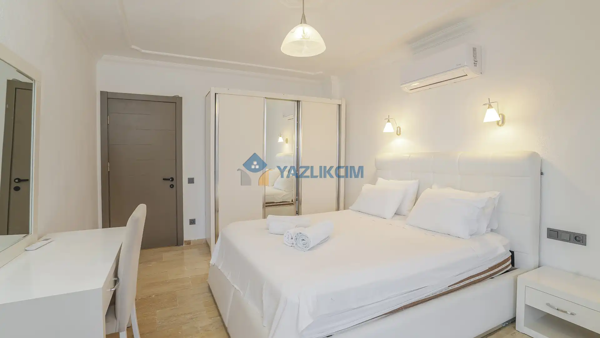 Detayları : 1 adet çift kişilik yatak, elbise dolabı, komodin, klima , makyaj masası yer almaktadır.