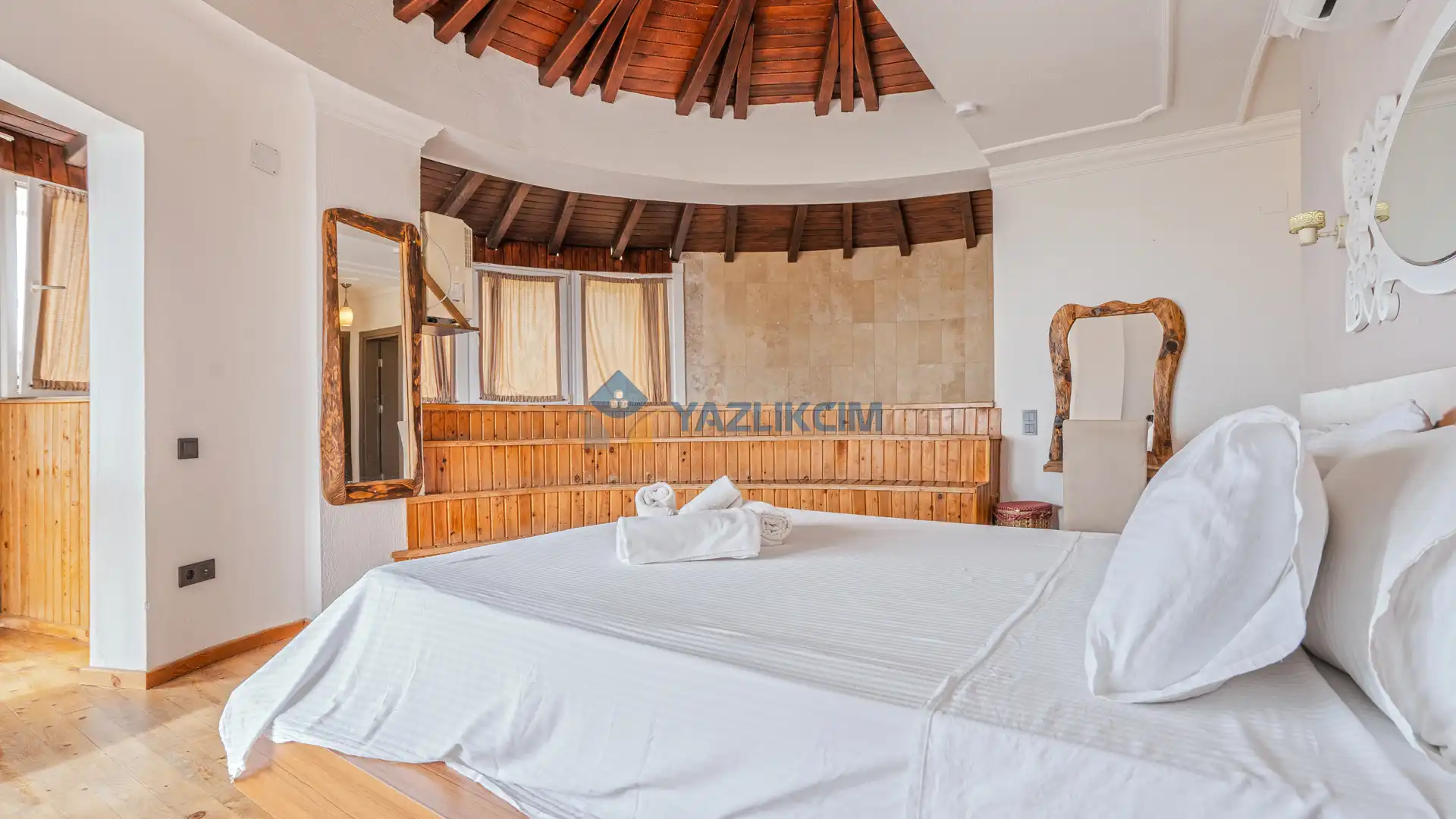 Detayları : 1 adet çift kişilik yatak, elbise dolabı, klima, komodin, makyaj masası, banyo ve lavabo bulunmaktadır.