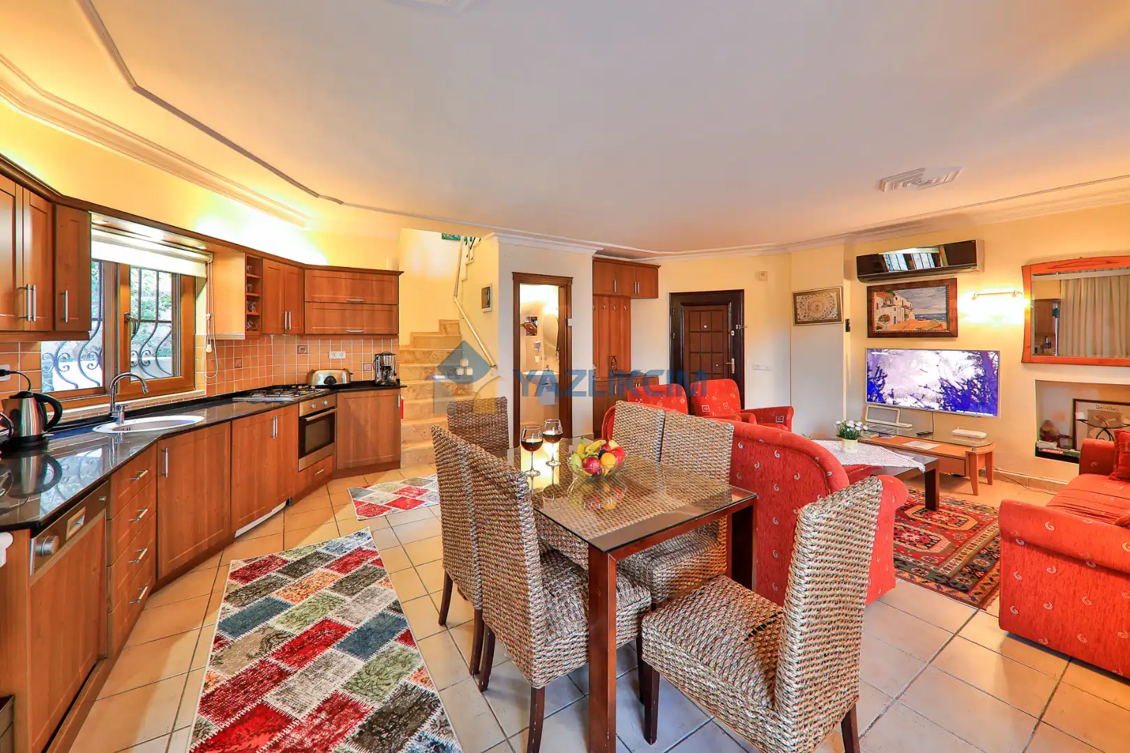 Mutfak Detayları: Buzdolabı, Bulaşık Makinesi, Çamaşır Makinesi,Fırın, 4’lü Ocak (ankastre), Tava & Tencere vb. Mutfak Ekipmanları, 8 Kişilik Yemek Takımı