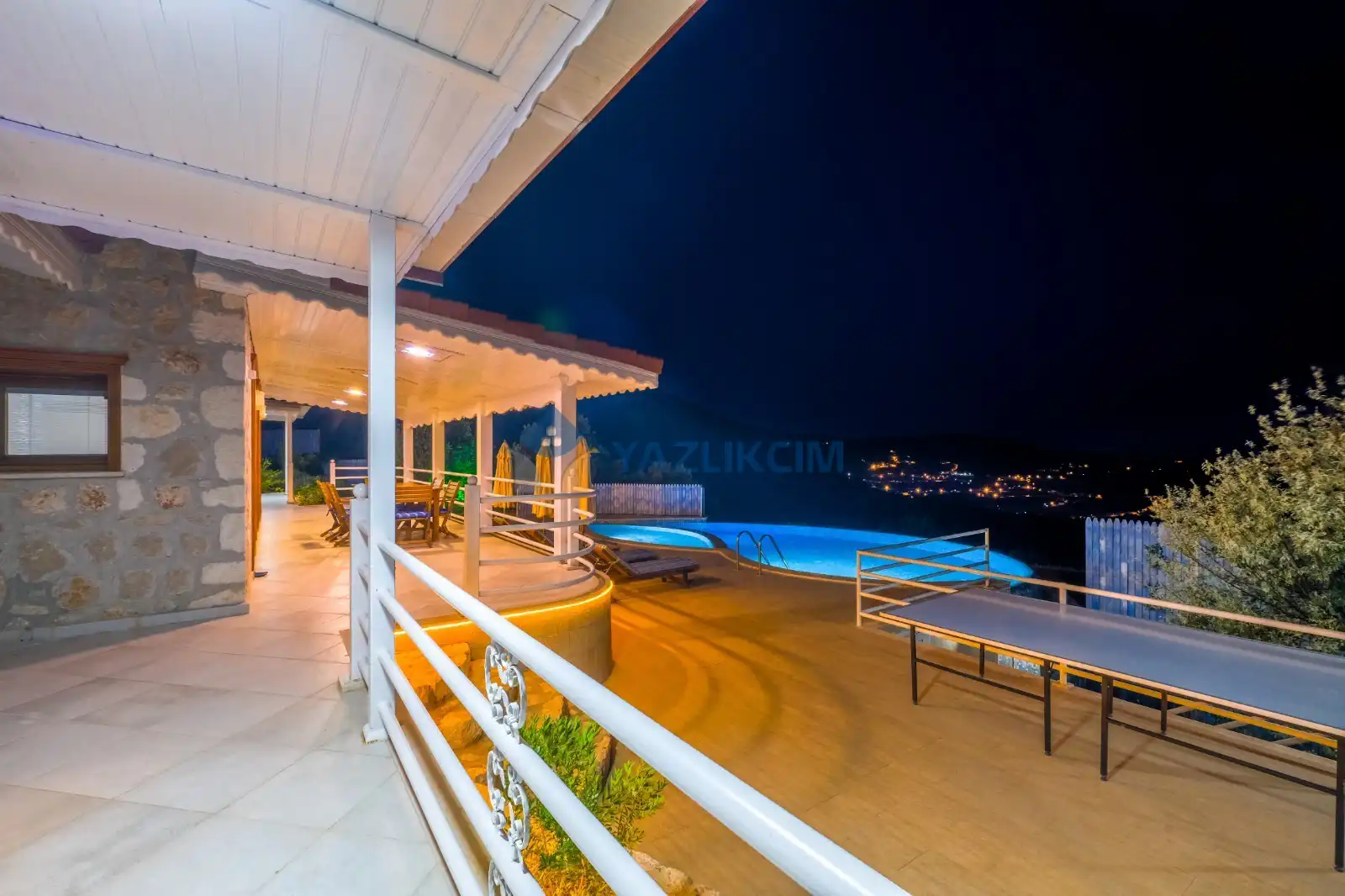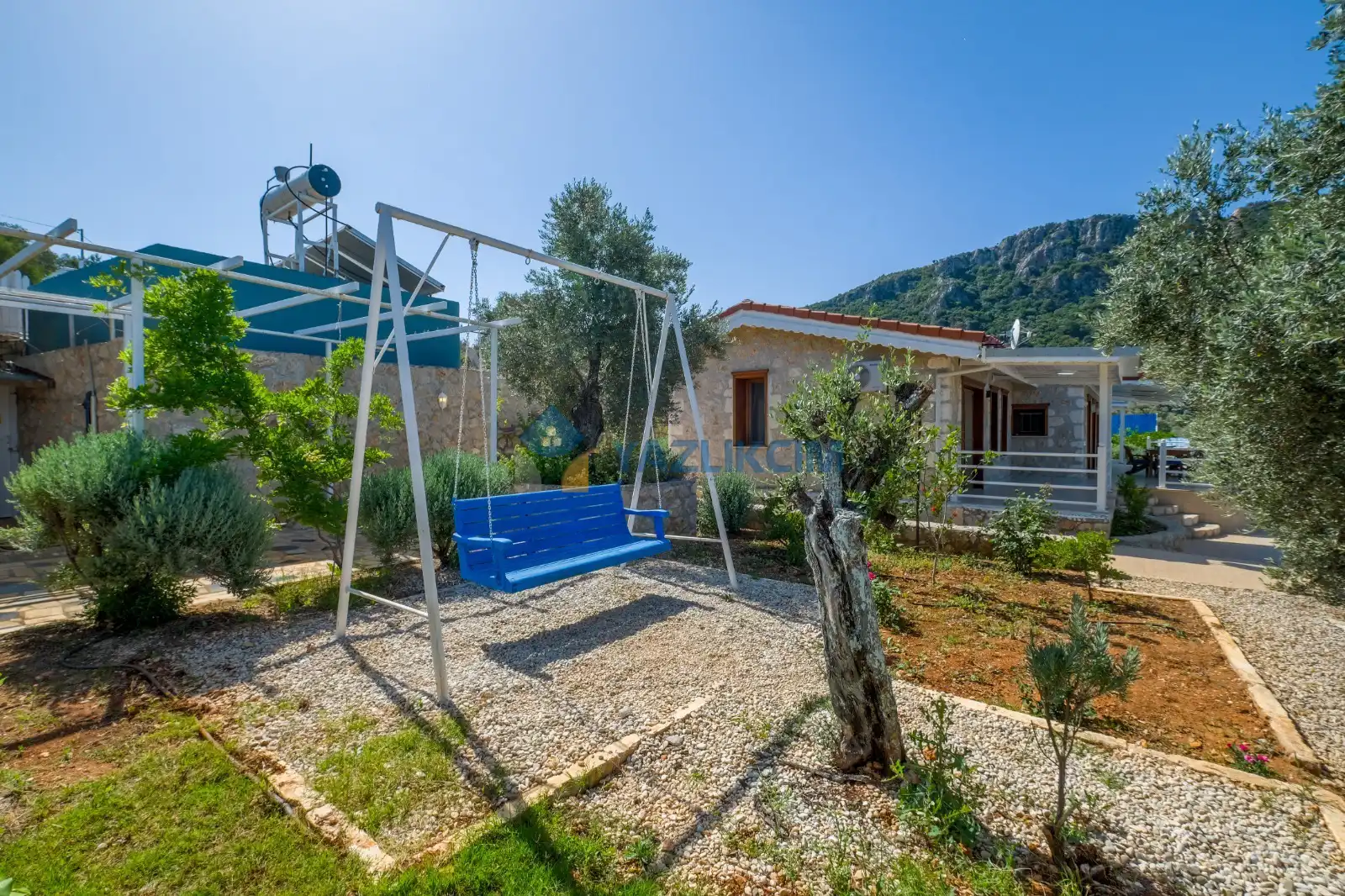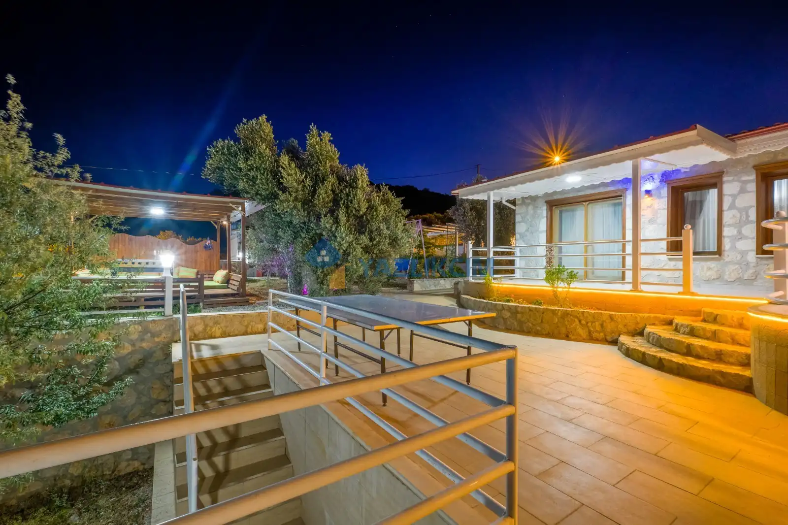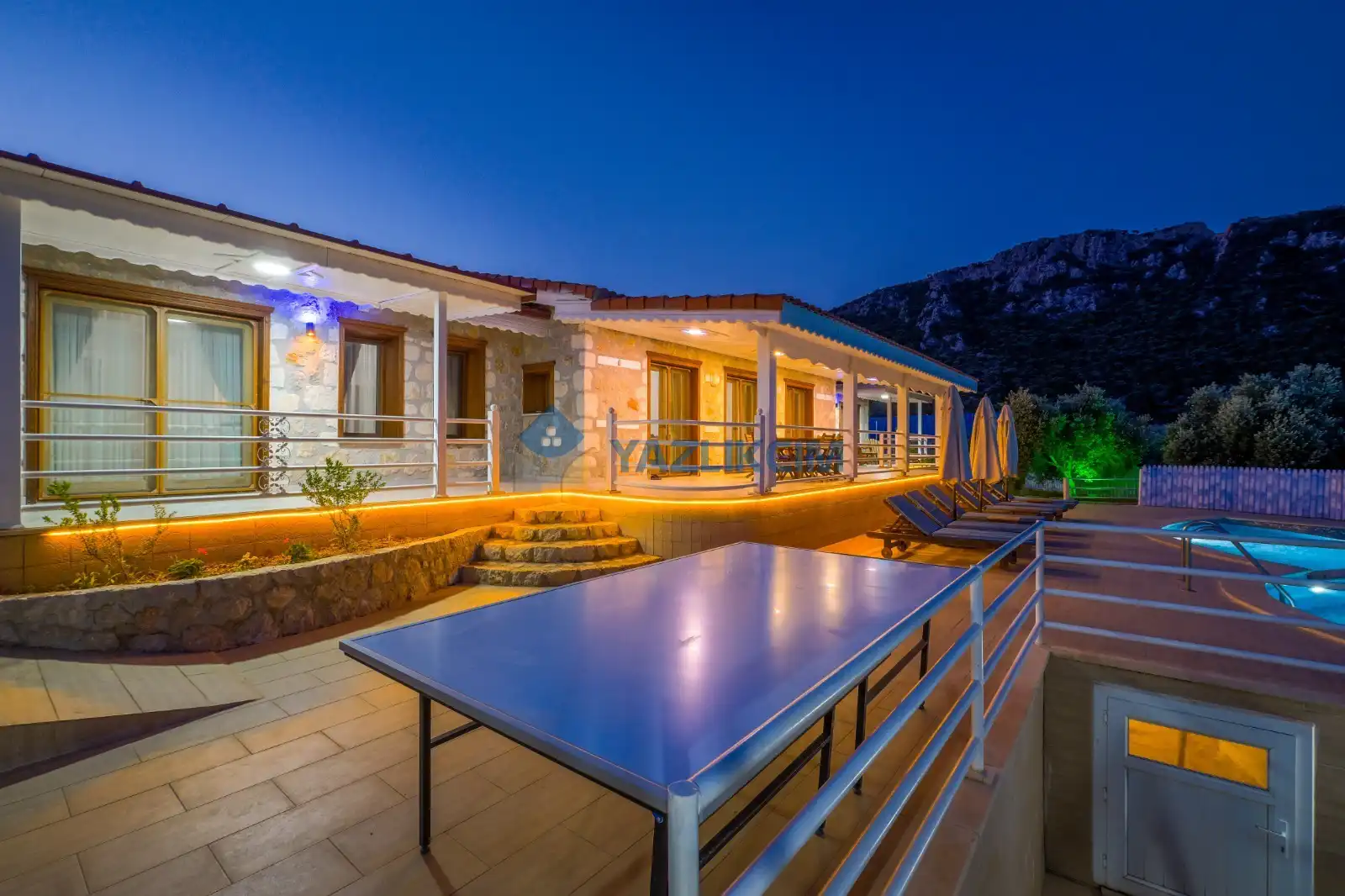 Detayları : Şezlong, güneşlenme şemsiyesi, barbekü, salıncak, langırt, masa tenisi, yemek masası ve sandalyeleri bulunmaktadır.