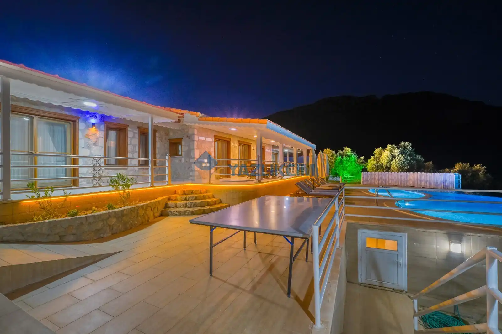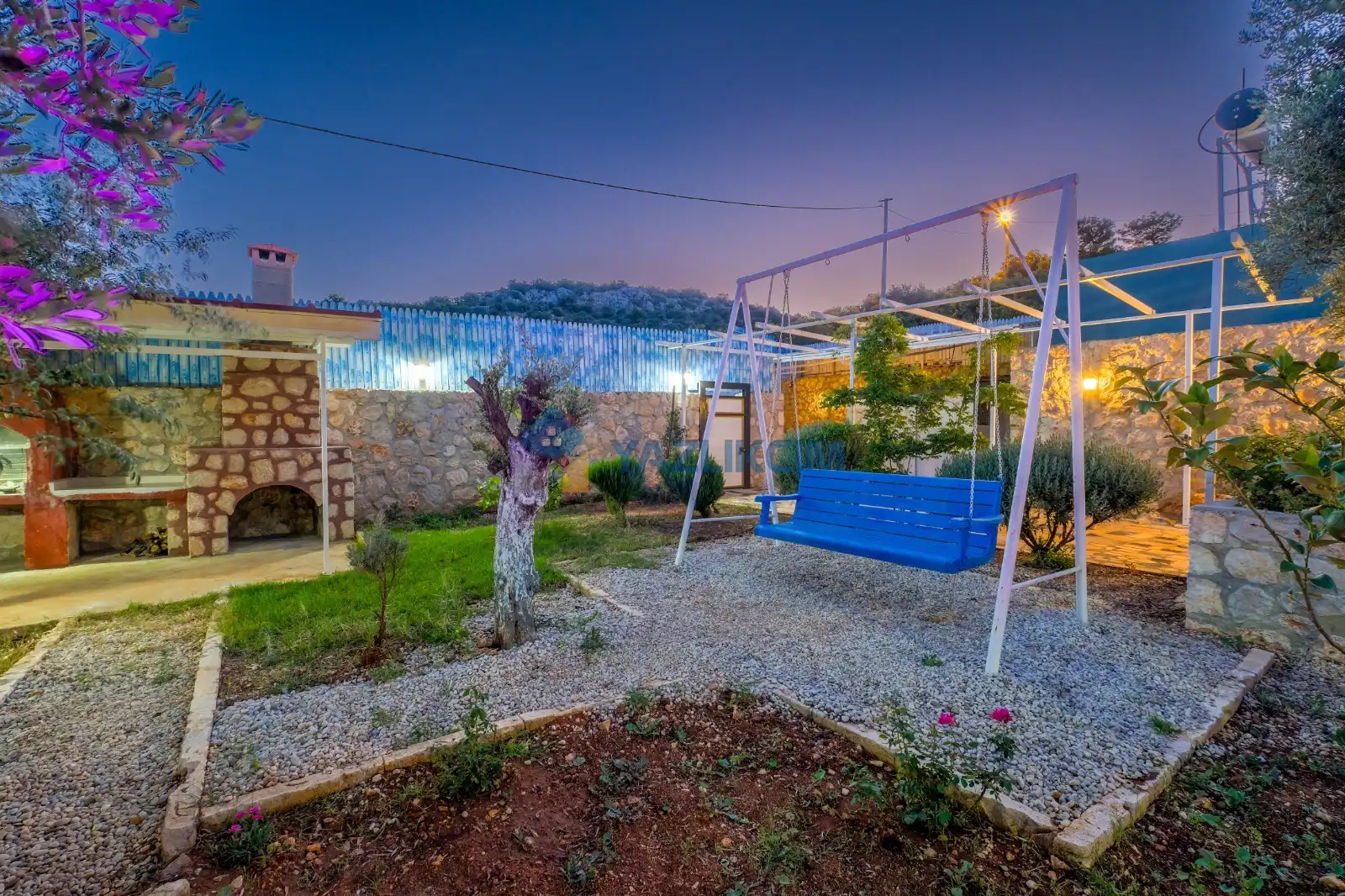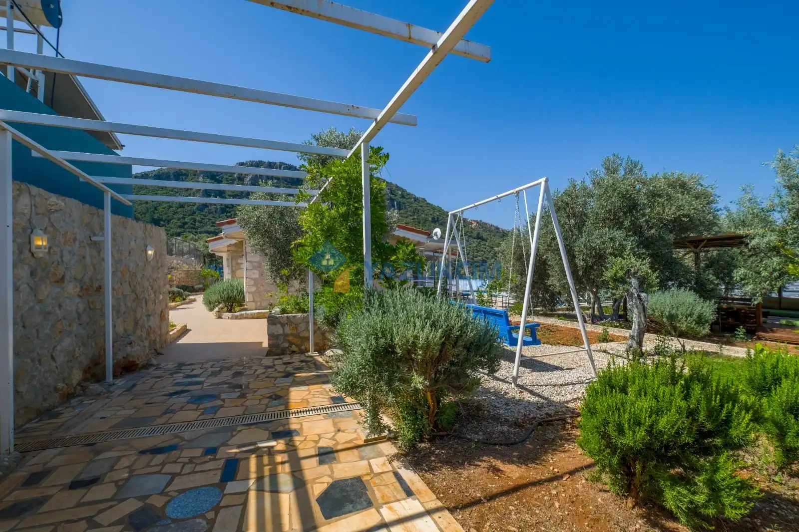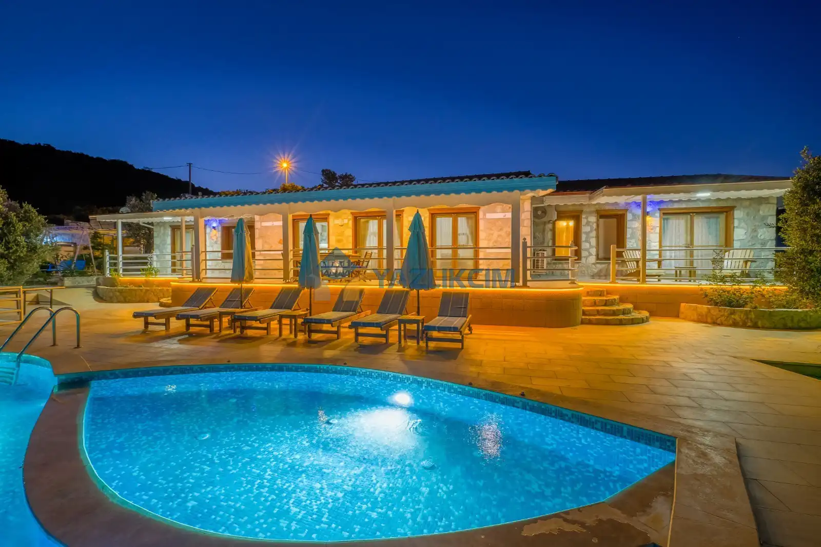 Detayları : Şezlong, güneşlenme şemsiyesi, barbekü, salıncak, langırt, masa tenisi, yemek masası ve sandalyeleri bulunmaktadır.
