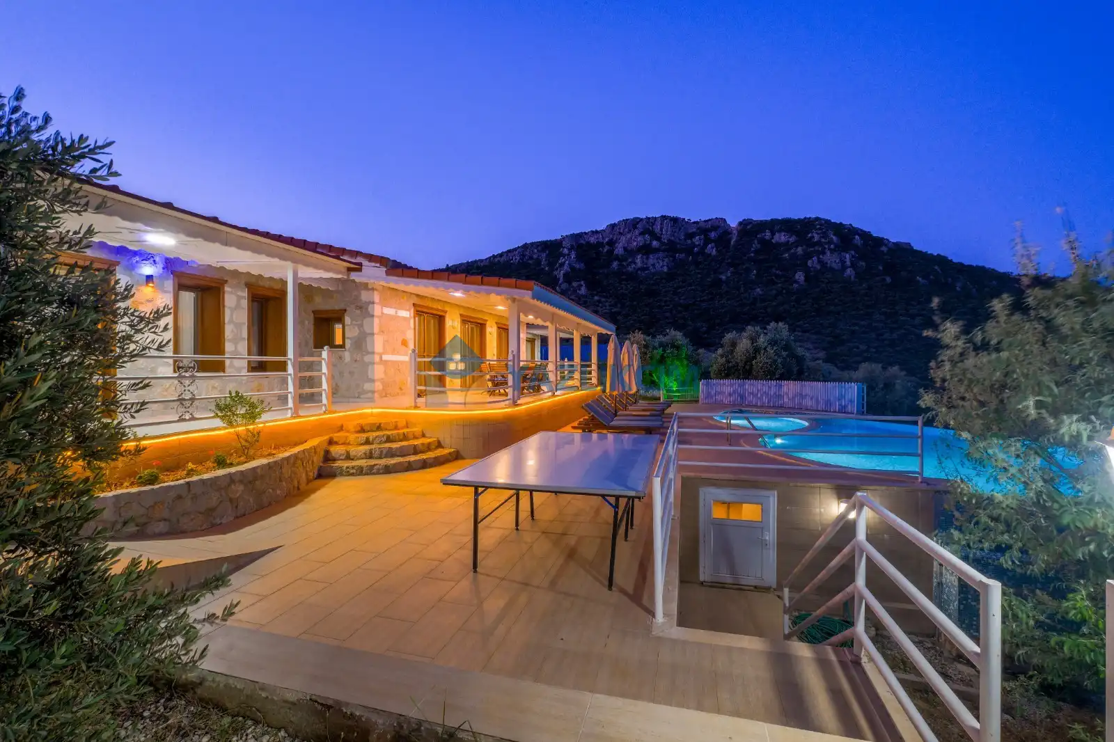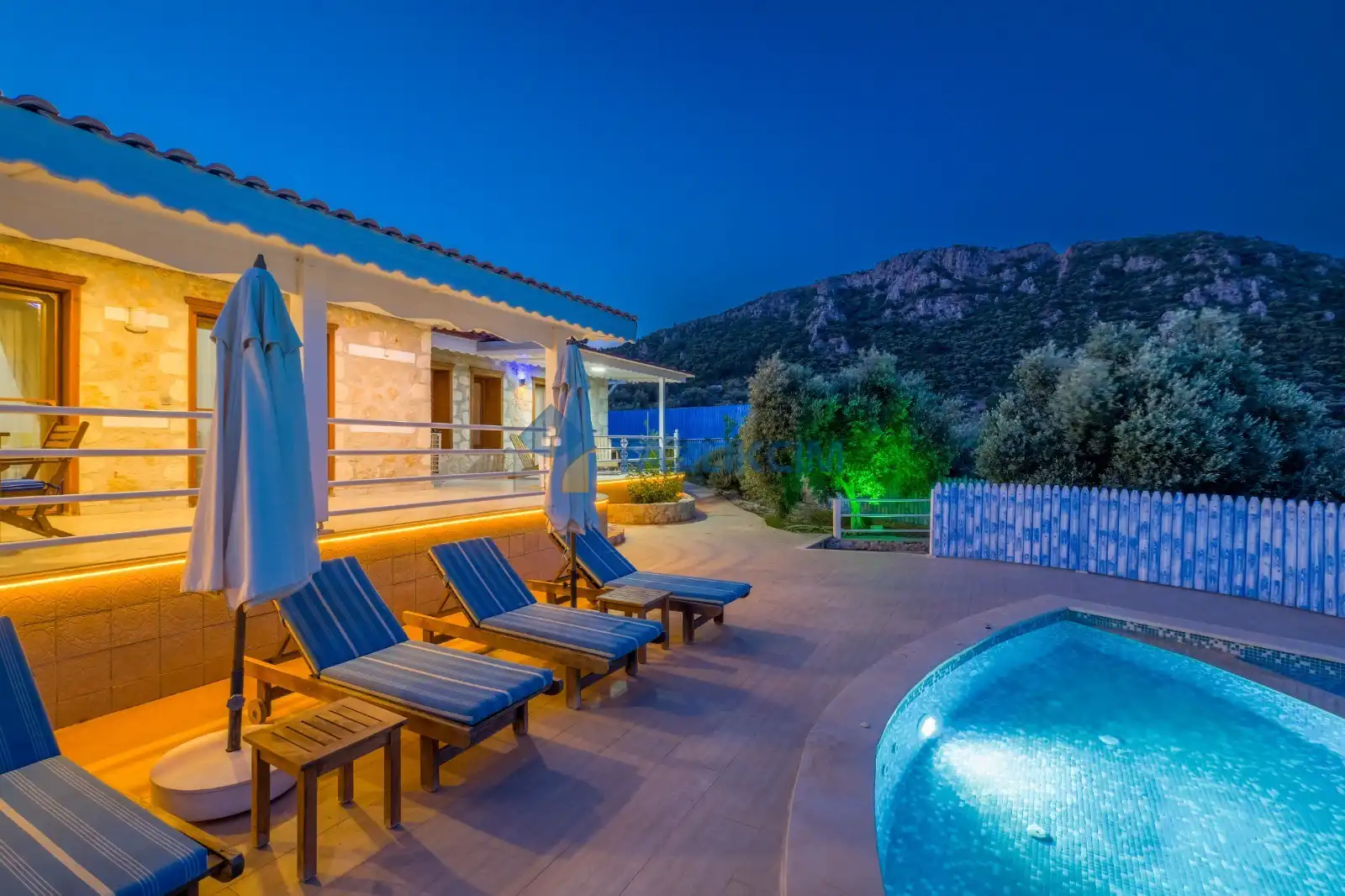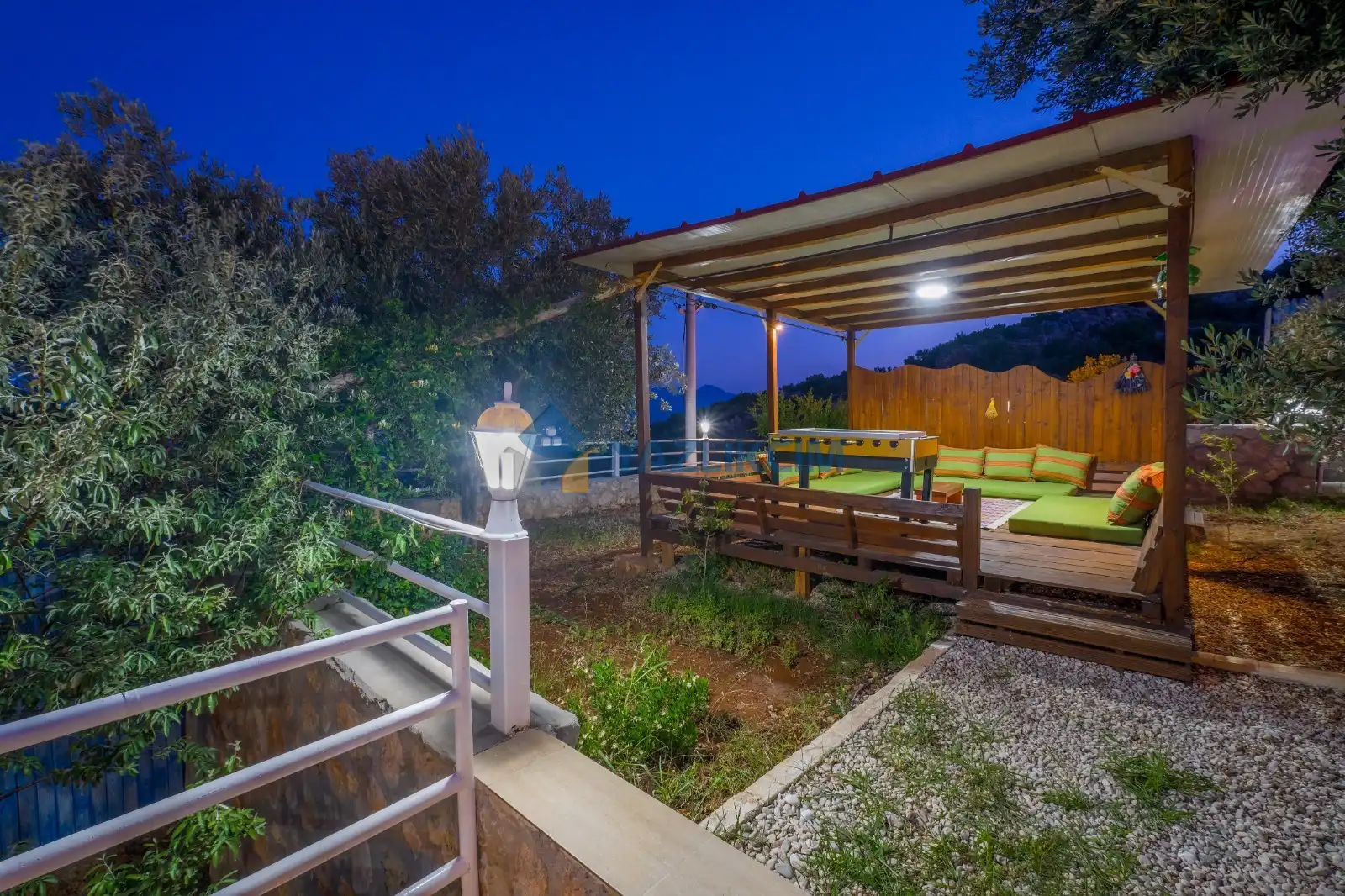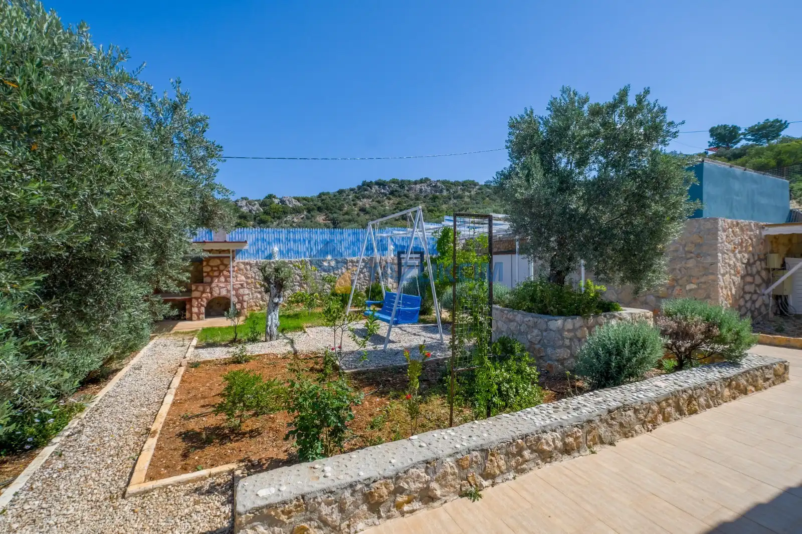 Detayları : Şezlong, güneşlenme şemsiyesi, barbekü, salıncak, langırt, masa tenisi, yemek masası ve sandalyeleri bulunmaktadır.