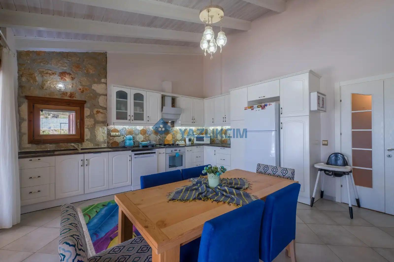 Mutfak Detayları: Buzdolabı, bulaşık makinesi, fırın, çamaşır makinesi, yemek takımı, tava-tencere, çatal-bıçak seti bulunmaktadır.