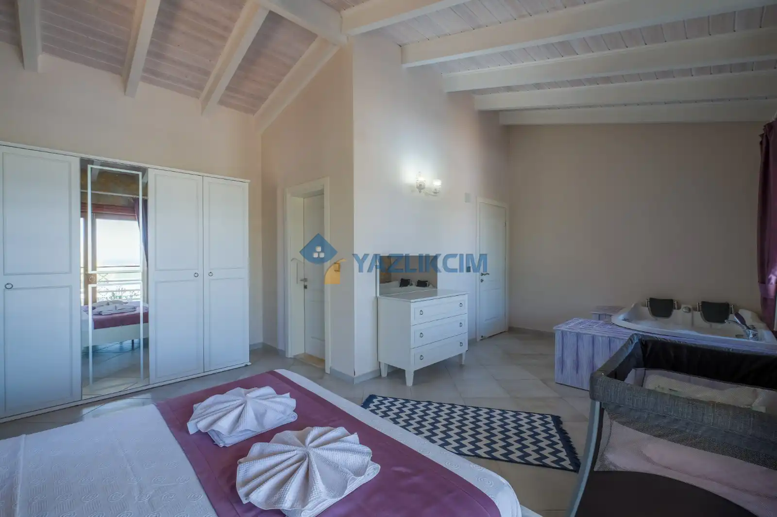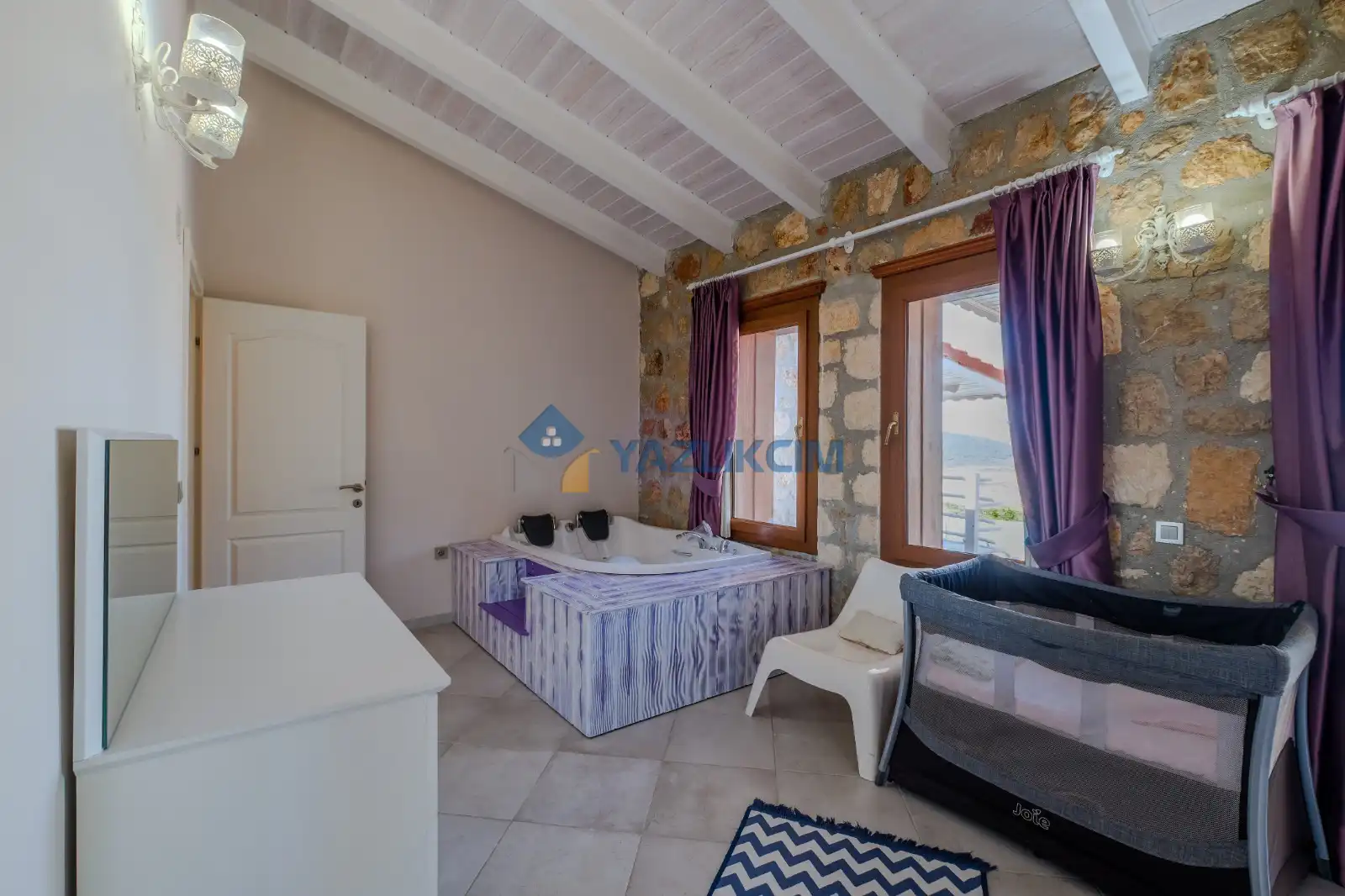 Detayları : Çift kişilik yatak, klima, jakuzi, bebek yatağı, komidin, elbise dolabı, makyaj masası, banyo ve lavabo bulunmaktadır.
