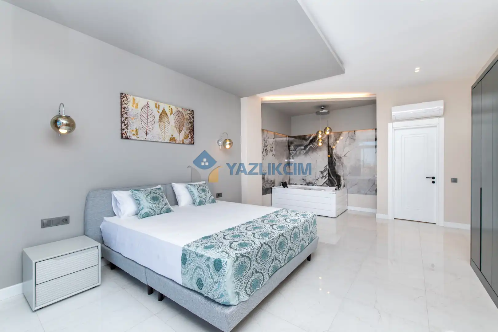 Her villanın konumu farklı olduğundan dolayı villadan villaya değişiklik göstermektedir ancak her villa için kendi sayfasında mesafe cetveli bulunmaktadır ve siz o villanın market, restoran, deniz vb. yerlere olan uzaklığını görebilirsiniz.