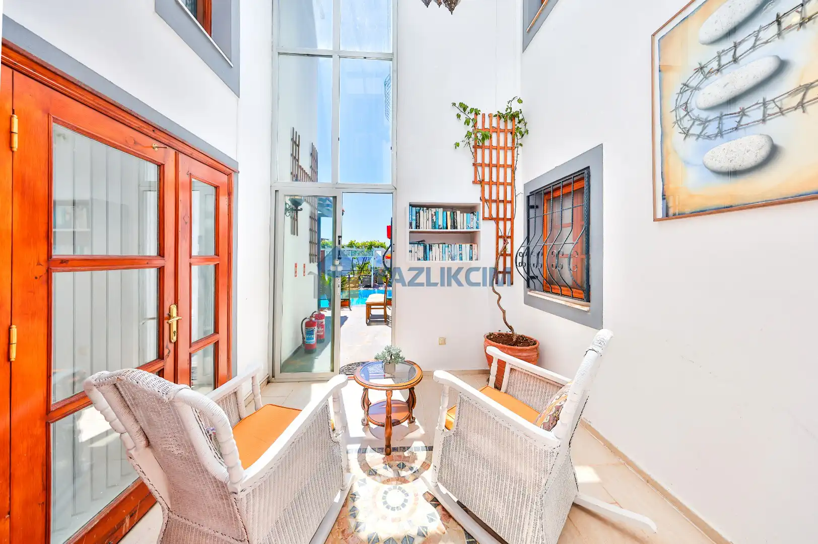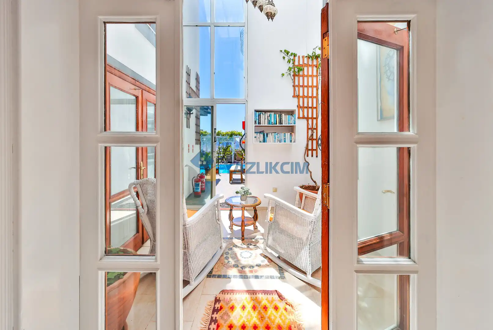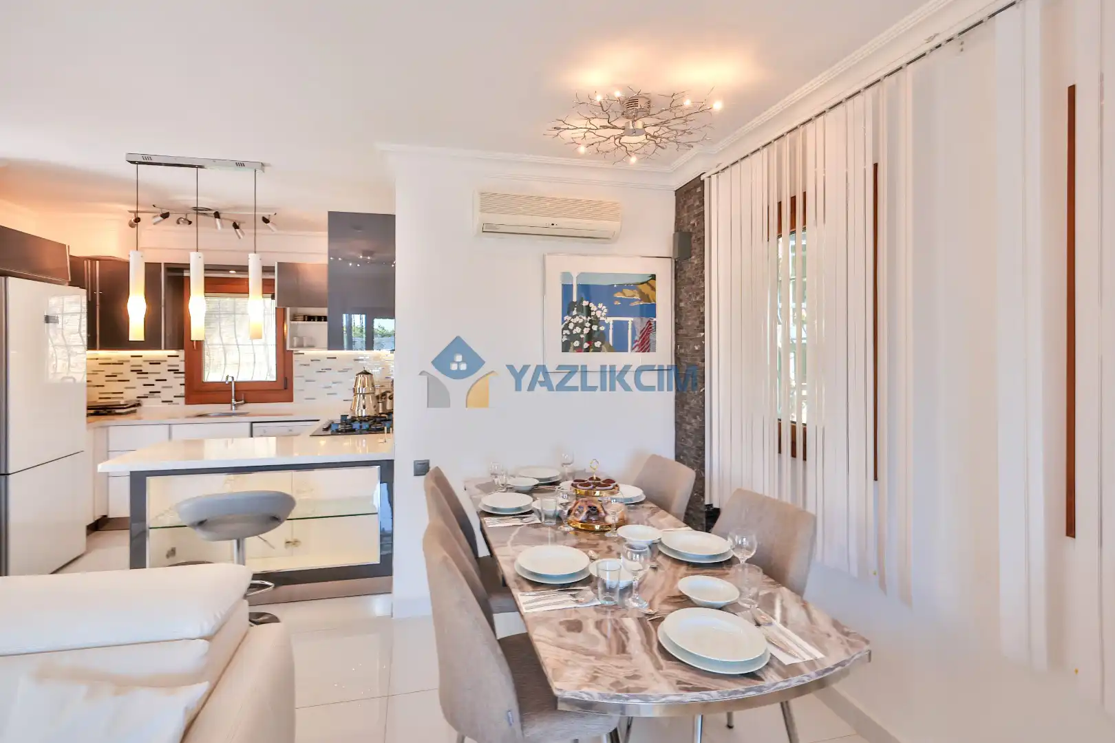 Salon Detayları: Oturma Grubu, Smart TV, Kablosuz İnternet, Klima, Yemek Masası, Havuz Terasına Çıkış