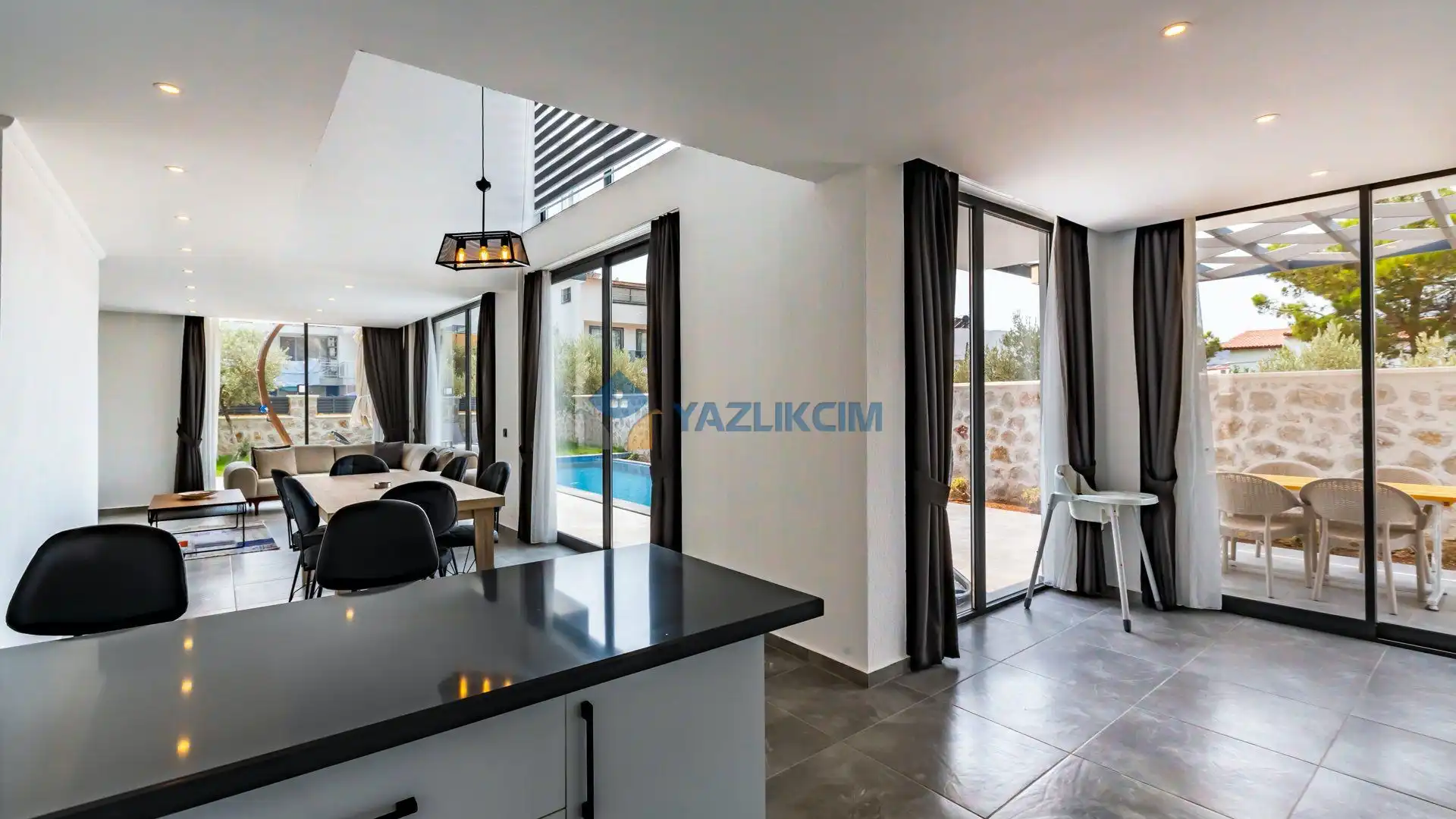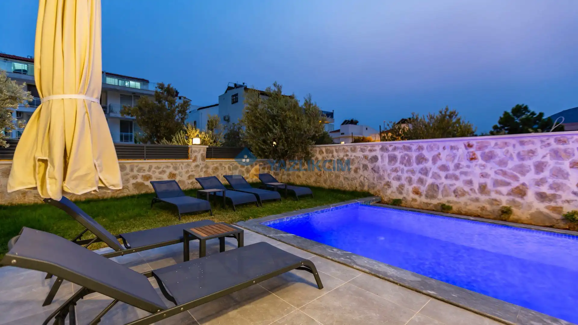 Detayları : Şezlong, güneşlenme şemsiyesi, barbekü, salıncak, Bilardo , yemek masası ve sandalyeleri bulunmaktadır.