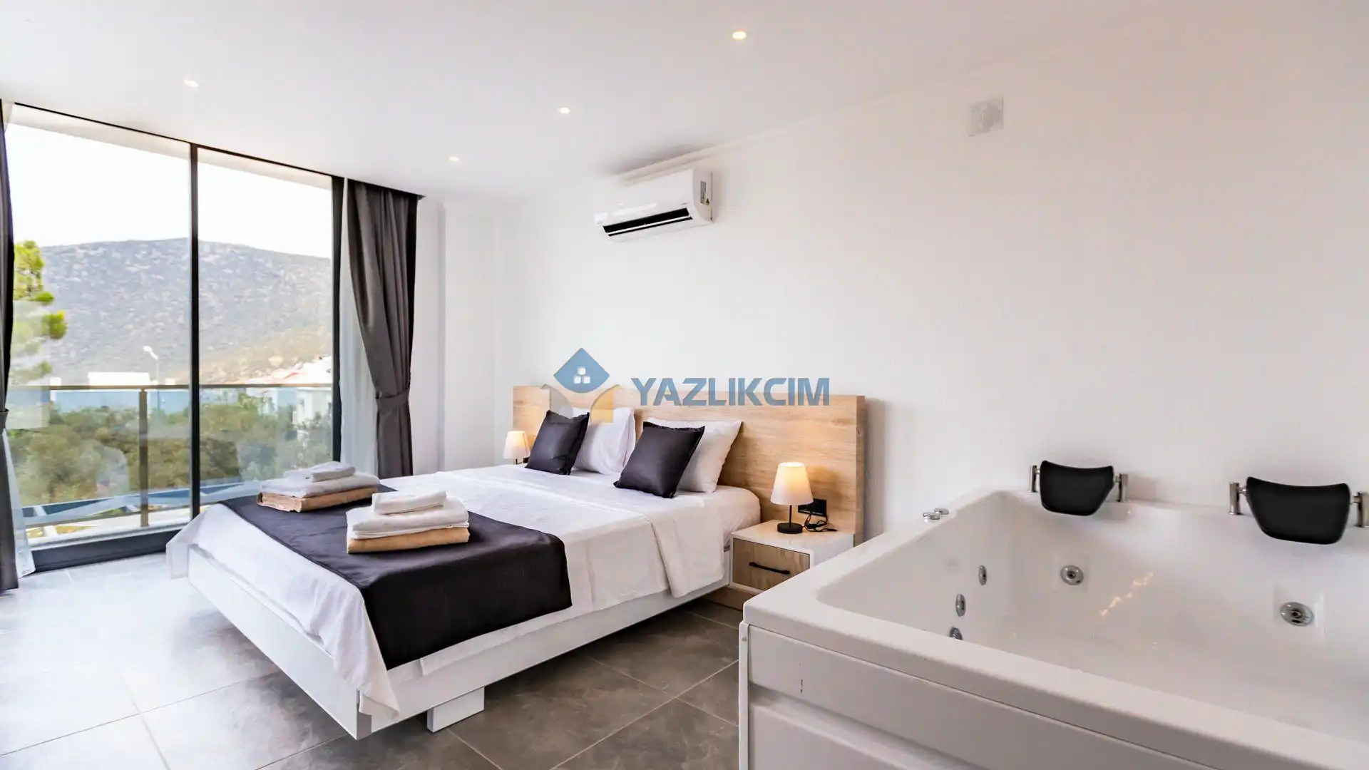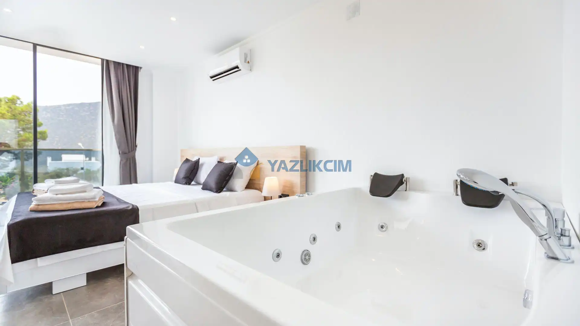 Detayları : Çift kişilik yatak, klima, komodin, jakuzi ,elbise dolabı, makyaj masası, banyo ve lavabo ,Balkonda jakuzi bulunmaktadır.