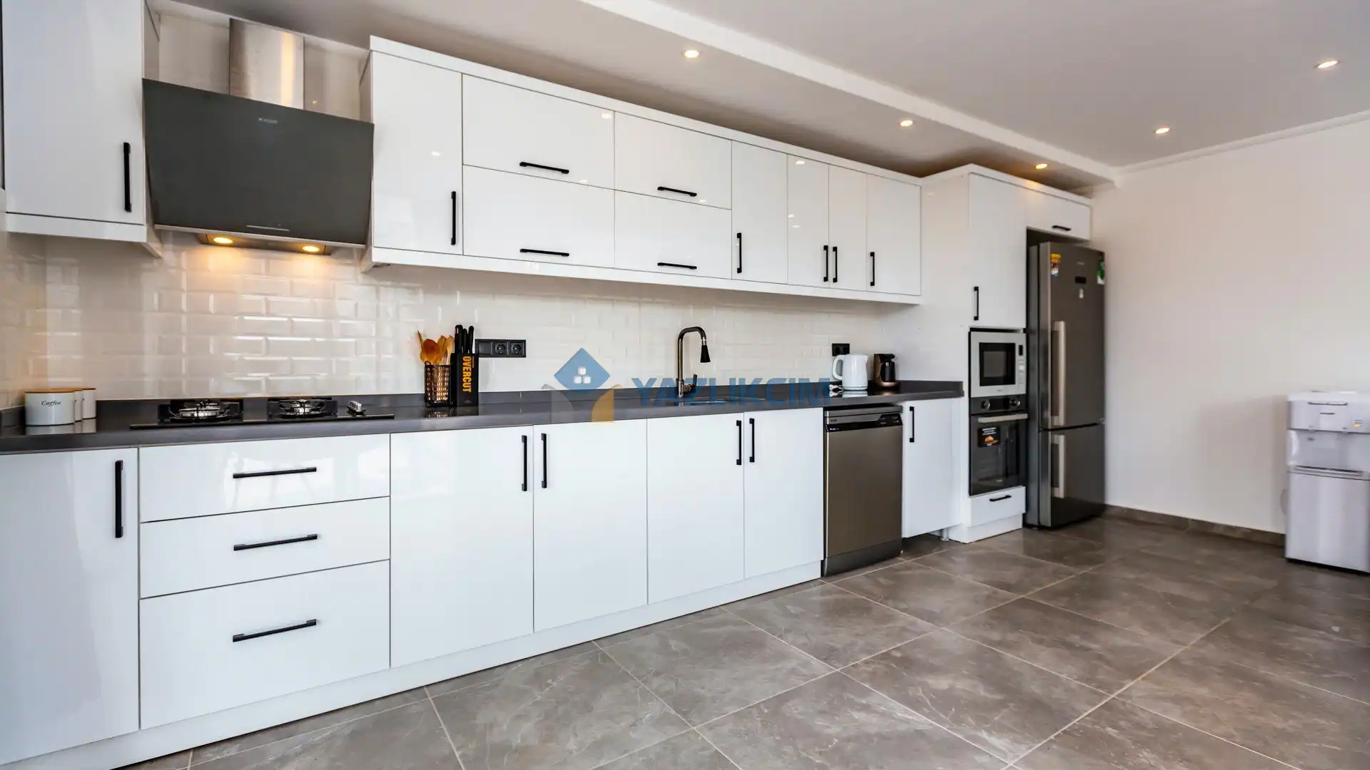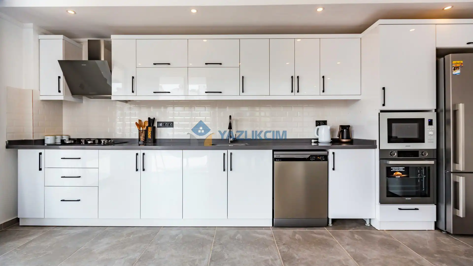Mutfak Detayları: Buzdolabı, bulaşık makinesi, fırın, çamaşır makinesi, yemek takımı, tava-tencere, çatal-bıçak seti bulunmaktadır.