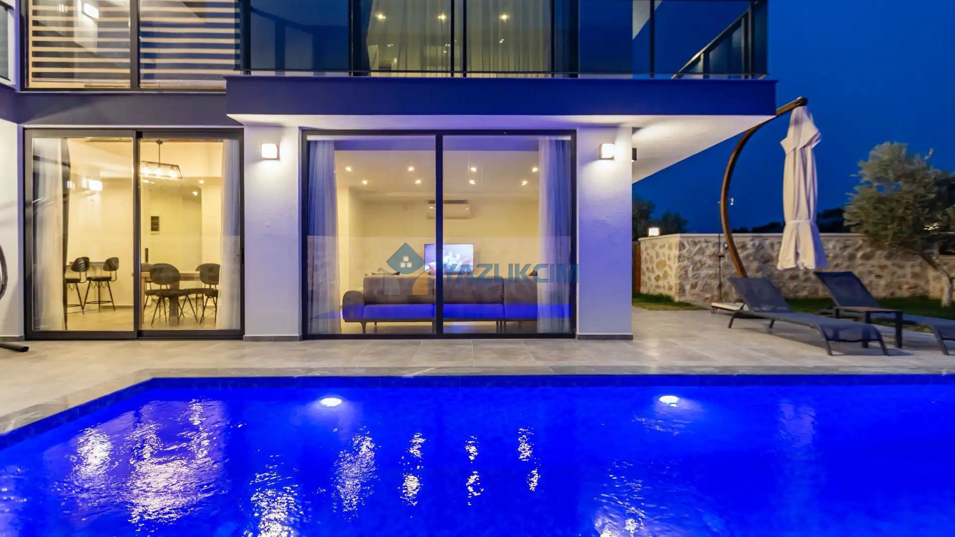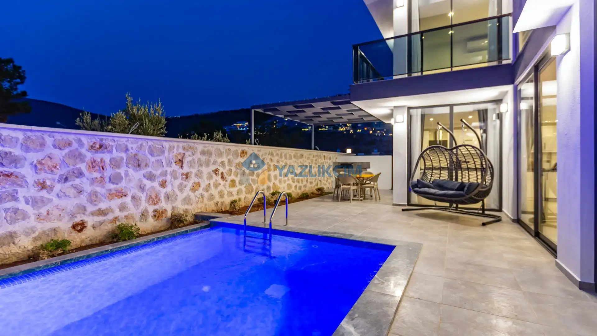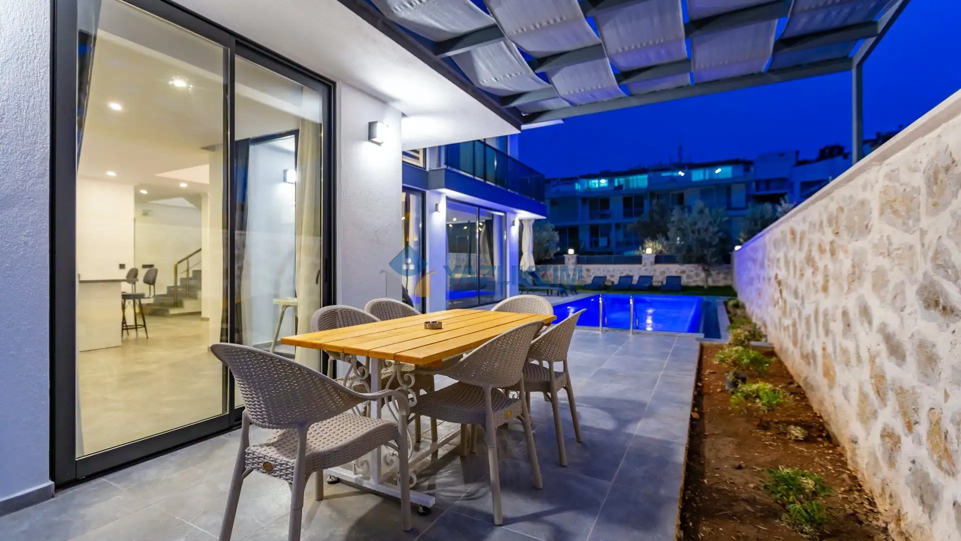 Detayları : Şezlong, güneşlenme şemsiyesi, barbekü, salıncak, Bilardo , yemek masası ve sandalyeleri bulunmaktadır.