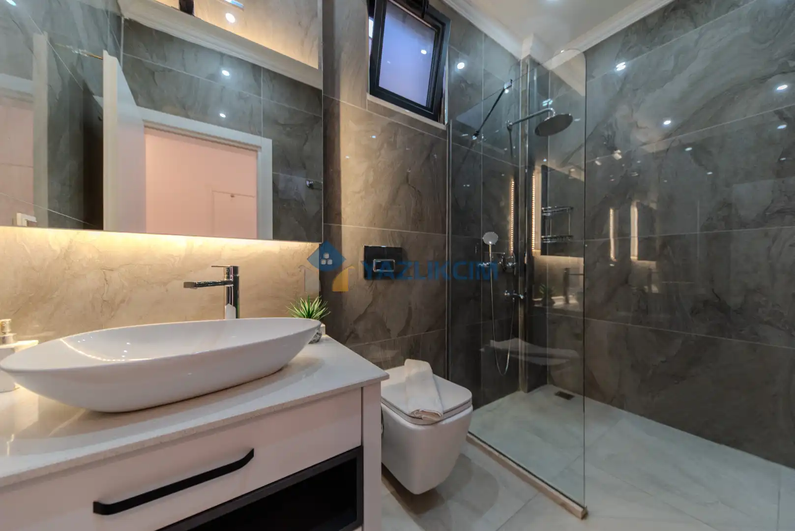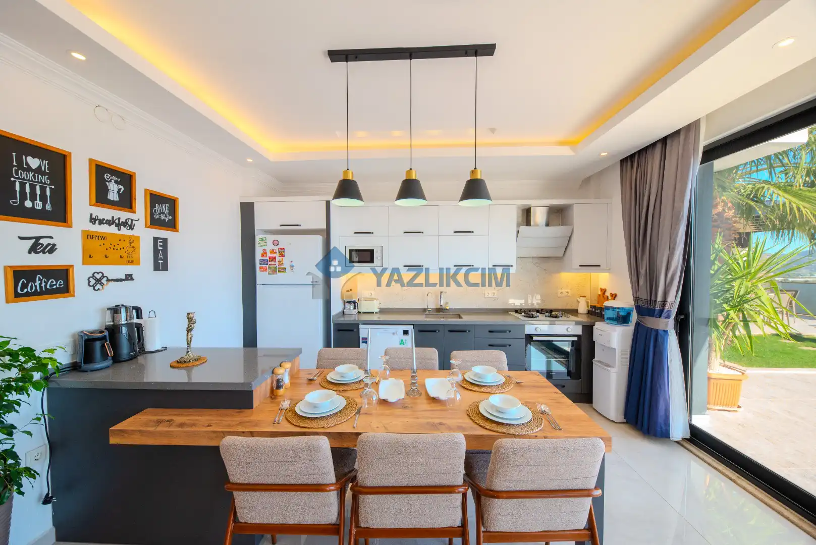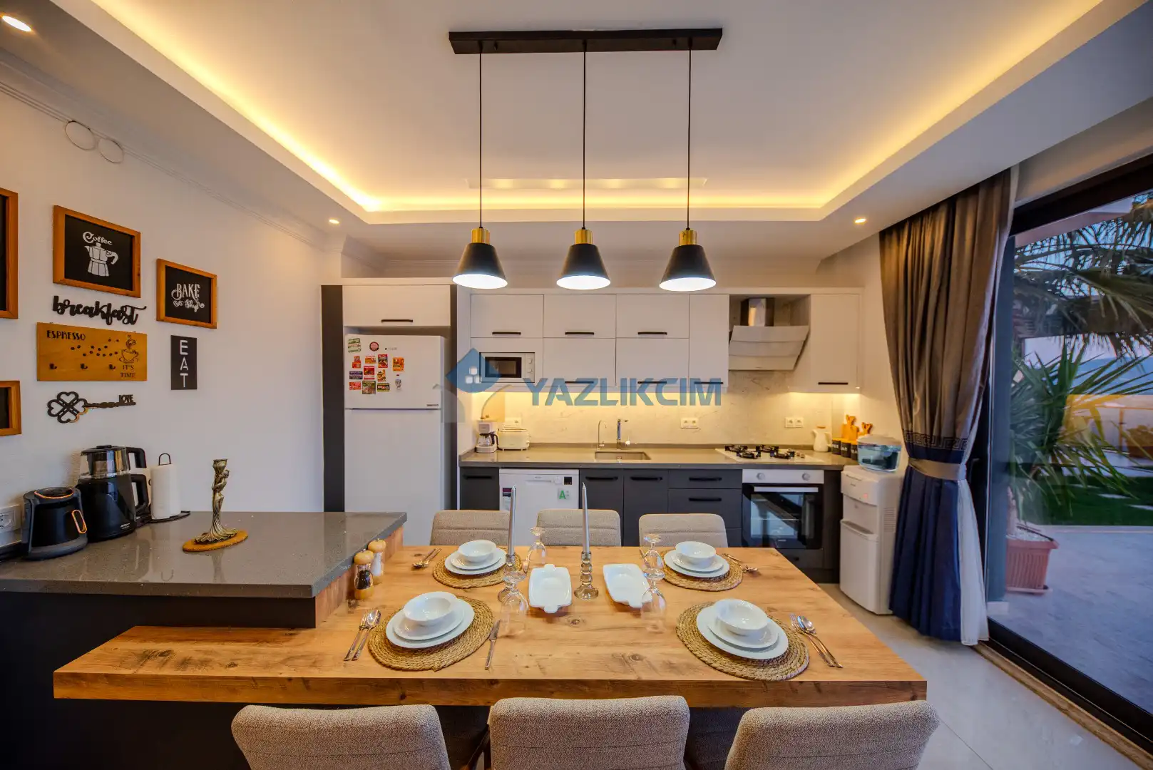 Mutfak Detayları: Buzdolabı, bulaşık makinesi, fırın, çamaşır makinesi, yemek takımı, tava-tencere, çatal-bıçak seti bulunmaktadır.