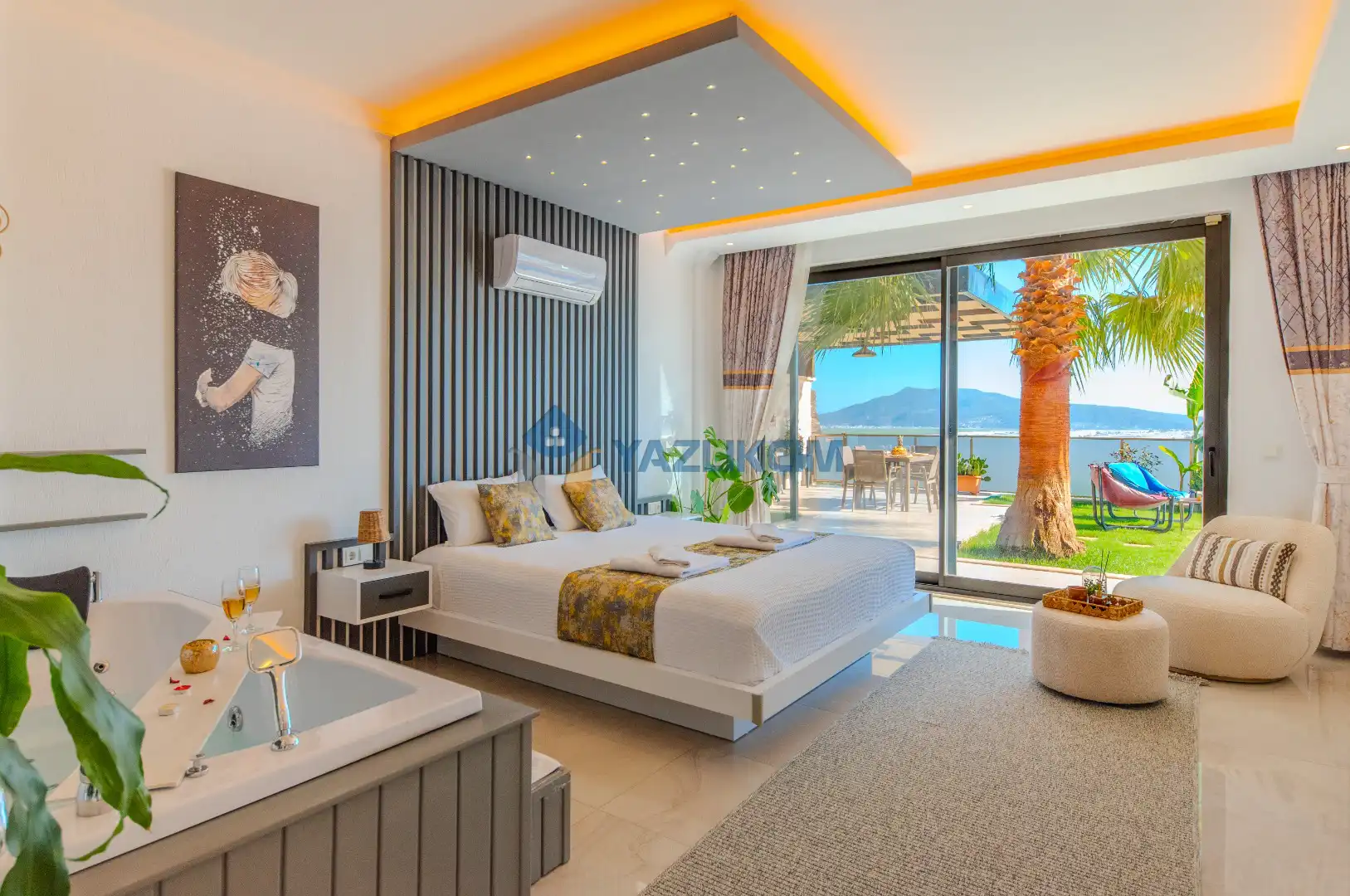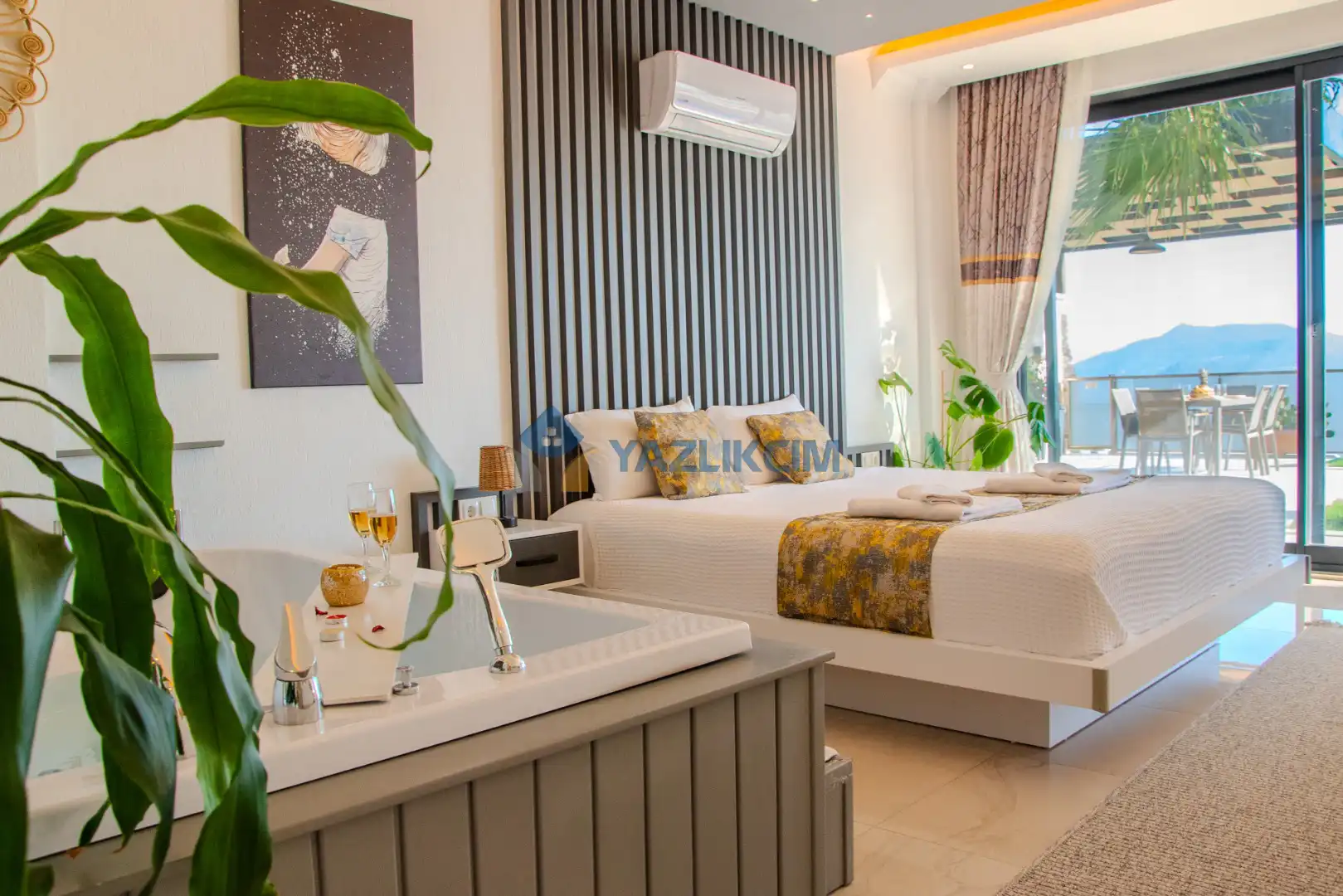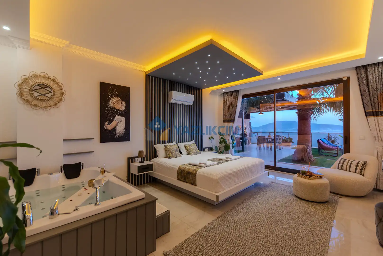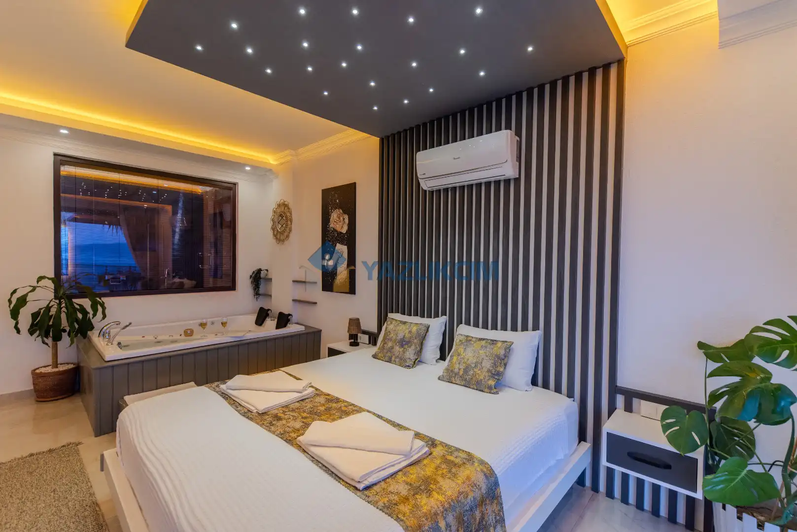 Detayları : Çift kişilik yatak, jakuzi, klima, komidin, elbise dolabı, makyaj masası, banyo ve lavabo bulunmaktadır.