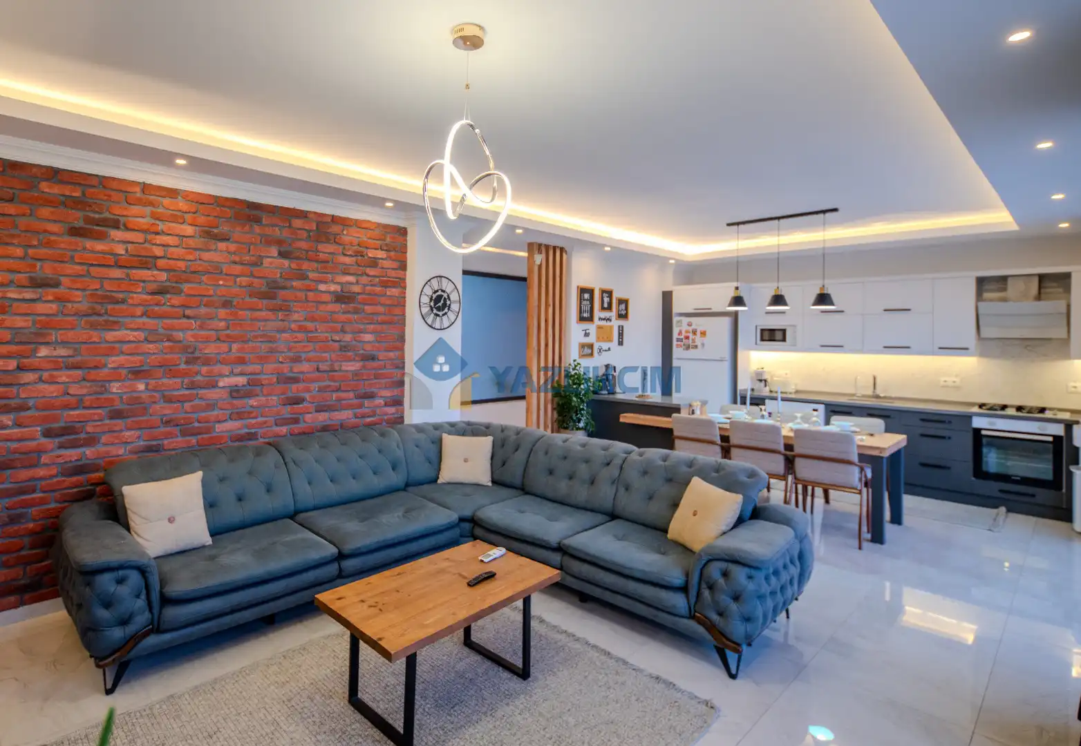Salon Detayları: LCD TV, modern oturma grubu, yemek masası ve sandalyeler, kablosuz modem bulunmaktadır.