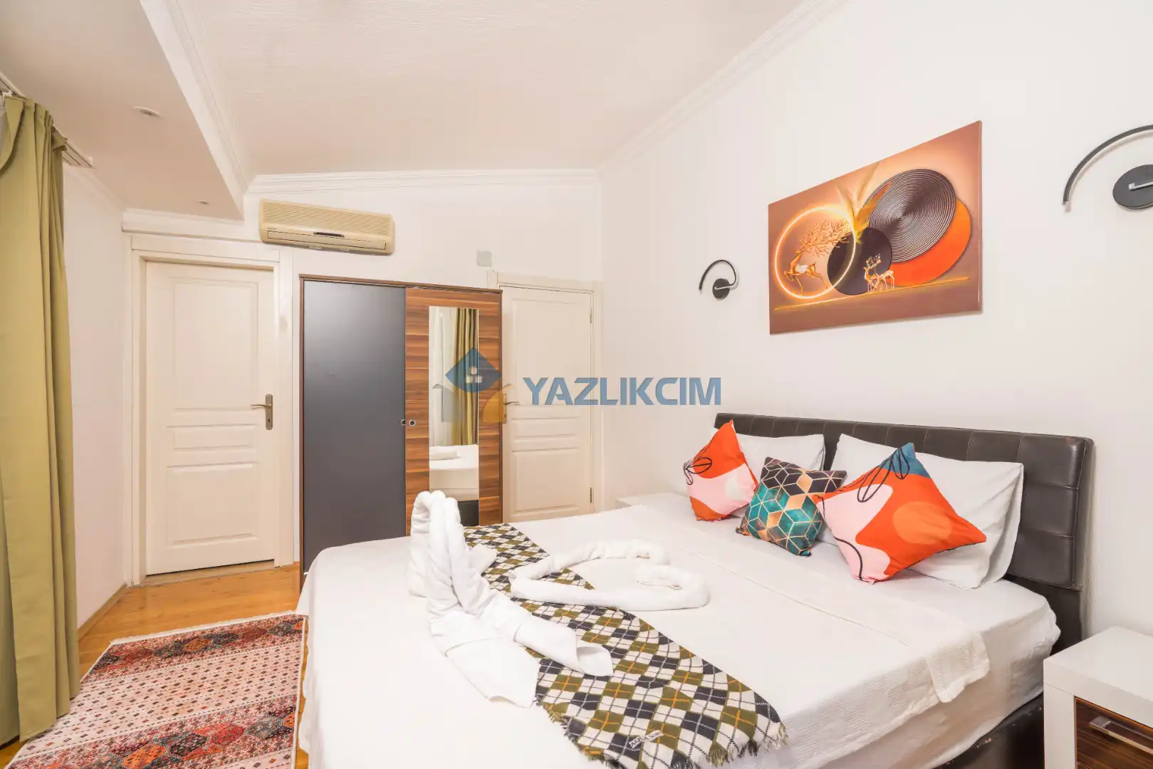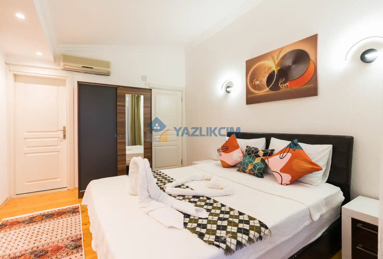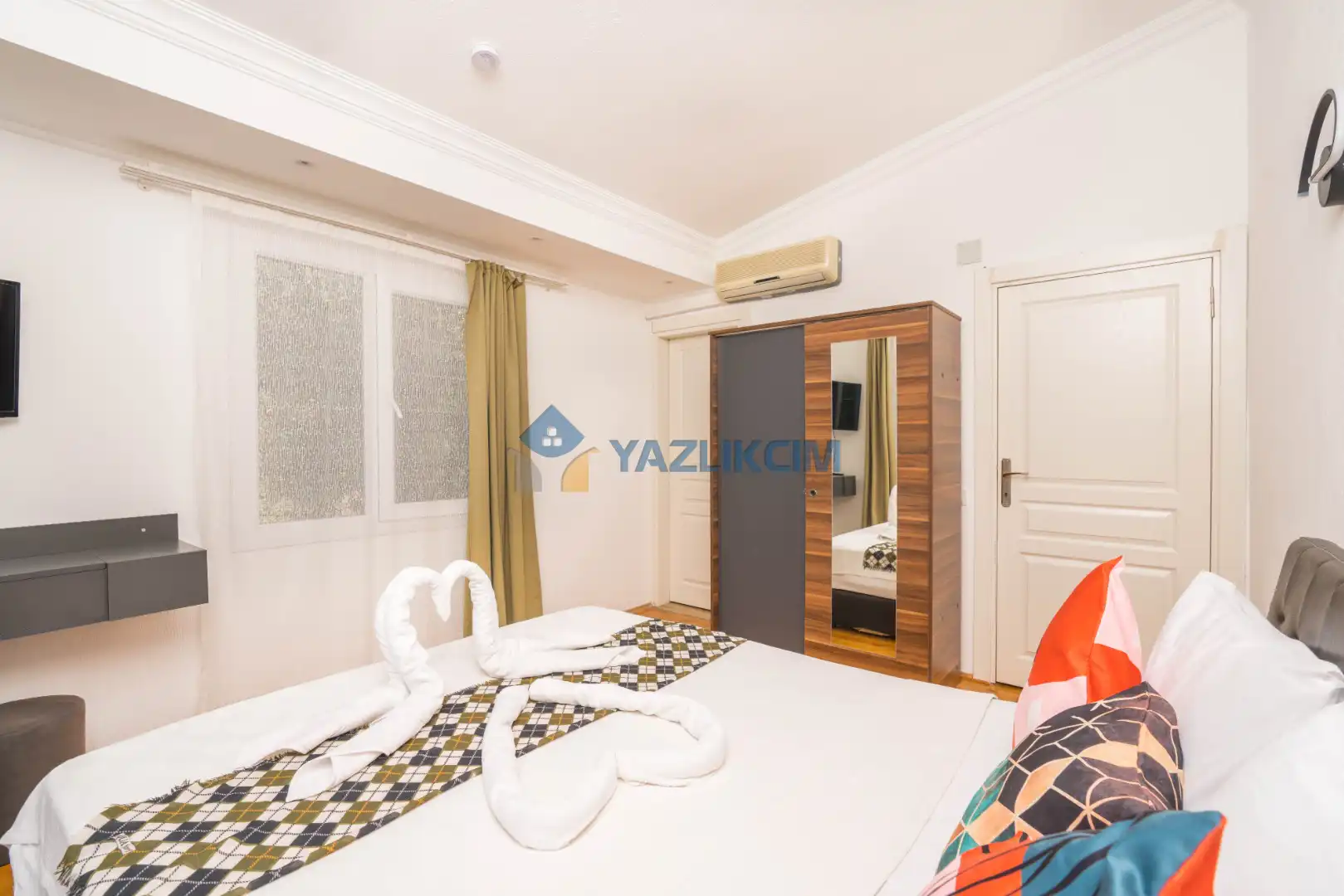 Detayları: Çift kişilik yatak, klima, komodin, elbise dolabı, makyaj masası,  banyo ve lavabo bulunmaktadır.