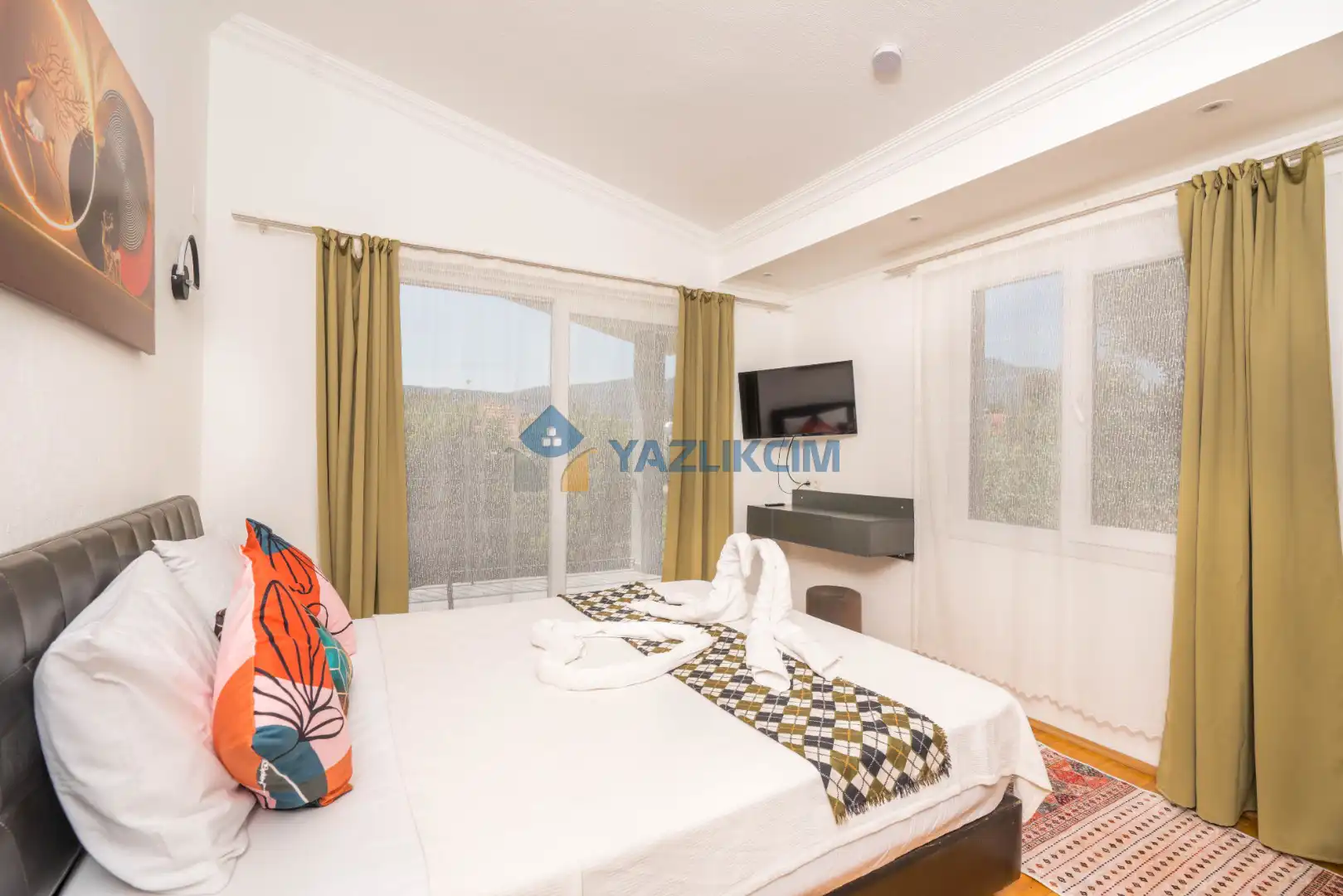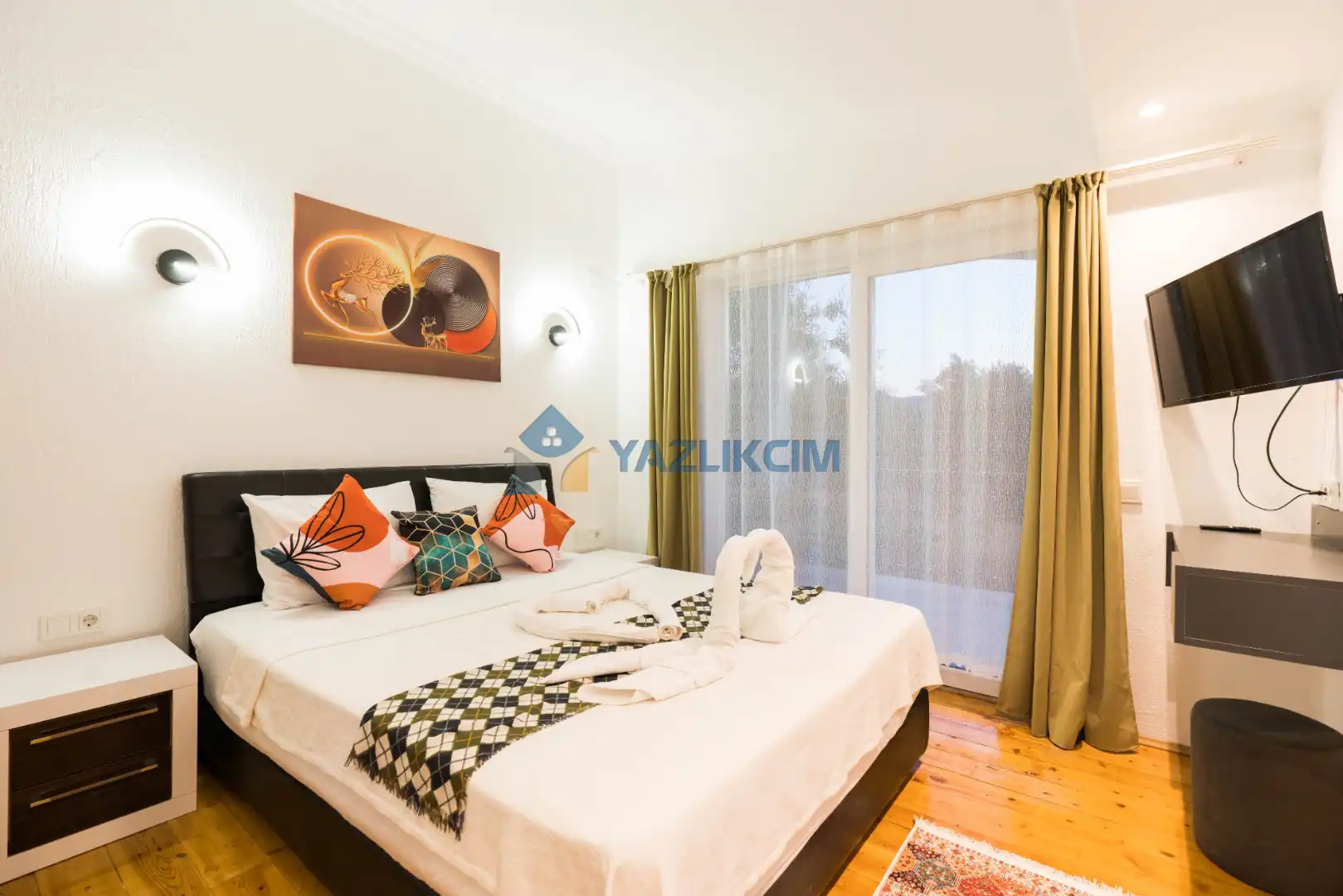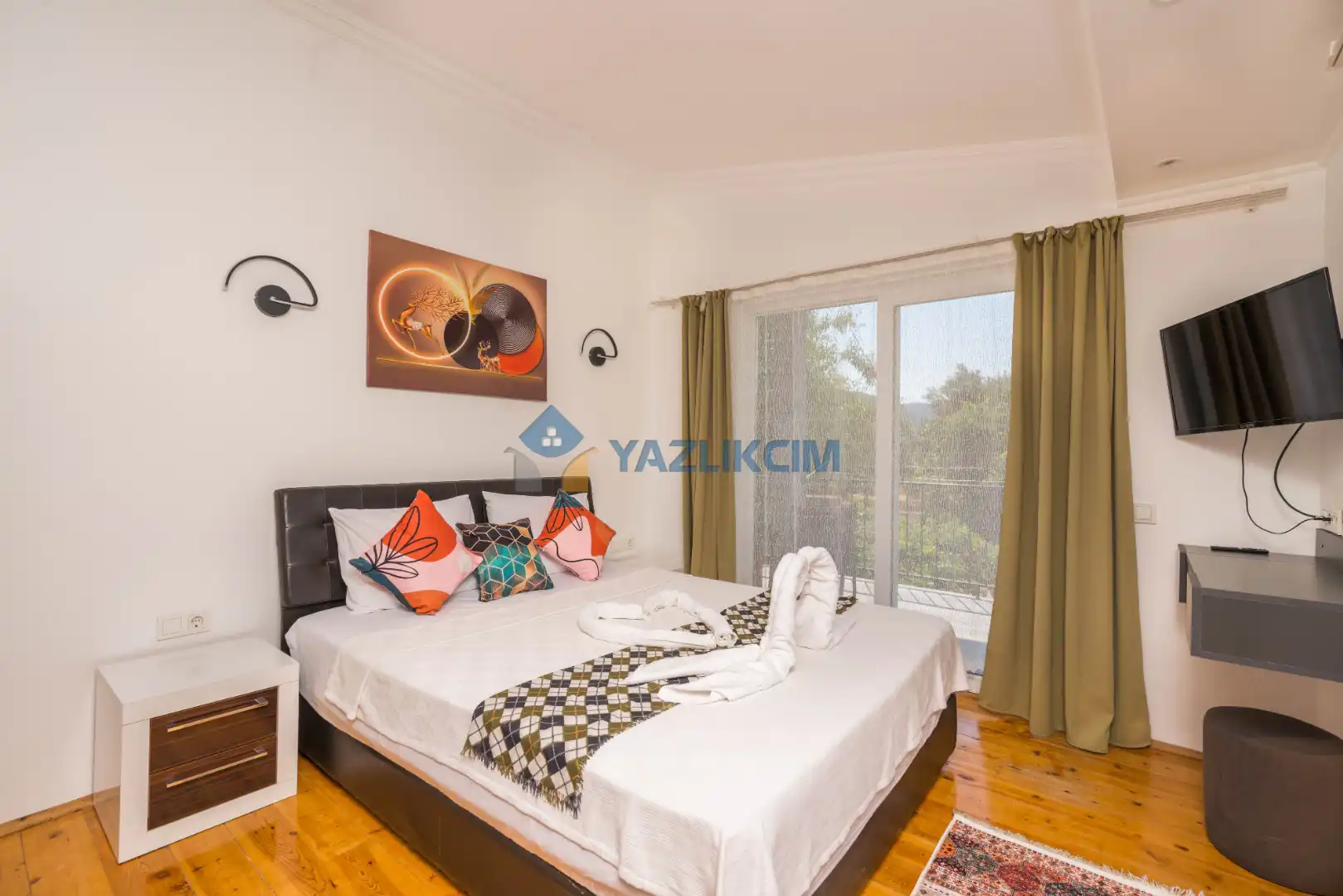 Detayları: Çift kişilik yatak, klima, komodin, elbise dolabı, makyaj masası,  banyo ve lavabo bulunmaktadır.