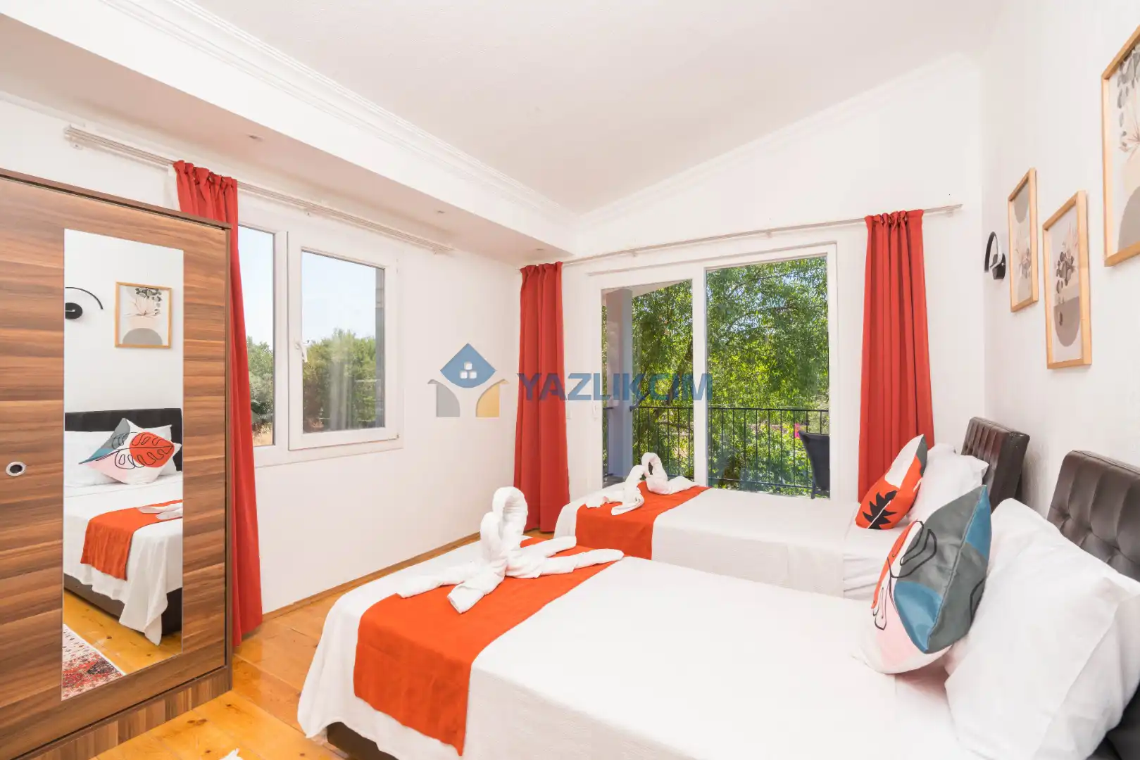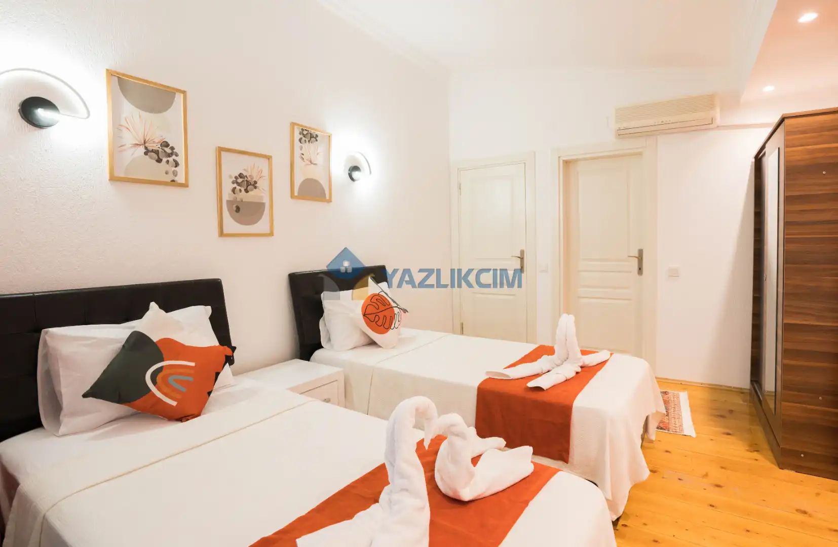 Detayları: 2 adet tek kişilik yatak, klima, komodin, elbise dolabı, makyaj masası,  banyo ve lavabo bulunmaktadır.