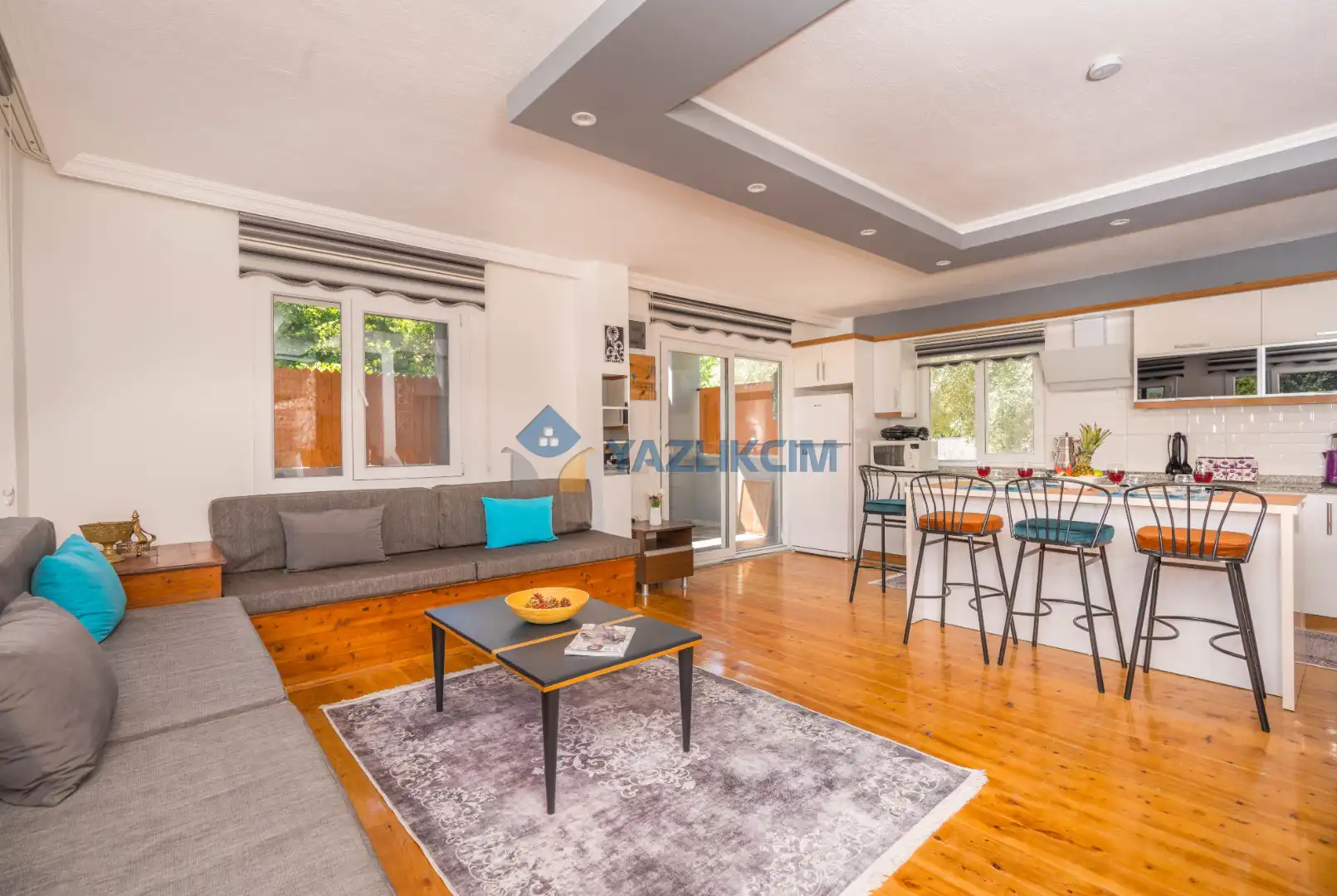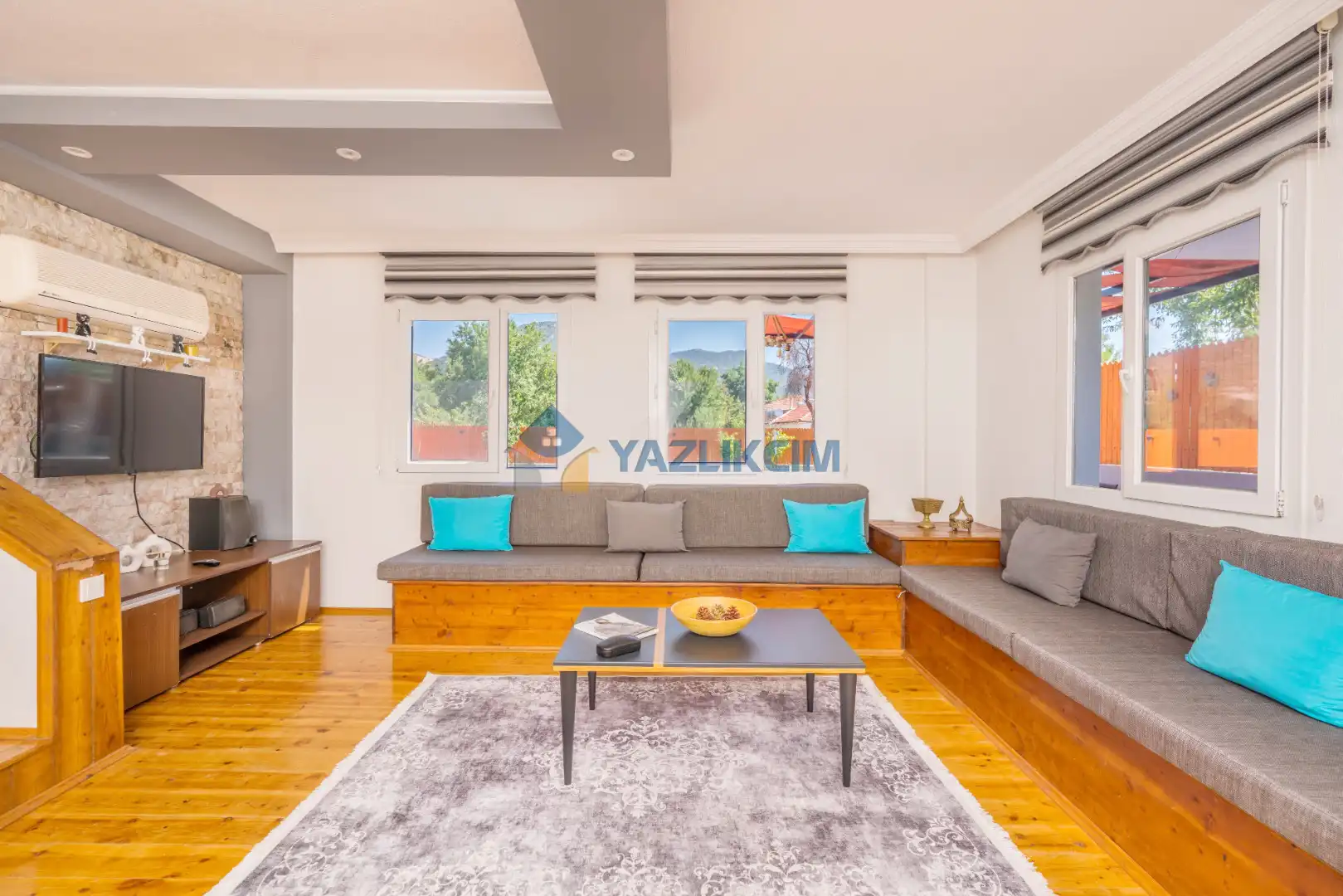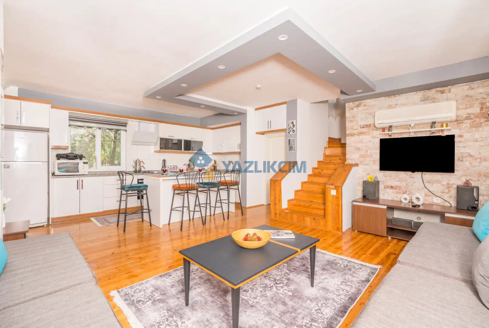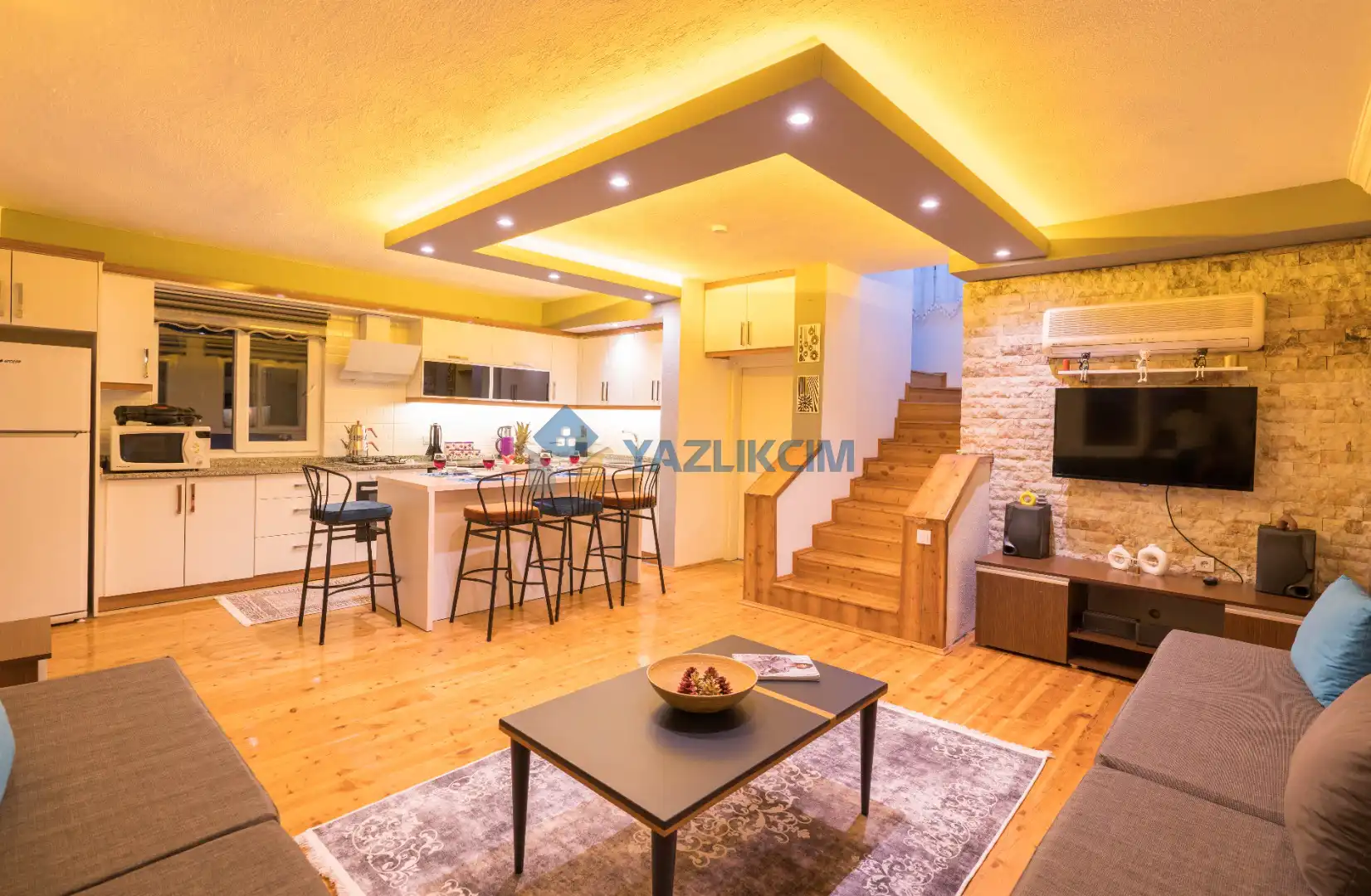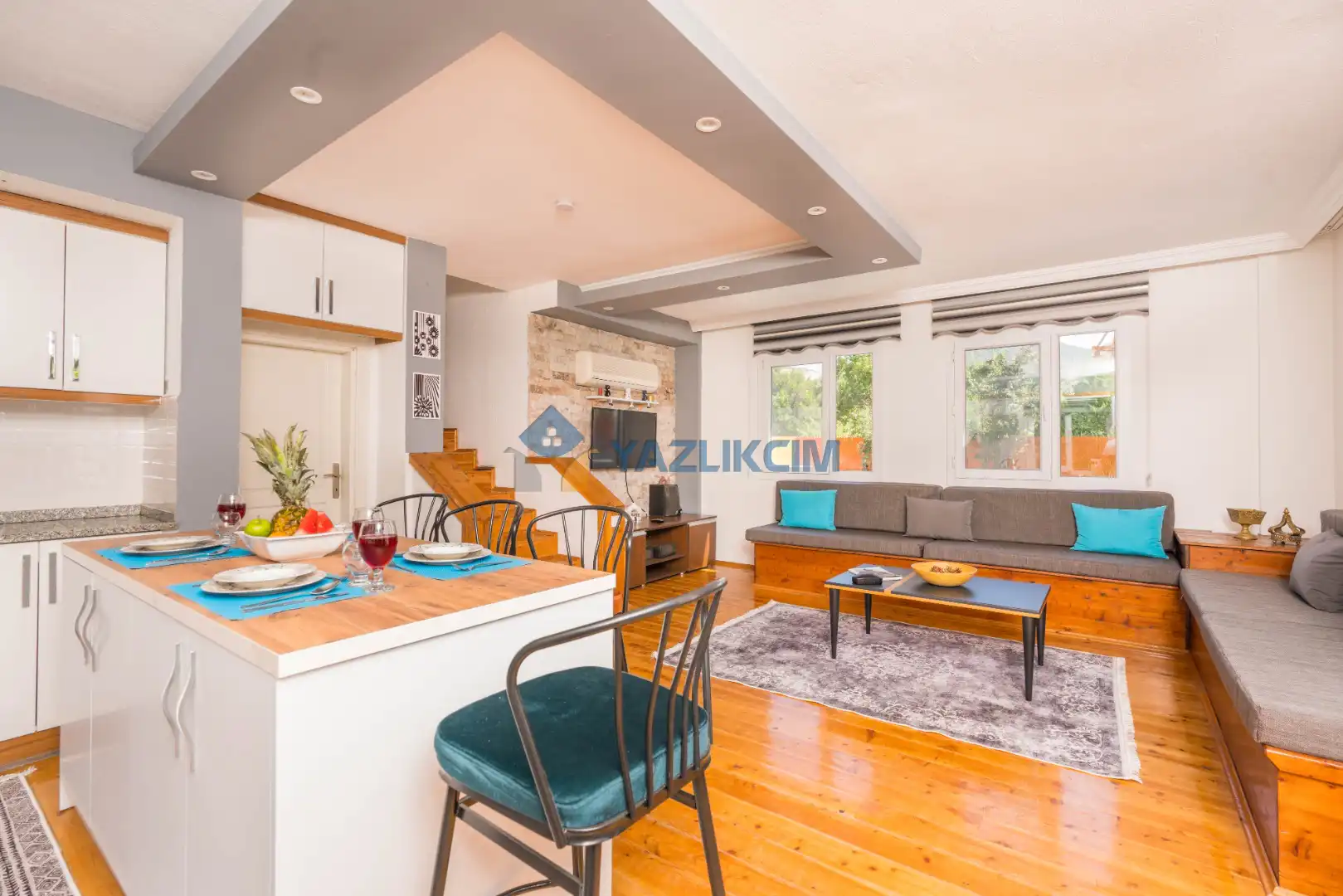 Salon Detayları: LCD TV, modern  oturma grubu, yemek masası ve sandalyeler, kablosuz modem bulunmaktadır.