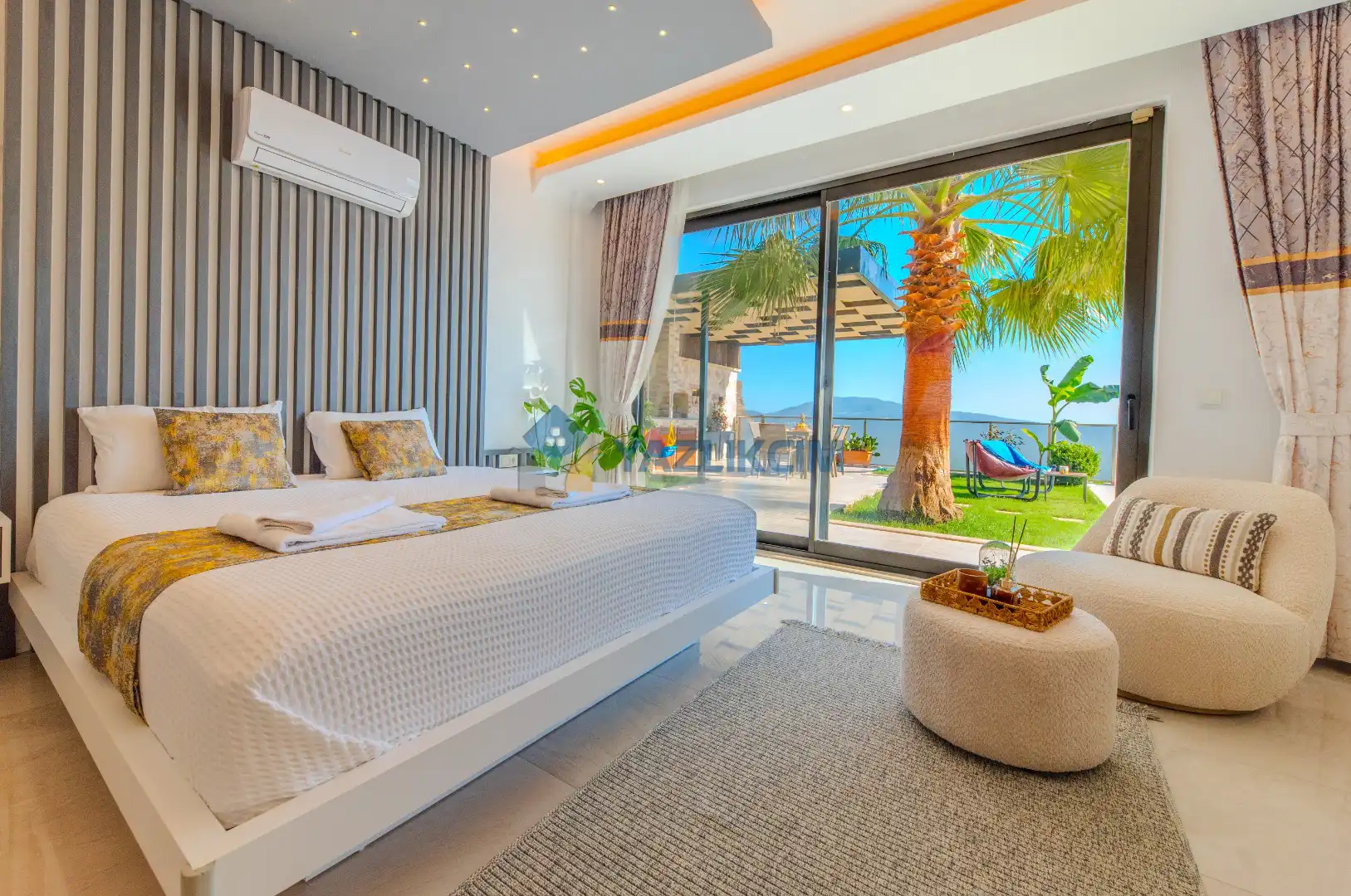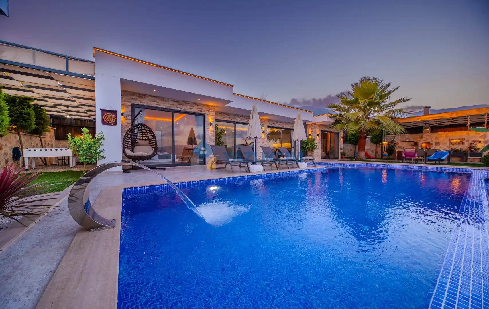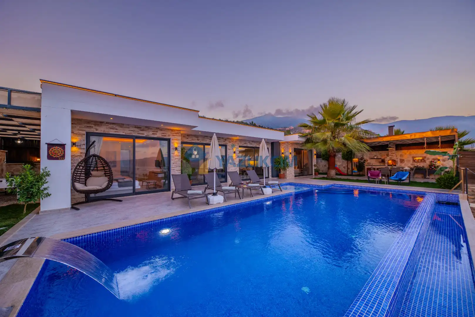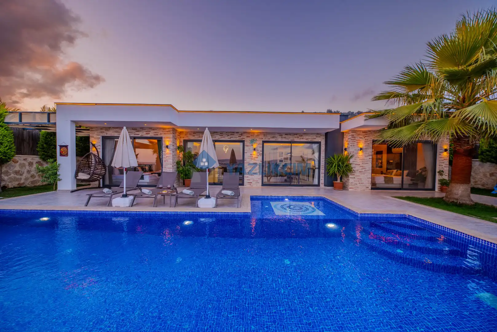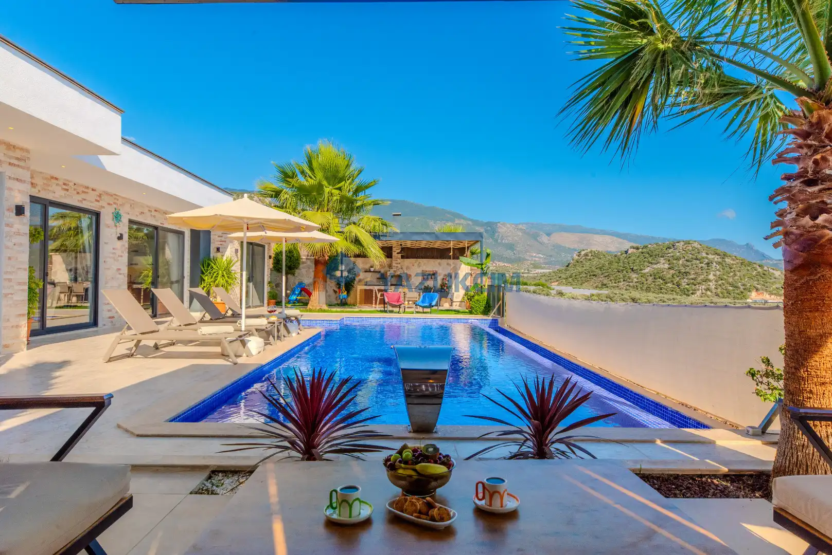 Detayları : Şezlong , güneşlenme şemşiyesi , oyun parkı , salıncak, barbekü, yemek masası ve sandalyeleri bulunmaktadır.