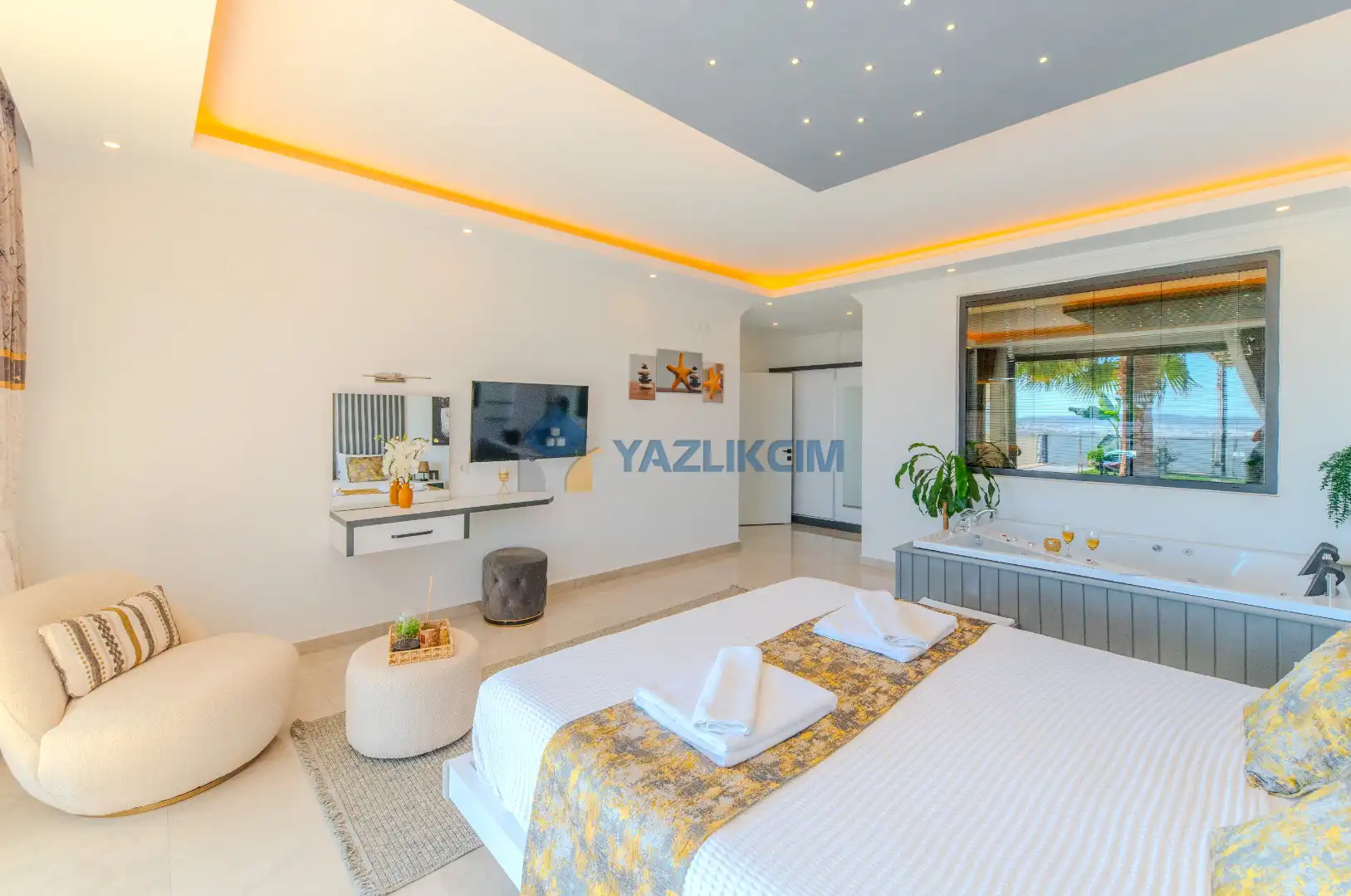 Detayları : Çift kişilik yatak , jakuzi , klima , park yatak , komidin , elbise dolabı , makyaj masası, banyo ve lavabo bulunmaktadır.