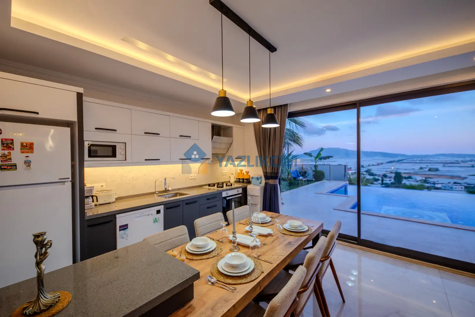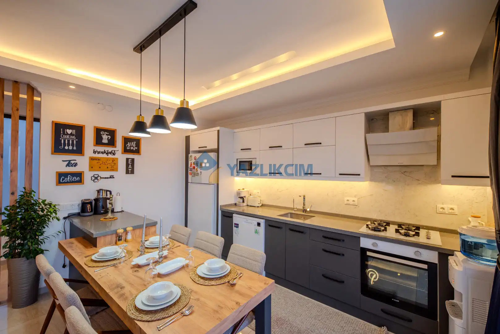 Mutfak Detayları: Buzdolabı, bulaşık makinesi, fırın, çamaşır makinesi, mama sandalyesi, yemek takımı, tava-tencere, çatal-bıçak seti bulunmaktadır.