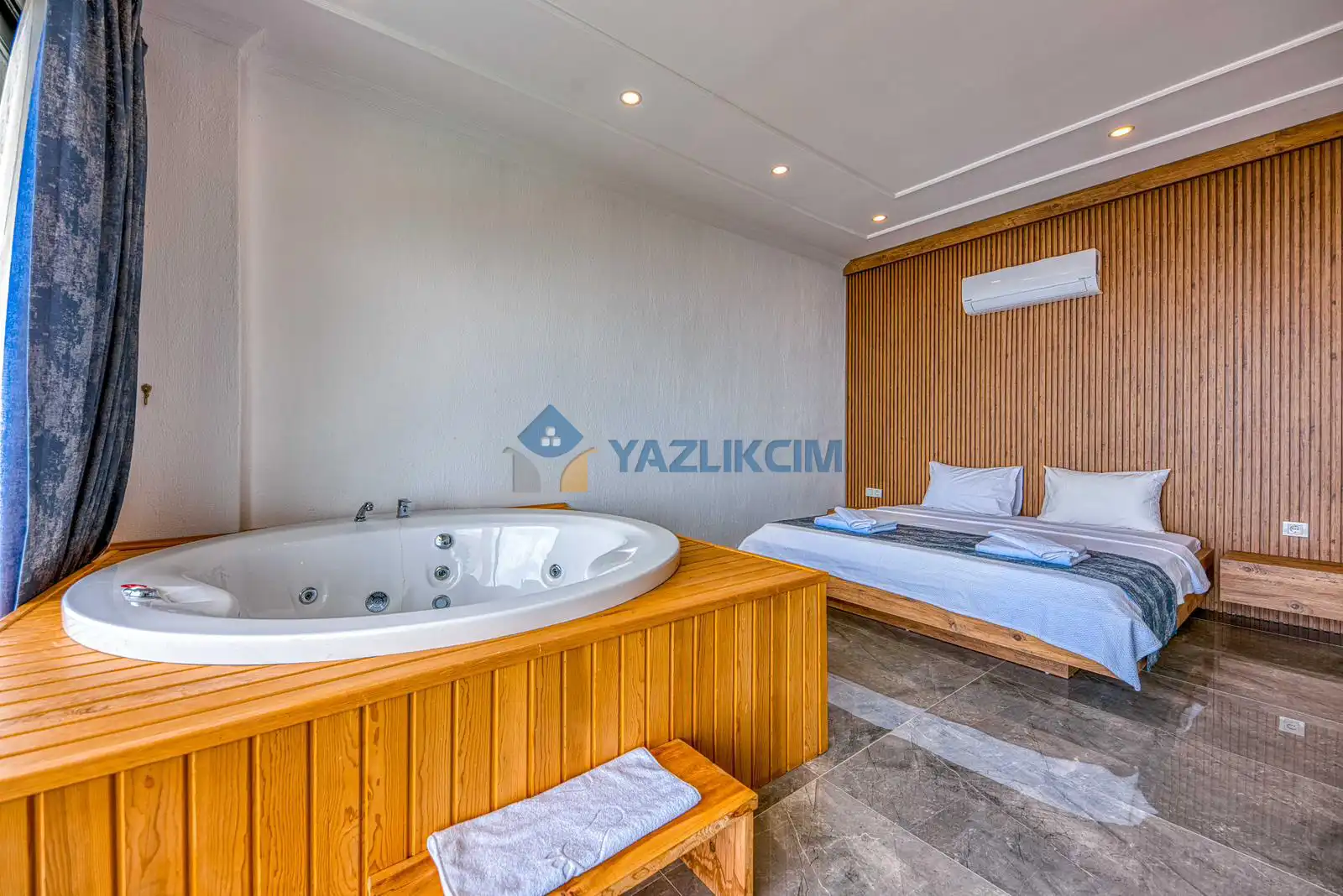 Detayları : Çift kişilik yatak, Makyaj masası, Jakuzi ,Komodin, Klima, Elbise dolabı, Banyo bulunmaktadır.