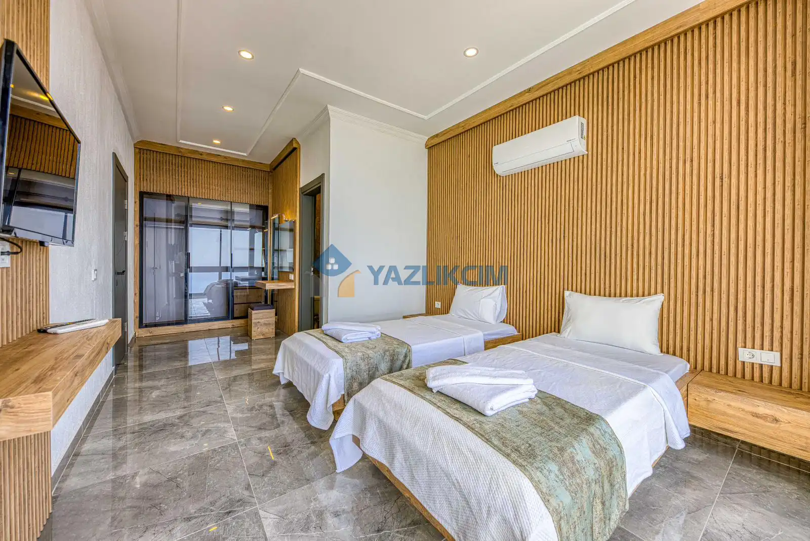 Detayları : 2 Adet tek kişilik yatak, Komodin, Makyaj masası, Klima, Elbise dolabı, Banyo bulunmaktadır.