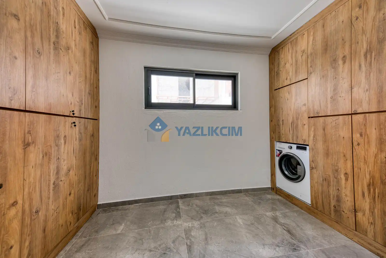 Detayları : Buzdolabı, Bulaşık makinesi, Çamaşır makinesi, Fırın, 4’lü Ocak (ankastre), Mikrodalga fırın, Elektrikli su ısıtıcı, 6 kişilik yemek takımı, Tava, Tencereler, Çatal bıçak, Kahve makinası vb.