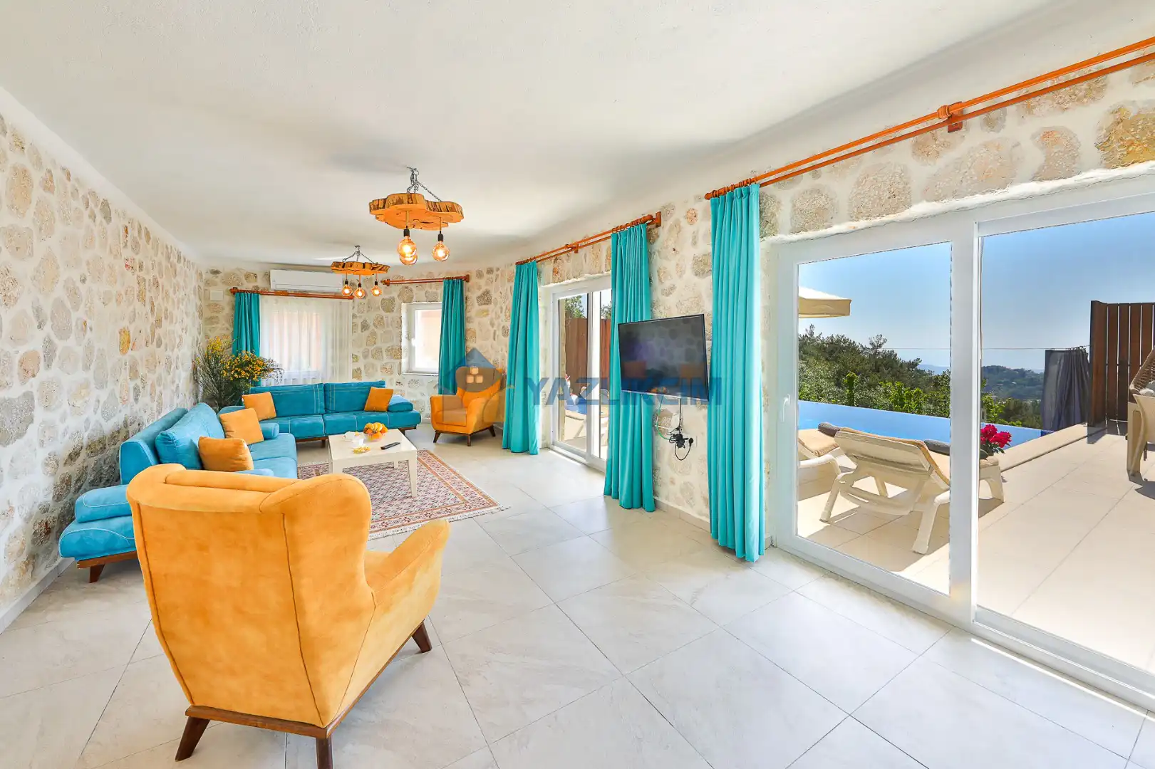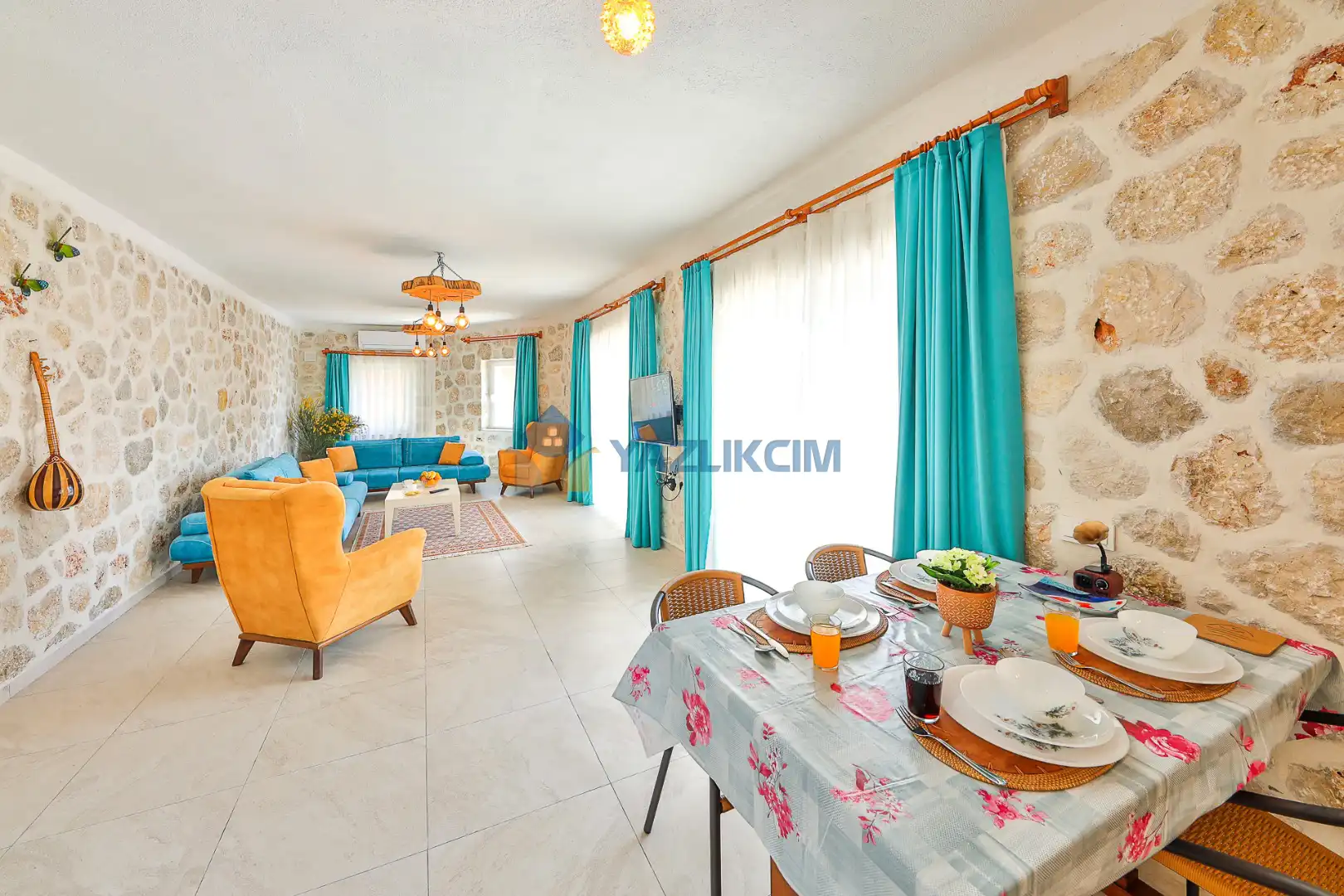 Salon Detayları: LCD TV, modern  oturma grubu, yemek masası ve sandalyeler, kablosuz modem bulunmaktadır.