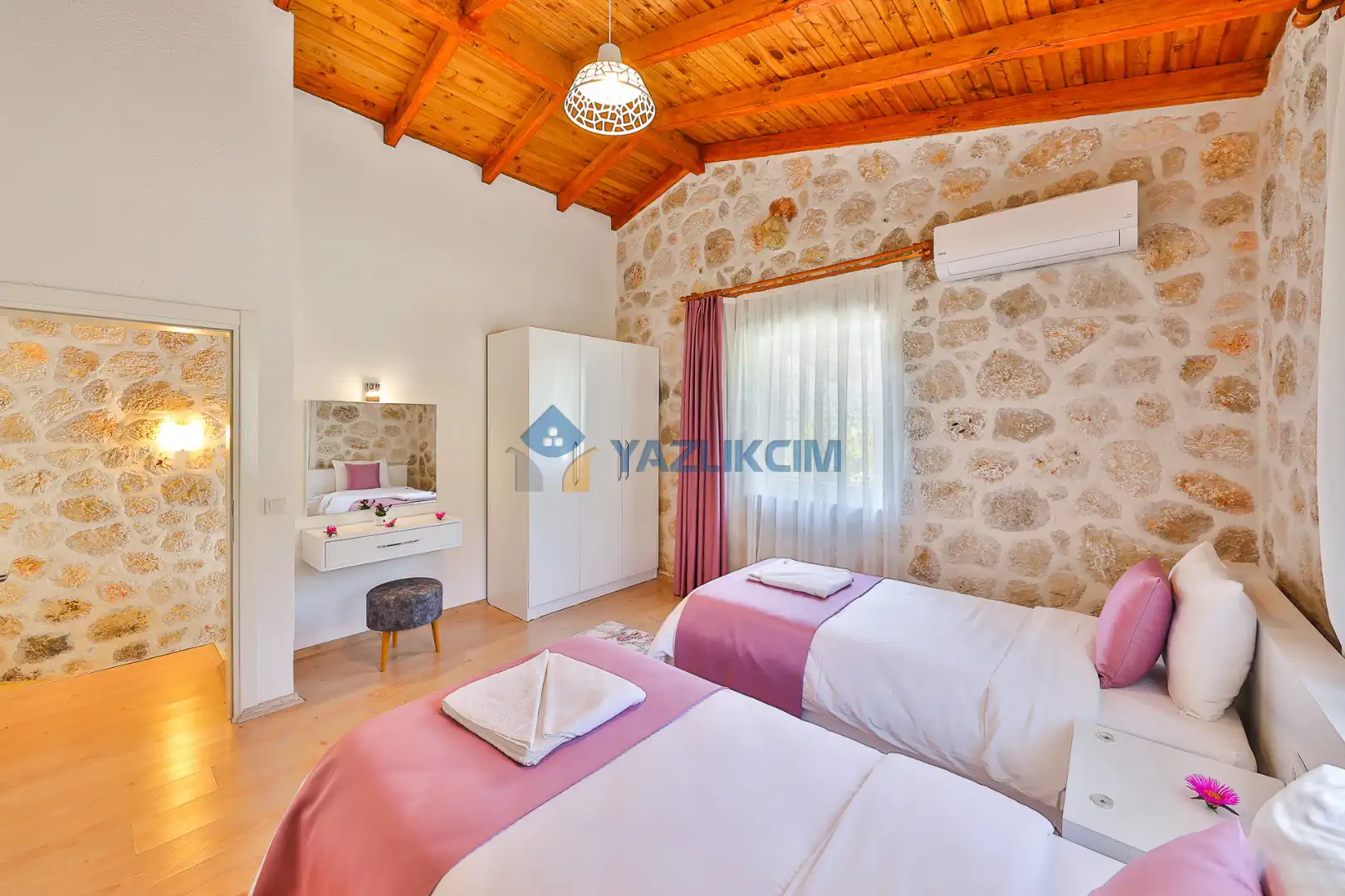 Detayları : 2 tane tek kişilik yatak , klima, komidin, elbise dolabı, makyaj masası,  banyo ve lavabo bulunmaktadır.