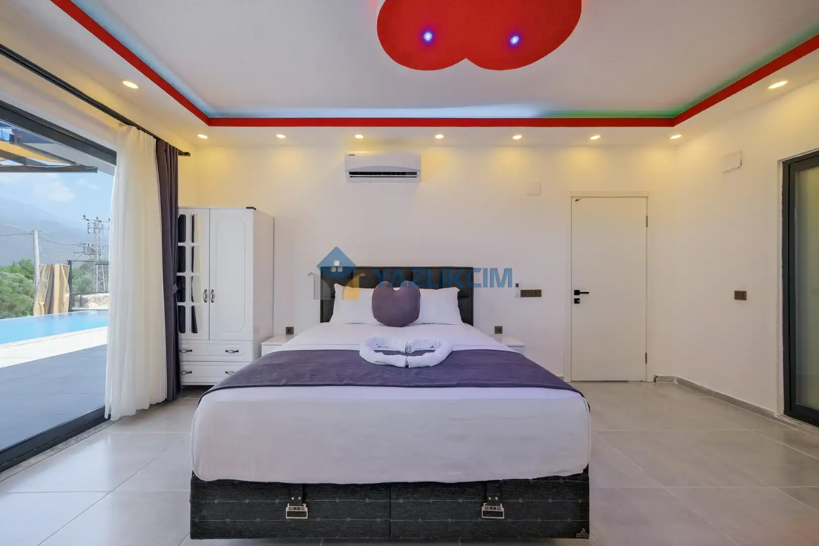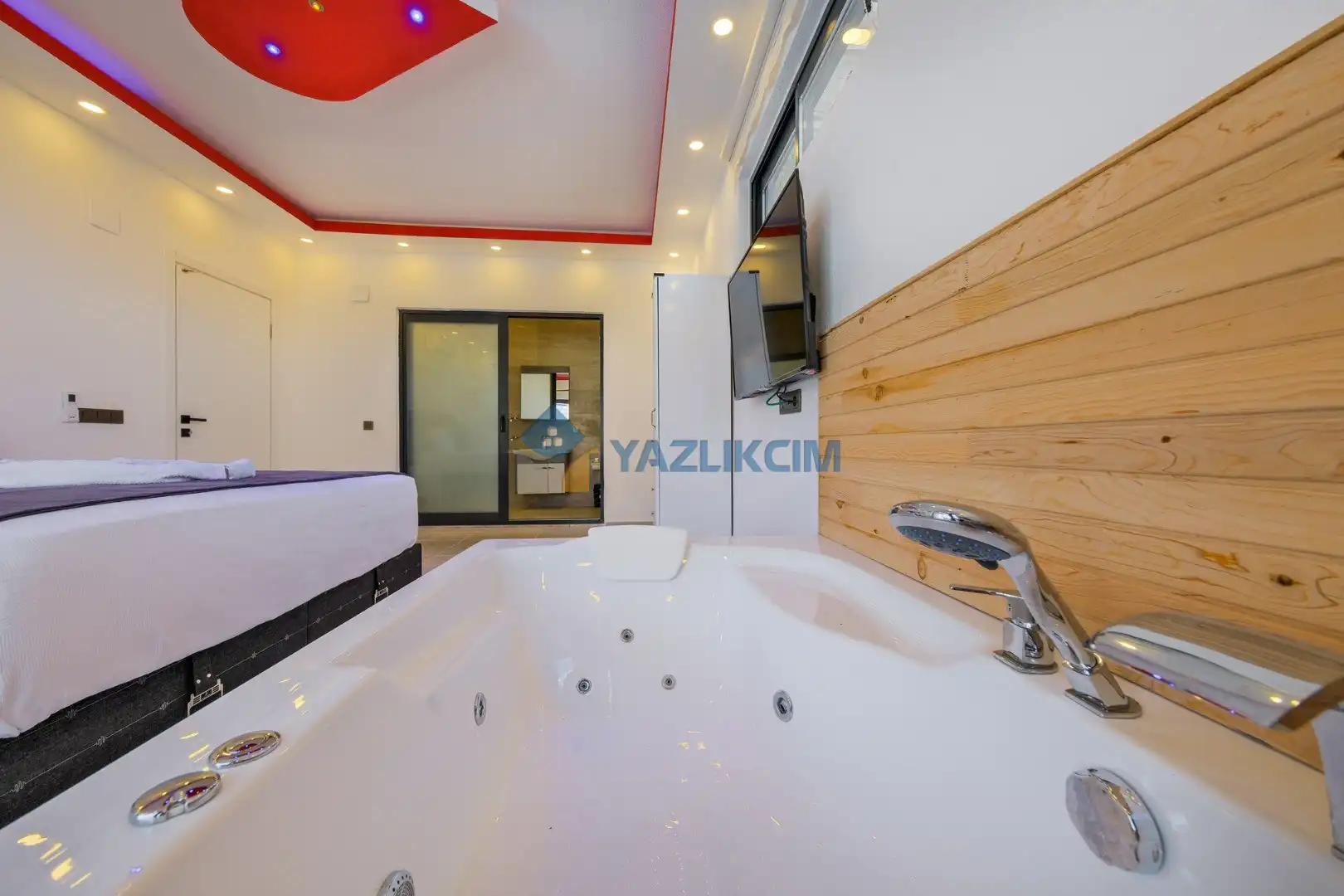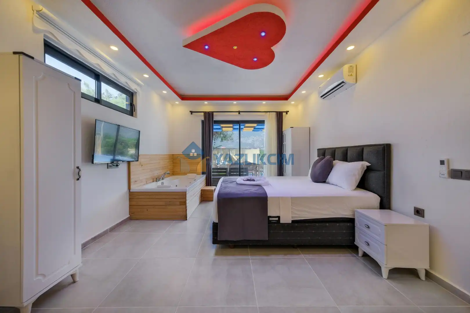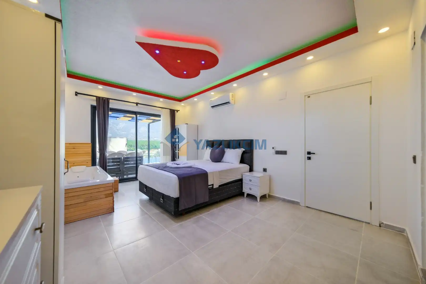 Detayları: Çift kişilik yatak, klima, jakuzi , elbise dolabı, makyaj masası, komodin, lavabo ve banyo bulunmaktadır.