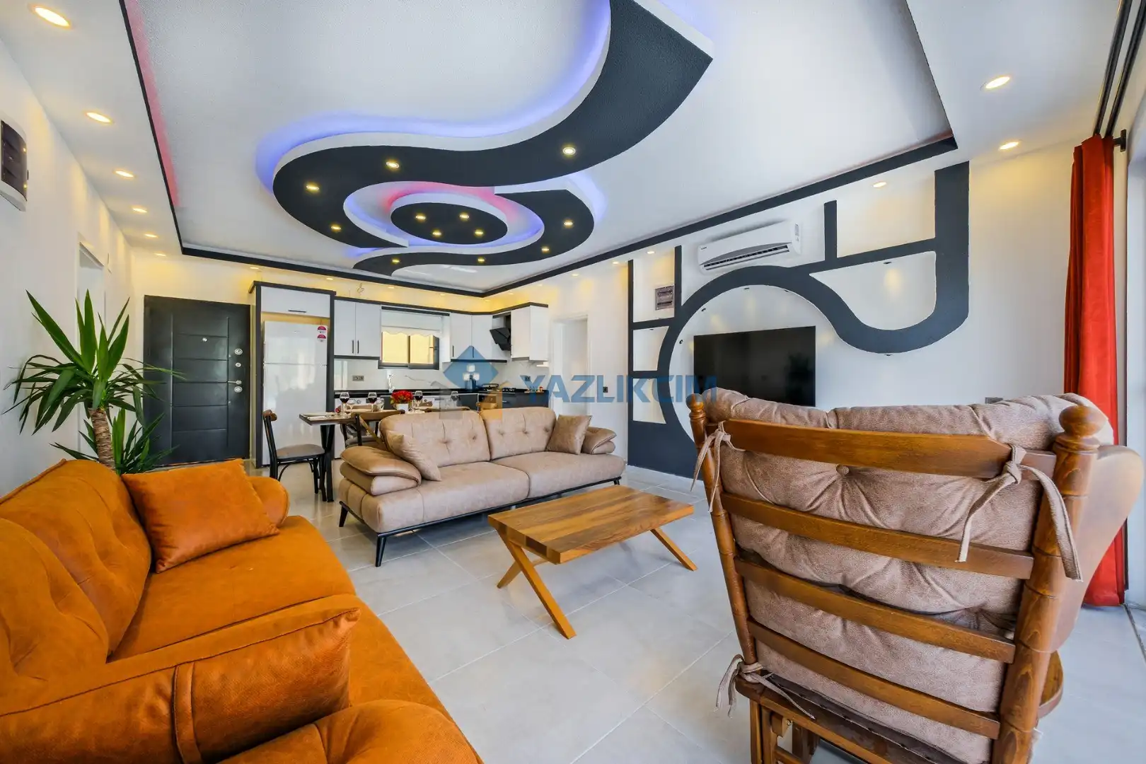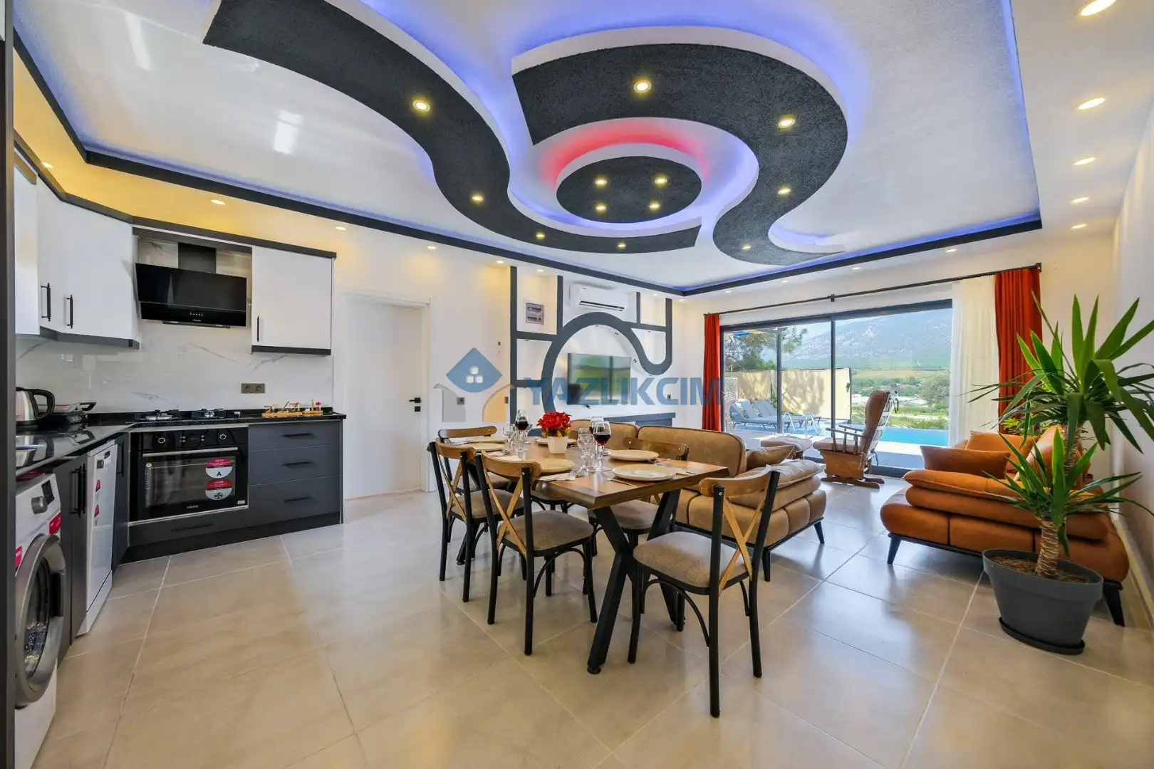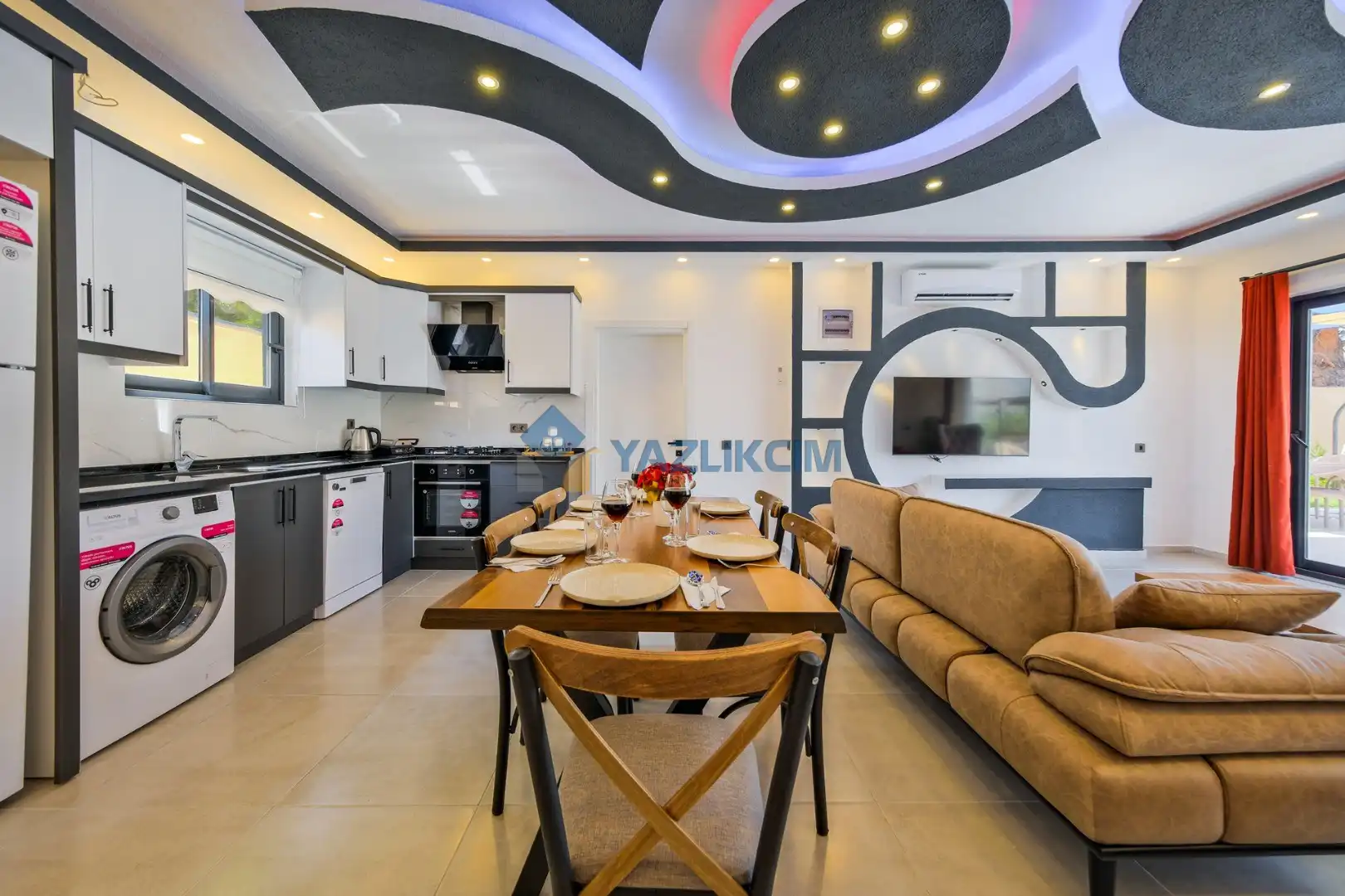 Salon Detayları: LCD TV ,modern oturma grubu, yemek masası ve sandalyeler, kablosuz modem bulunmaktadır.