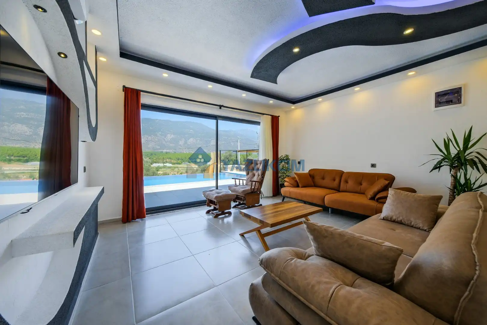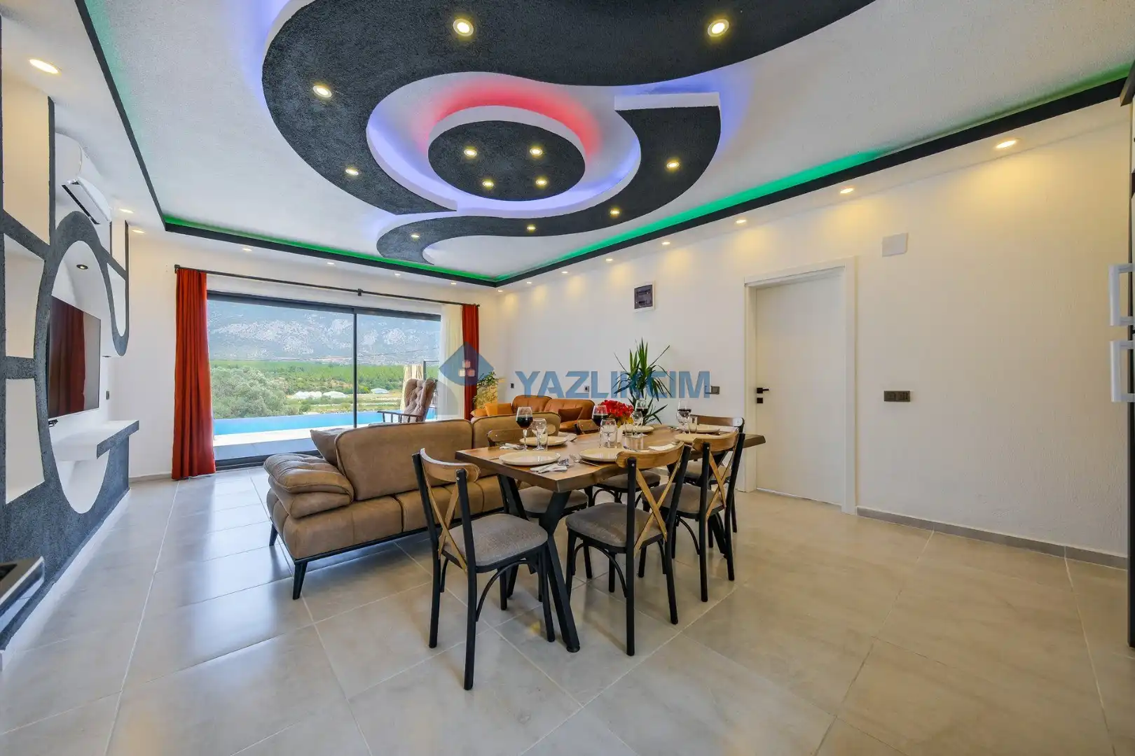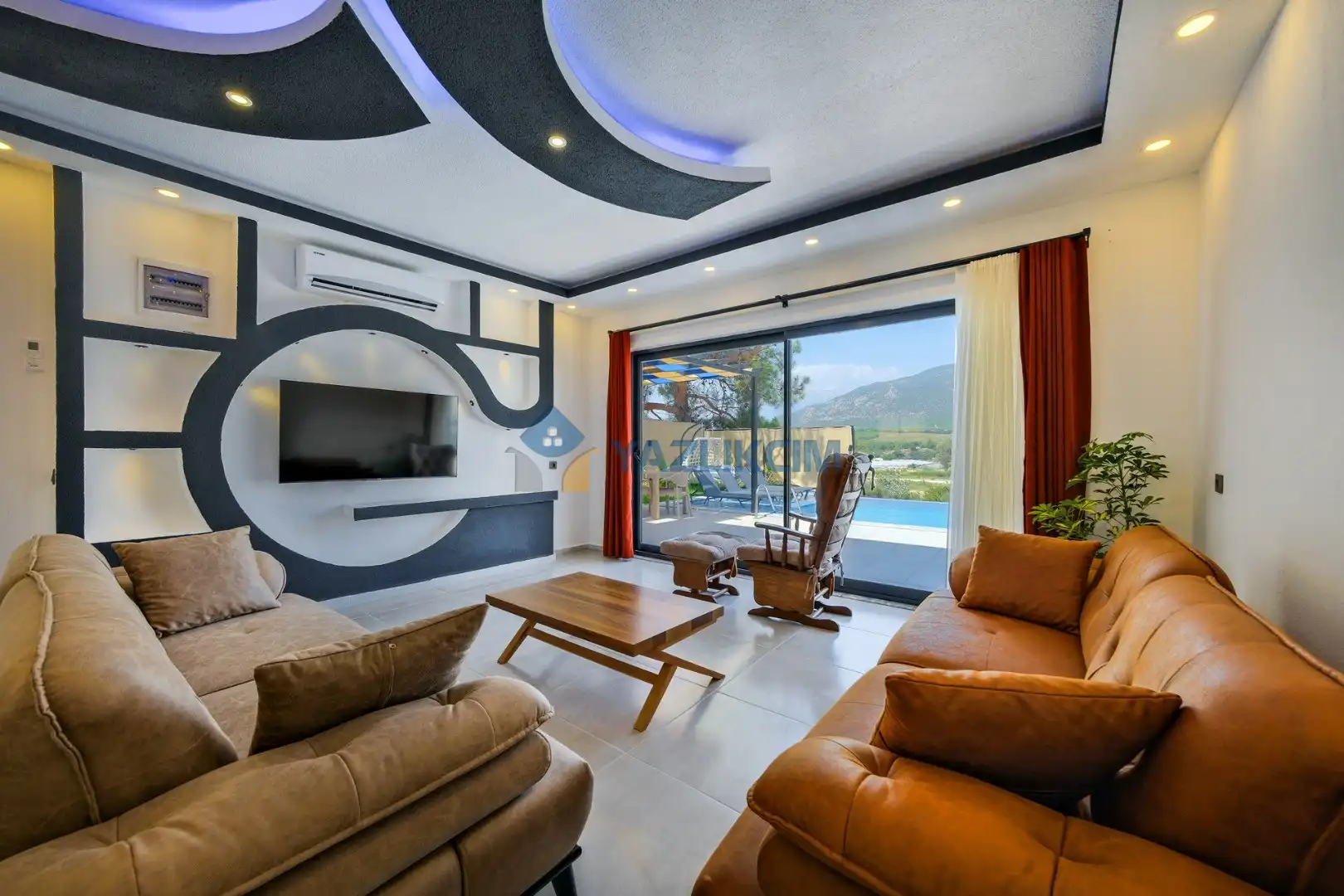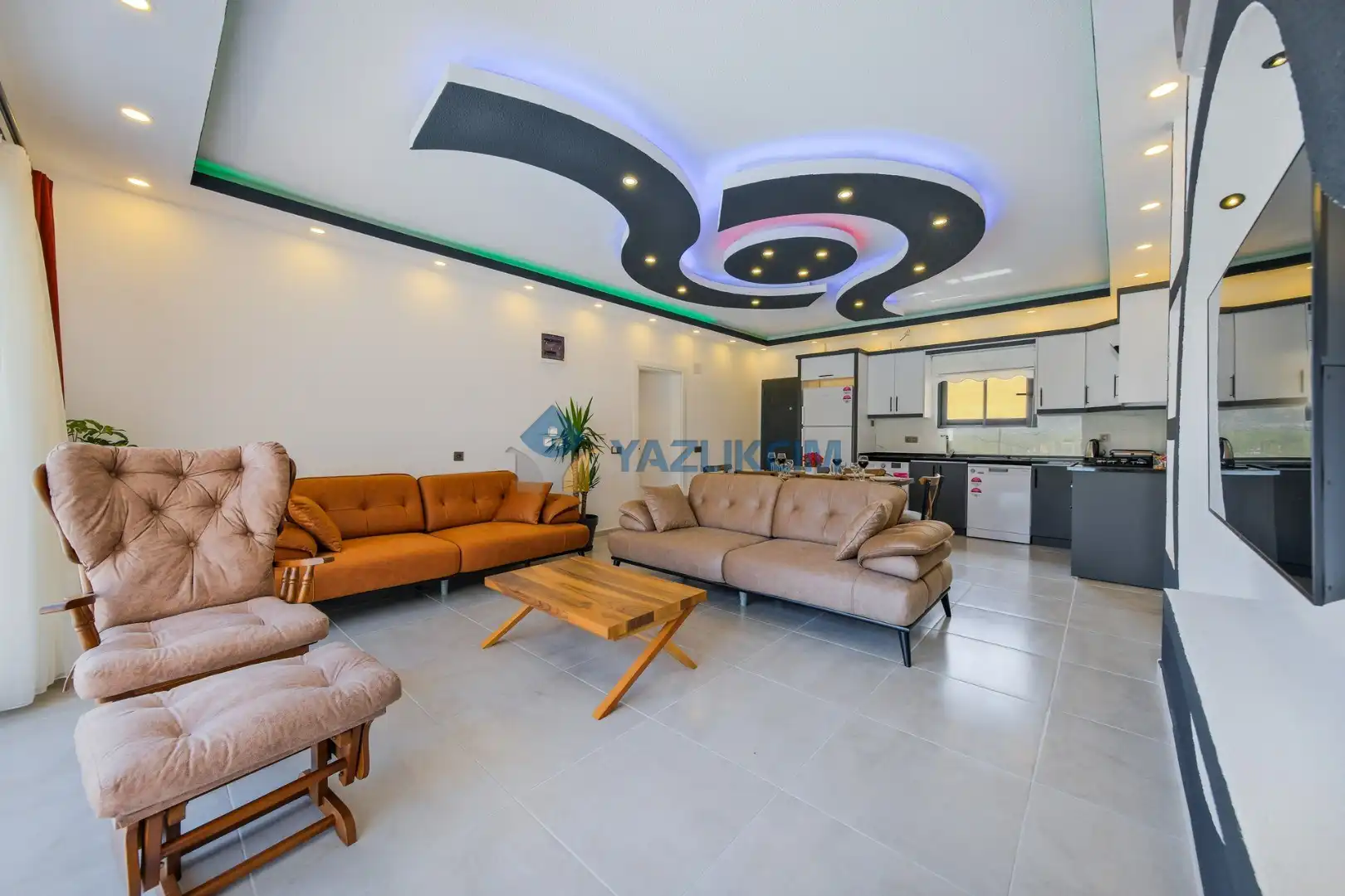 Salon Detayları: LCD TV ,modern oturma grubu, yemek masası ve sandalyeler, kablosuz modem bulunmaktadır.