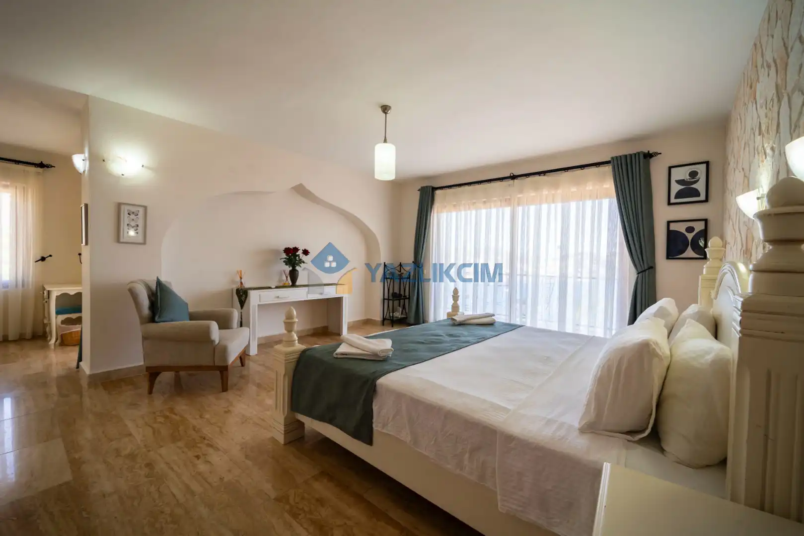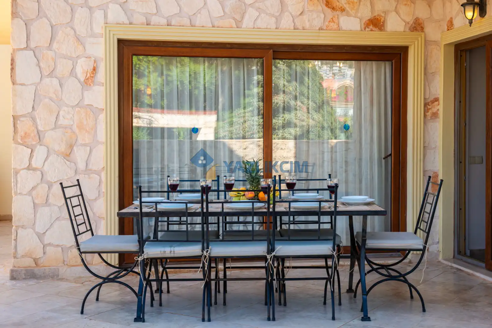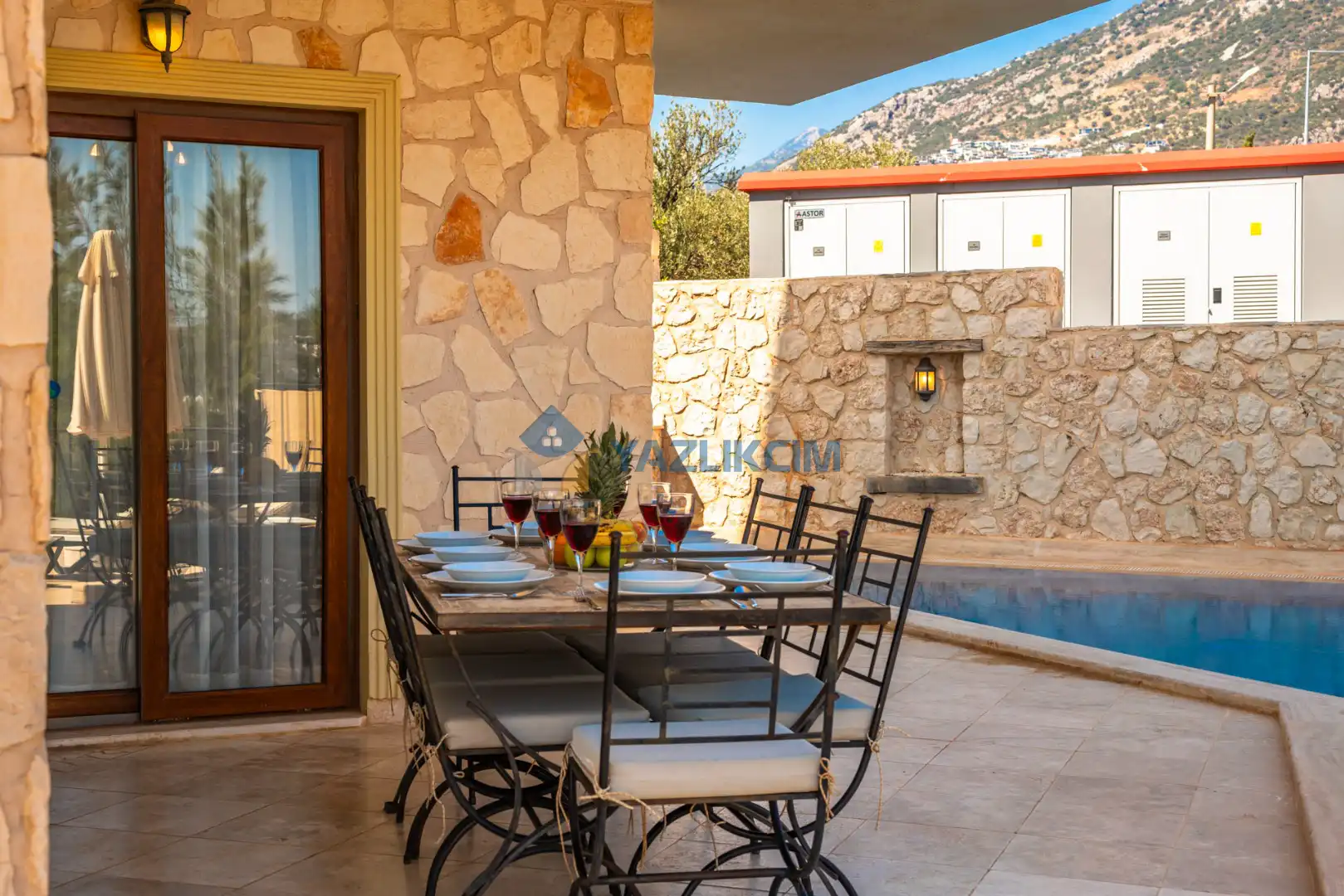 Salon Detayları: Oturma Grubu, Smart TV, Kablosuz İnternet, Klima, Yemek Masası, Havuz Terasına Çıkış