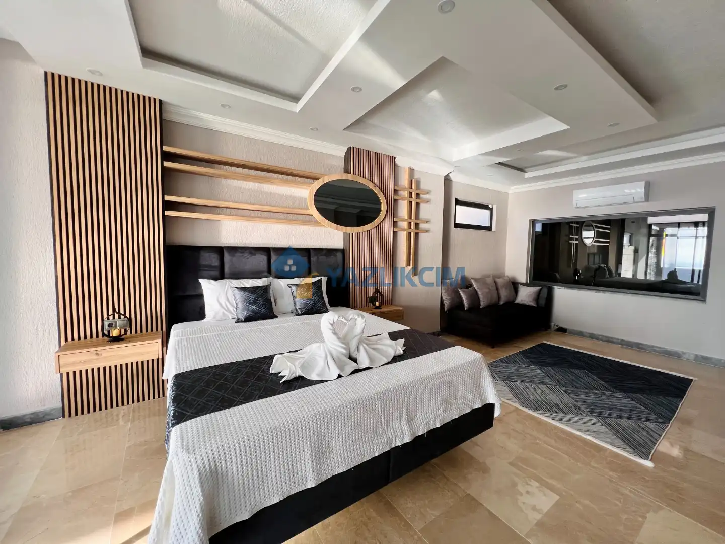 Detayları: Çift kişilik yatak, klima, televizyon, komodin, elbise dolabı, makyaj masası, banyo ve lavabo bulunmaktadır.